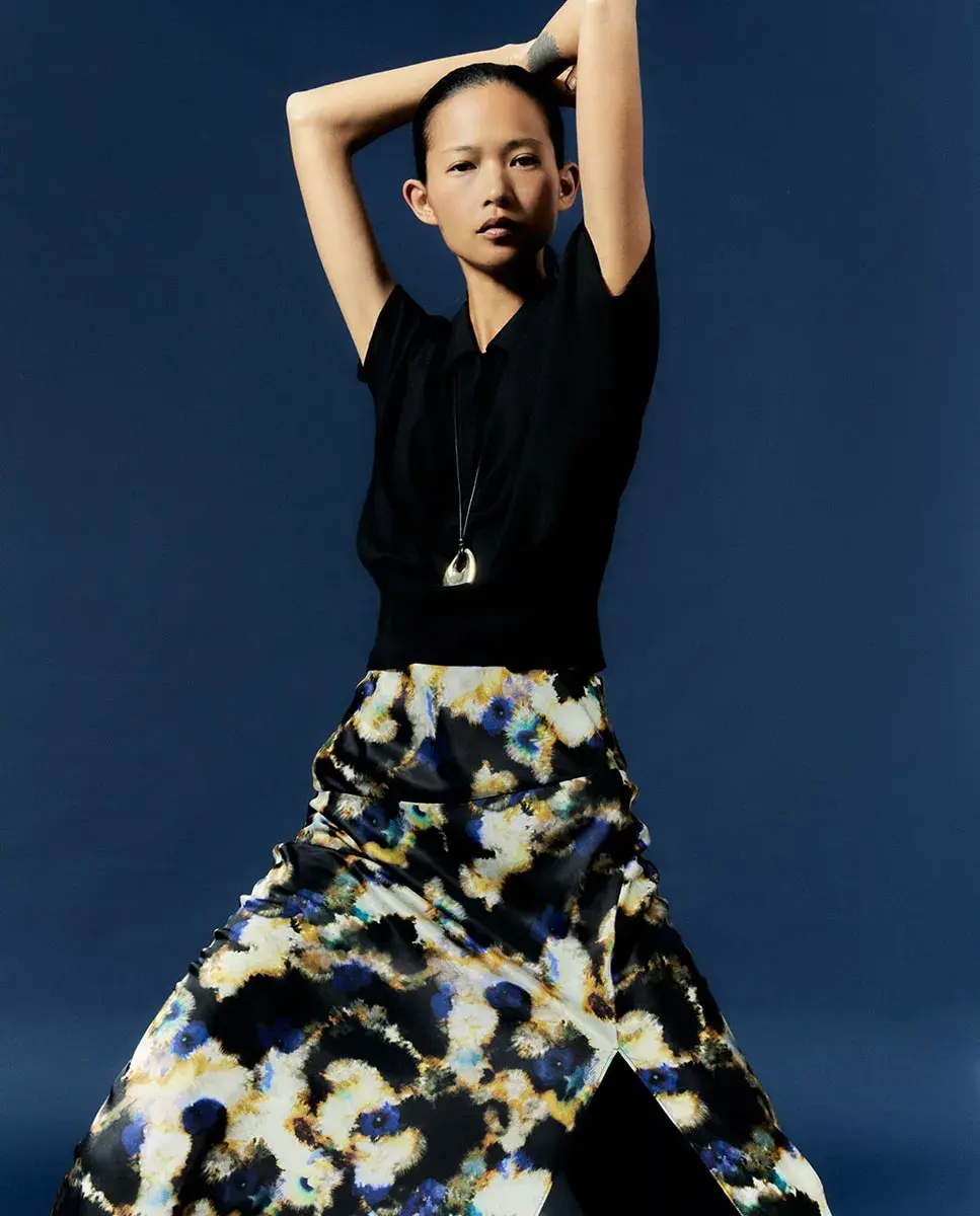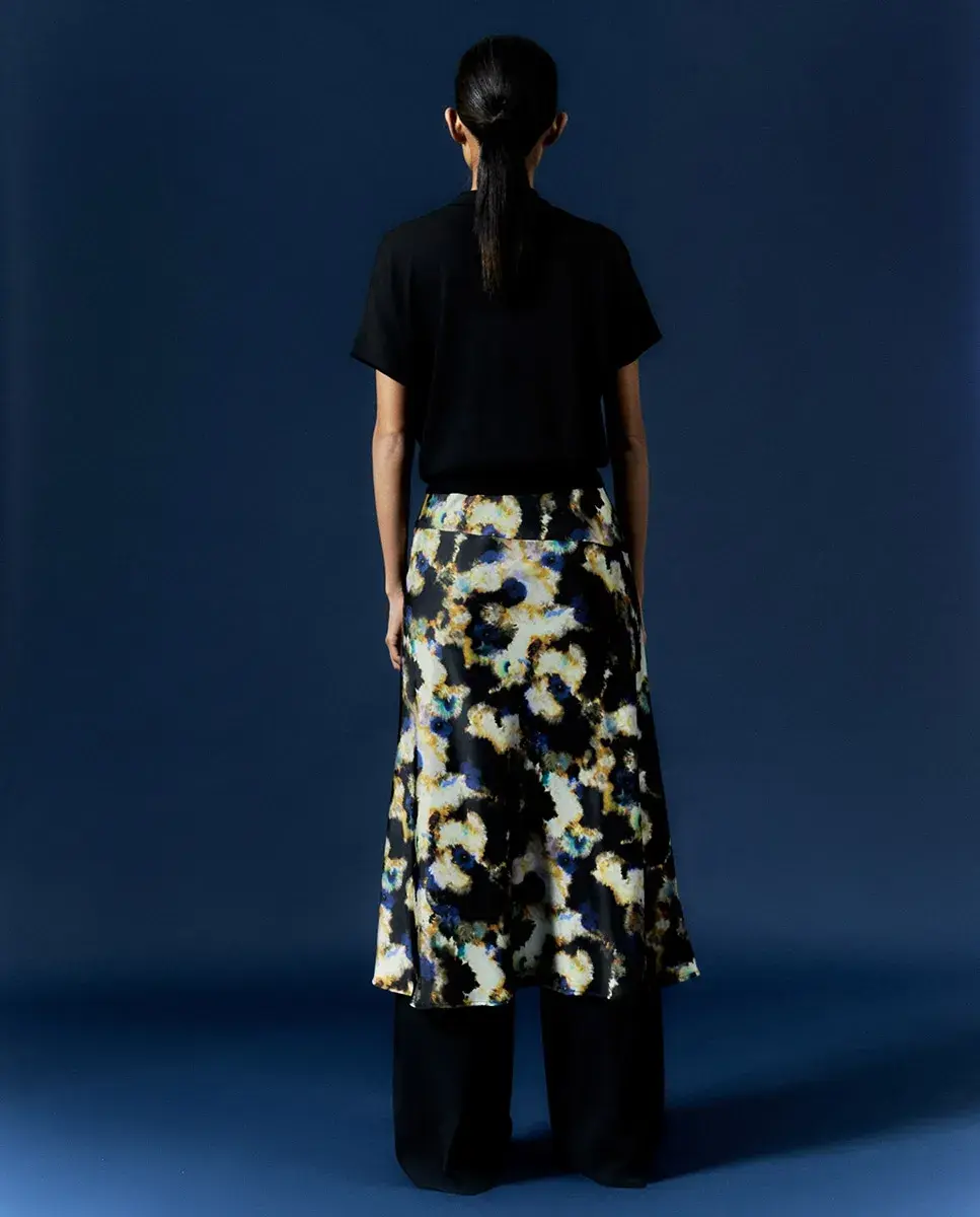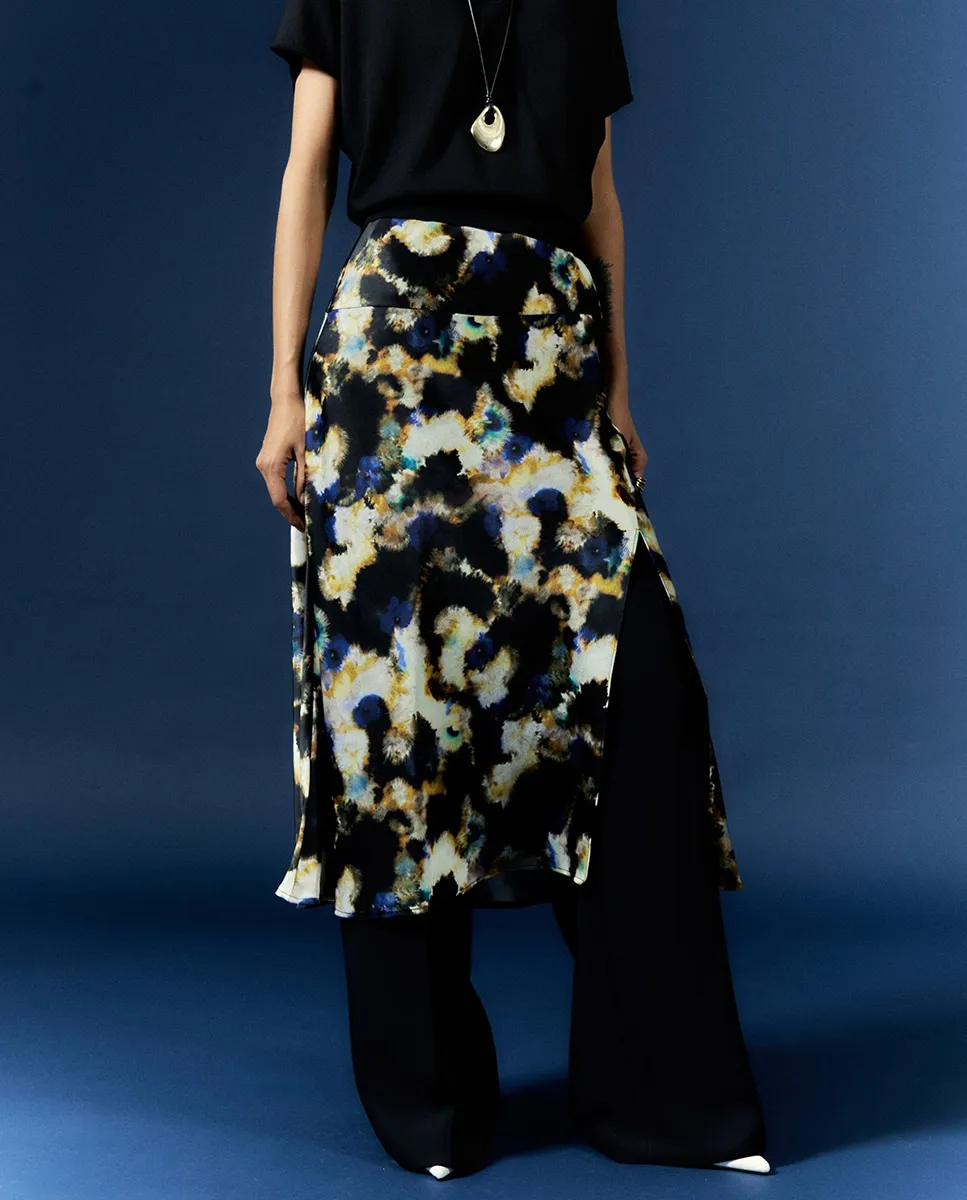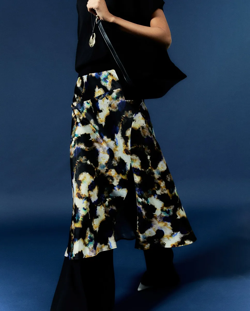 Юбка миди с принтом, застежкой на молнии и боковым разрезом