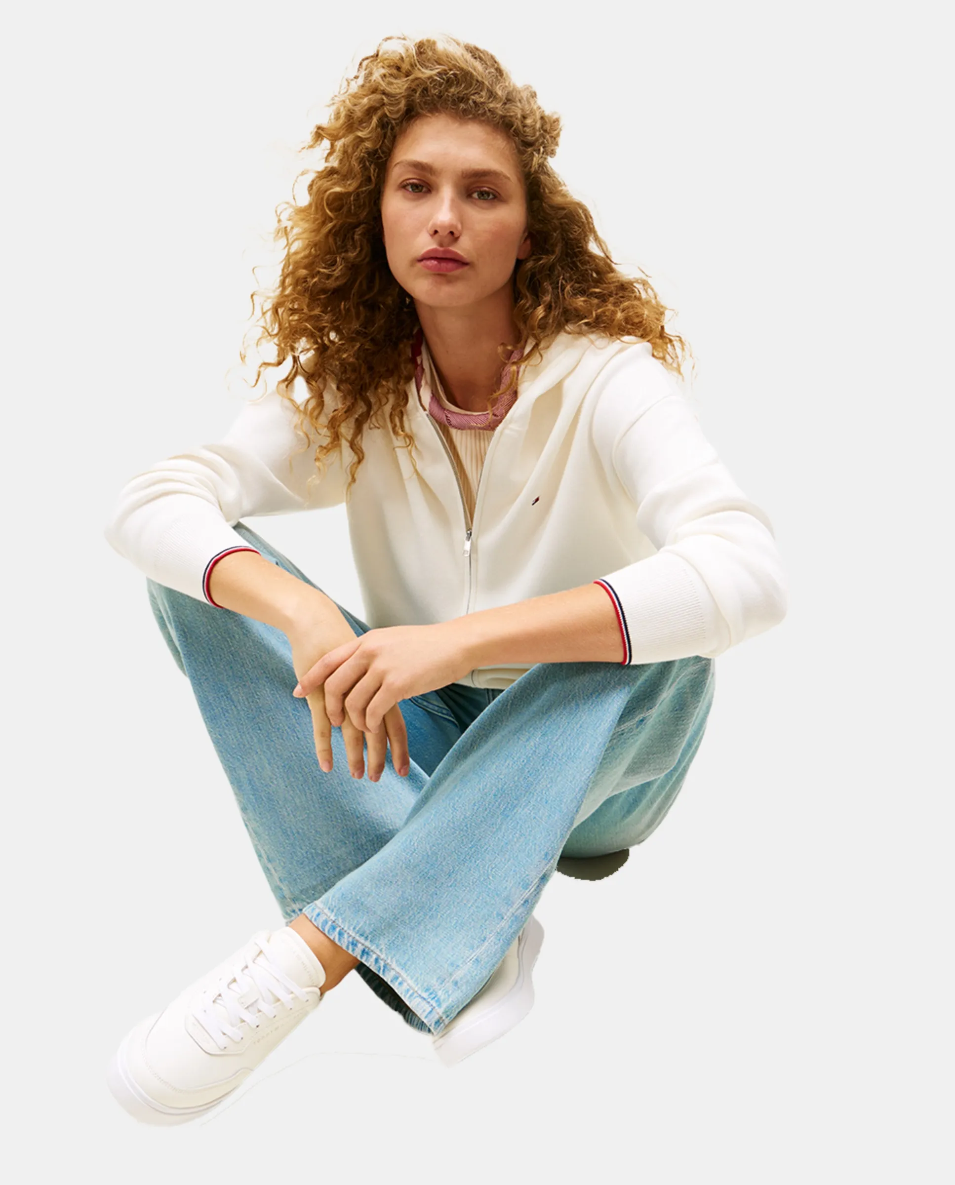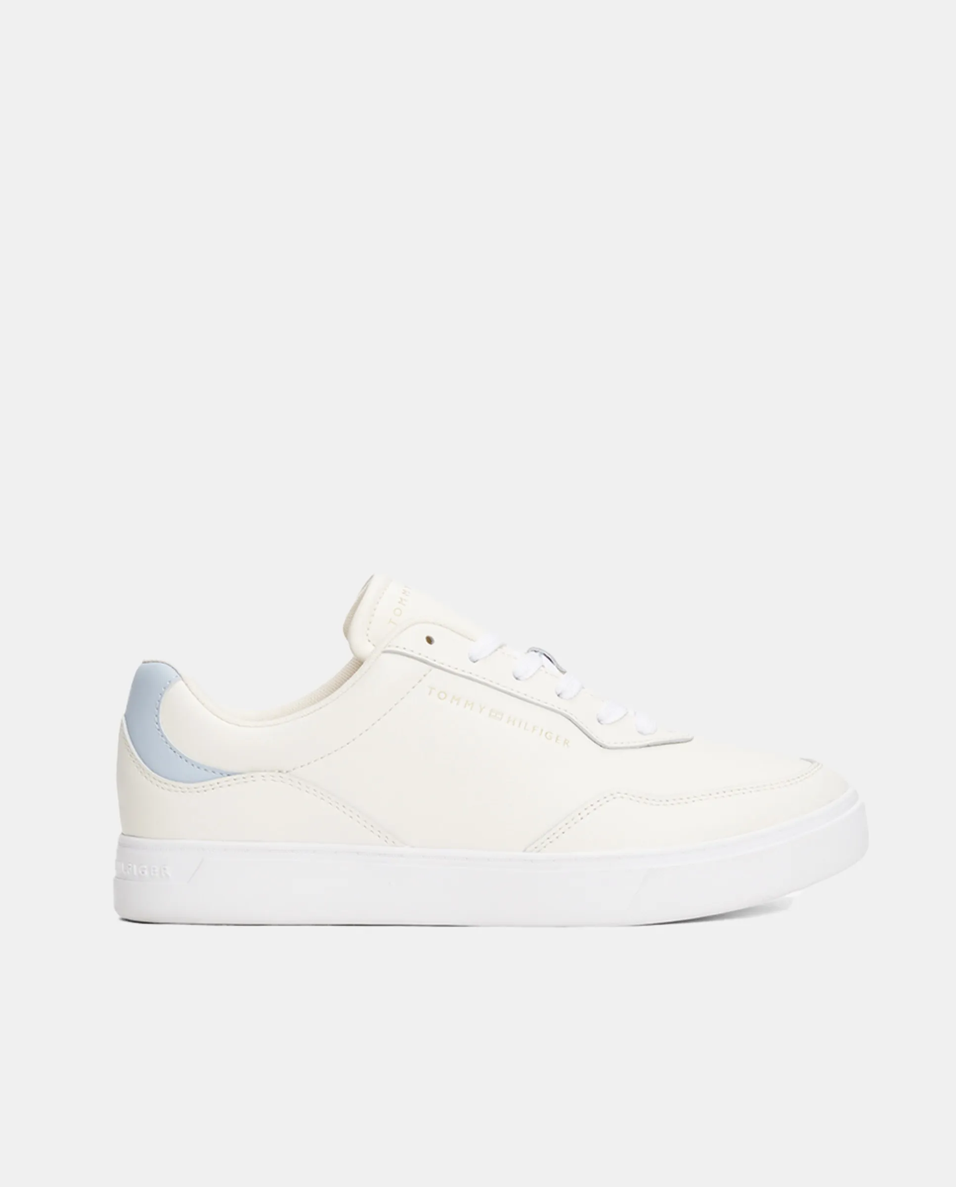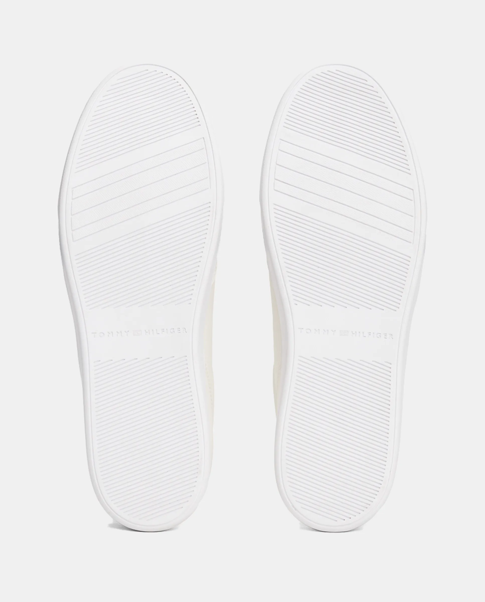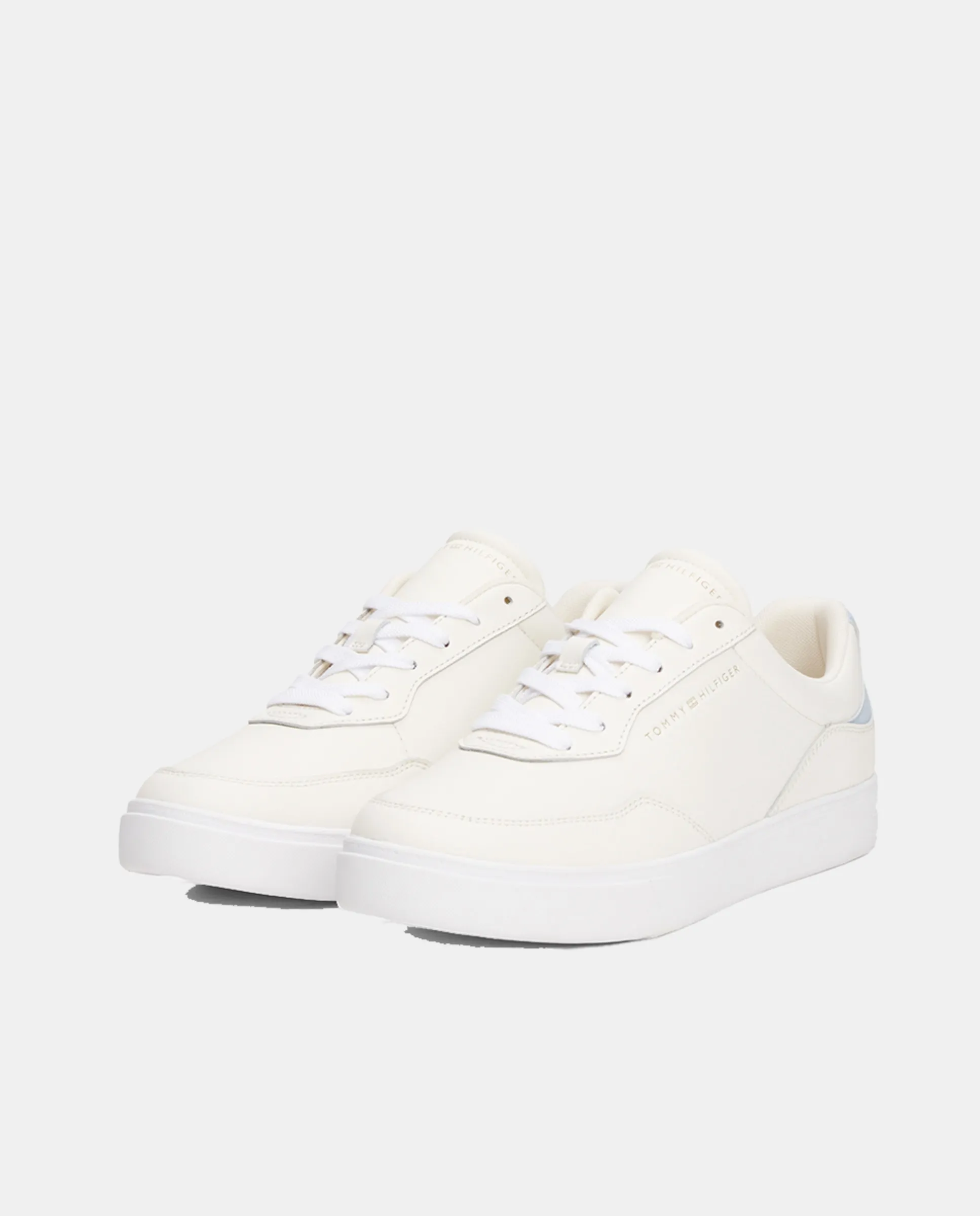 Бежевые кроссовки с защитным носком Tommy Hilfiger. Изготовлены из кожи. Золотой типографический логотип на боку.