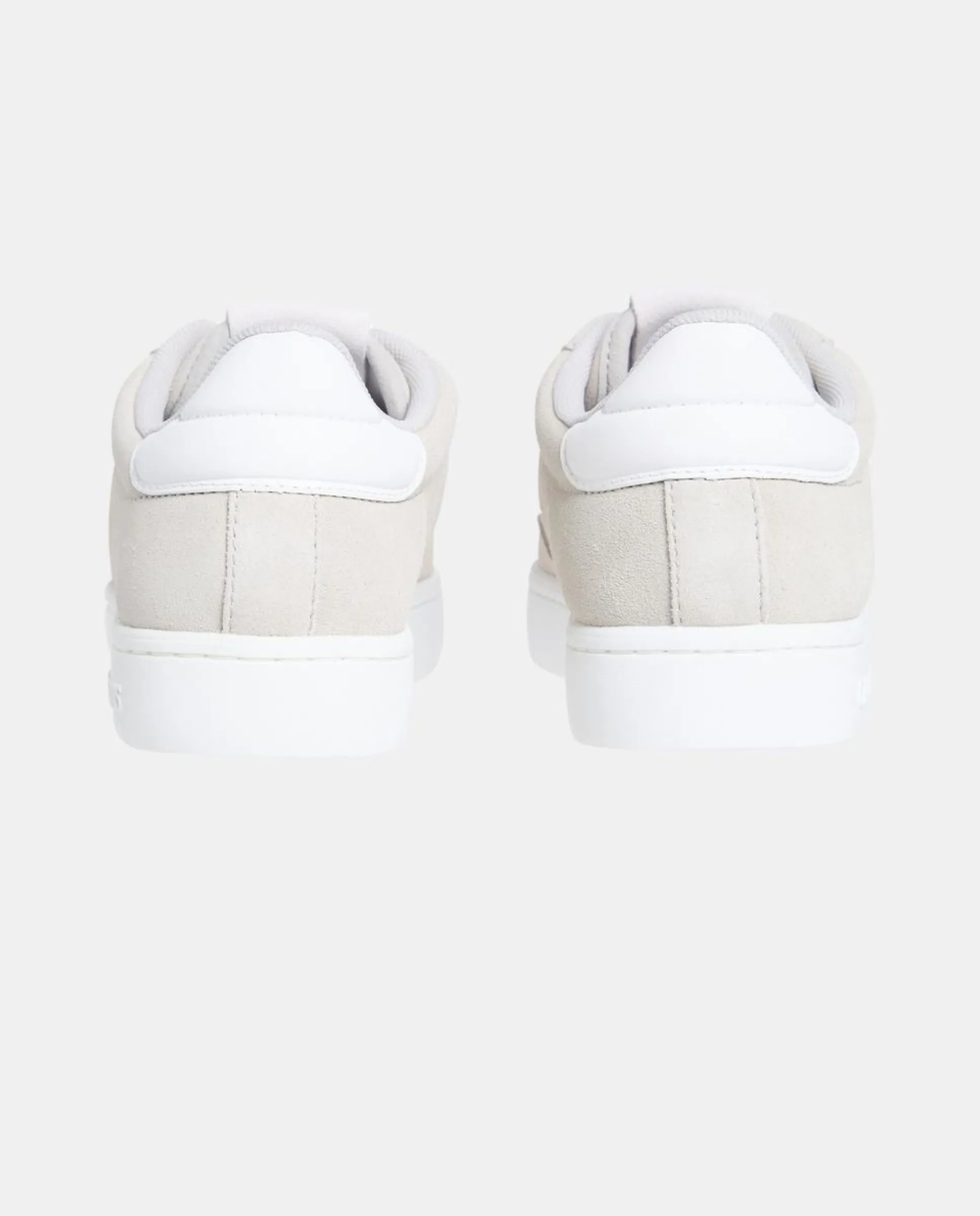 Низкие кроссовки типа каска 100% кожа серого цвета для женщин с шнуровкой, боковым логотипом и белой пяткой.