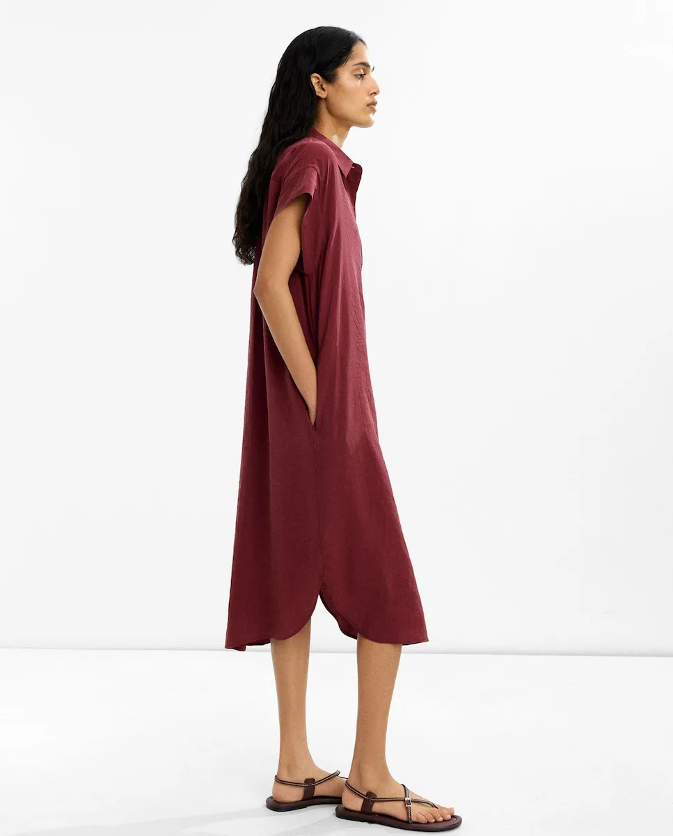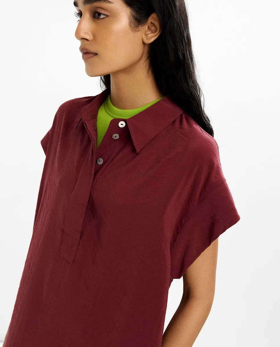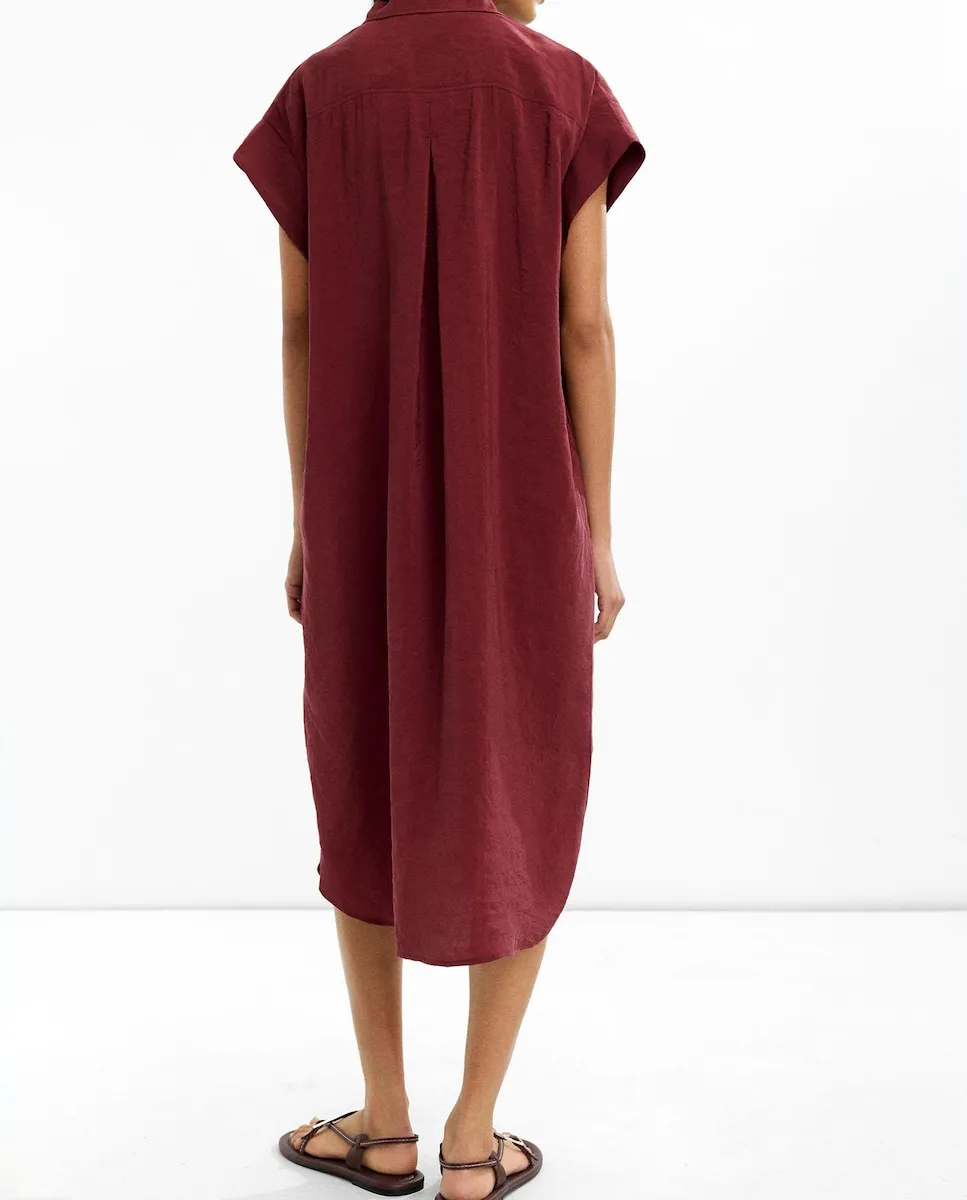 Короткий рукав миди платье-рубашка в однотонном цвете Parfois, бордовый
