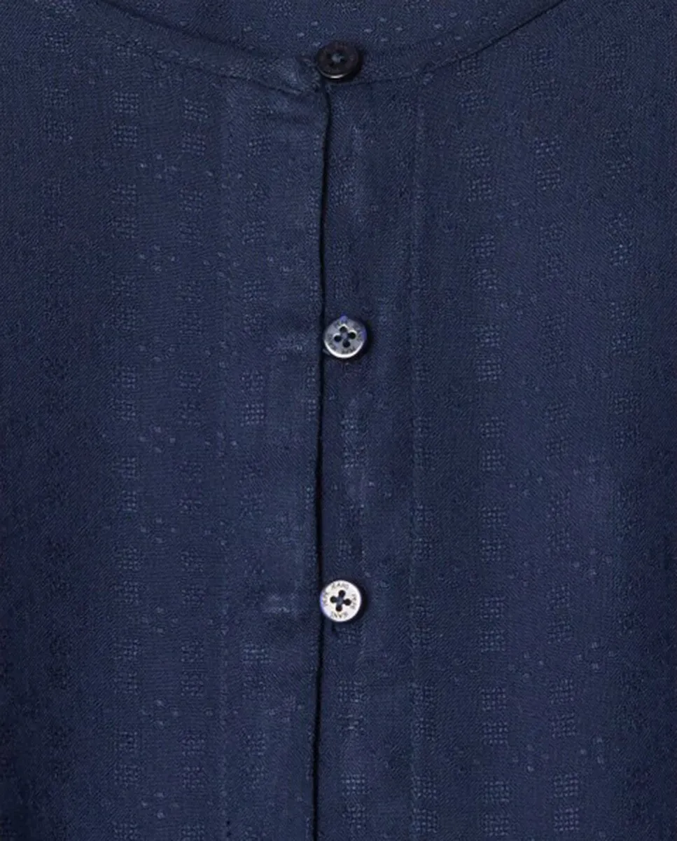 Короткое рубашечное платье с длинными рукавами и круглым вырезом, с кнопочной застежкой спереди и эластичными манжетами
