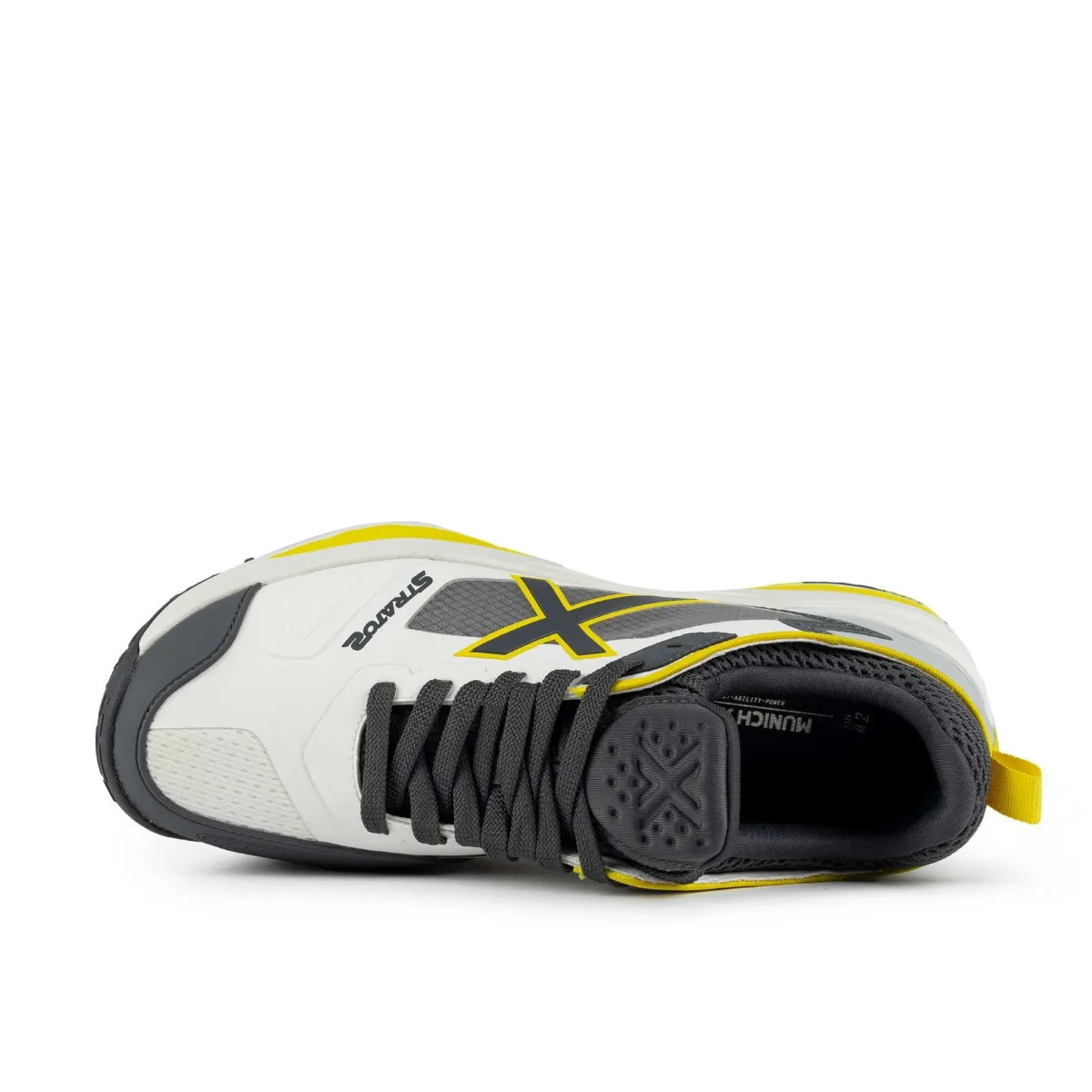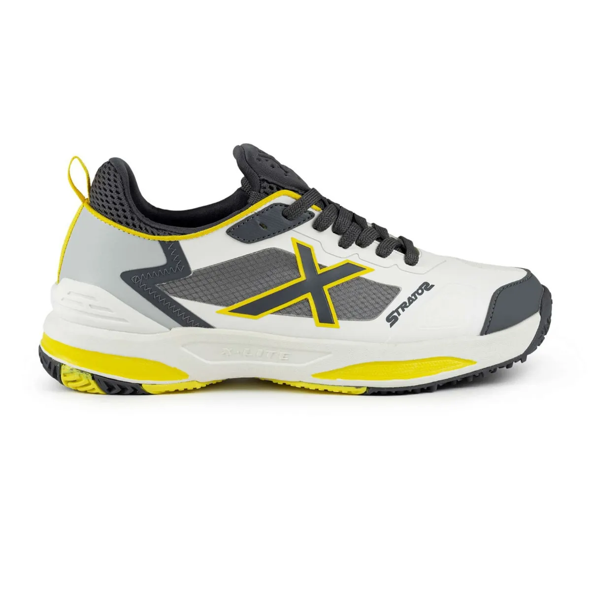 STRATOS - это новая ставка, которая позволит вам скользить по площадке для паддла без малейшей усталости. Основание сделано из микроволокна с зоной сетки на носке, предназначенной для обеспечения воздухопроницаемости. Носок усилен резиновым материалом, чтобы противостоять потертостям при игре. Зона пятки отделена от средней части и носка термосваркой, выполненной из ПУ для повышения жесткости и фиксации ноги. Конструкция обуви выполнена в стиле носка для внутренней части стопы. В конечном итоге используются два разных материала для внешней стороны, трикотаж, дополненный подкладкой с дополнительной набивкой, обеспечивающей стабильность.