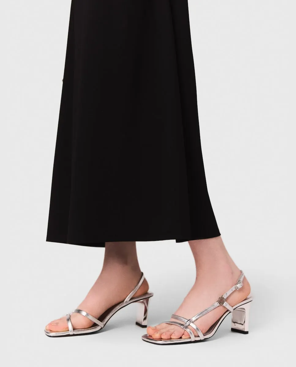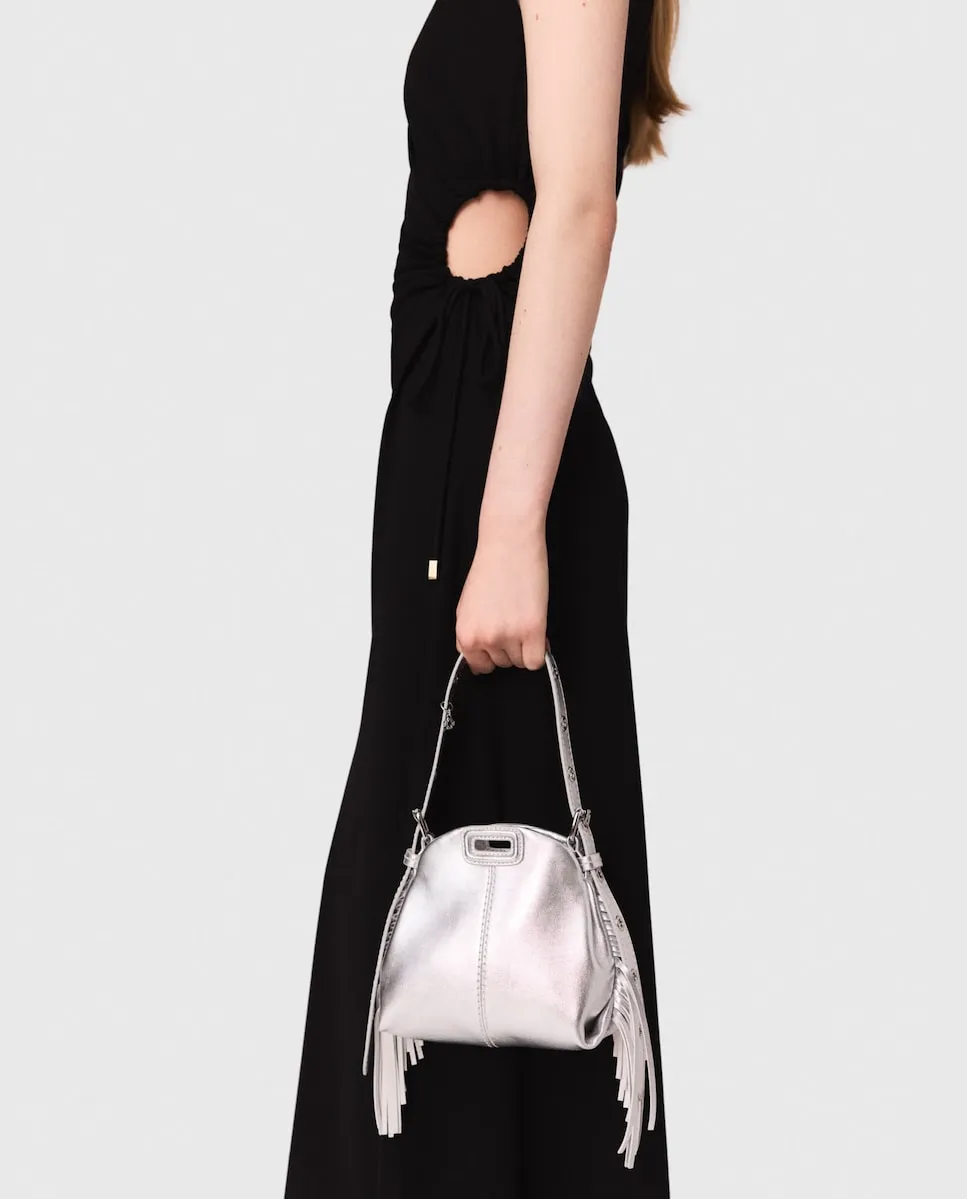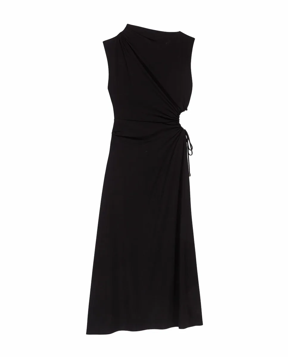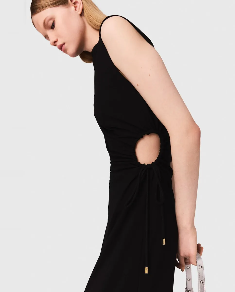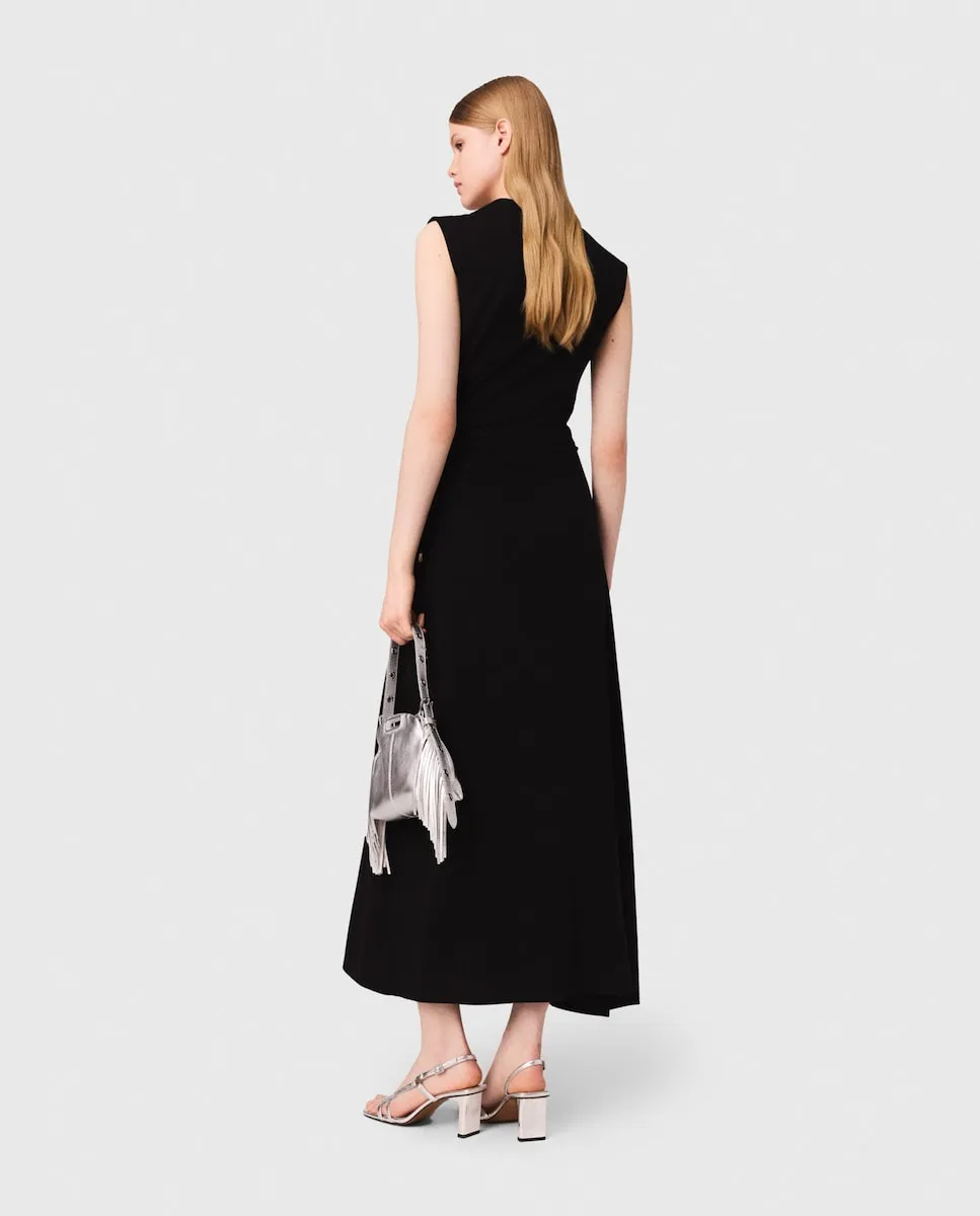 Длинное платье с высоким воротником и короткими рукавами. Ассиметричный драпированный эффект. Боковой вырез со скользящими шнурками. Боковой разрез, который длиннее с одной стороны. В этом сезоне Maje предлагает современные и смелые вещи, идеально подходящие для перехода между летом и осенью. Коллекция делает ставку на элегантность и универсальность, с структурированными, но полными движения силуэтами. Флагманский предмет коллекции, это длинное платье с высоким воротником и короткими рукавами, выделяется своим ассиметричным драпированным эффектом и боковым вырезом, украшенным скользящими шнурками. Субтильный боковой разрез добавляет легкость и аккуратно открывает ногу. Идеально подходит для вечера или особого события, это платье можно сочетать с серебряными аксессуарами, мини-сумкой с бахромой и сандалиями для одновременно элегантного и смелого образа.