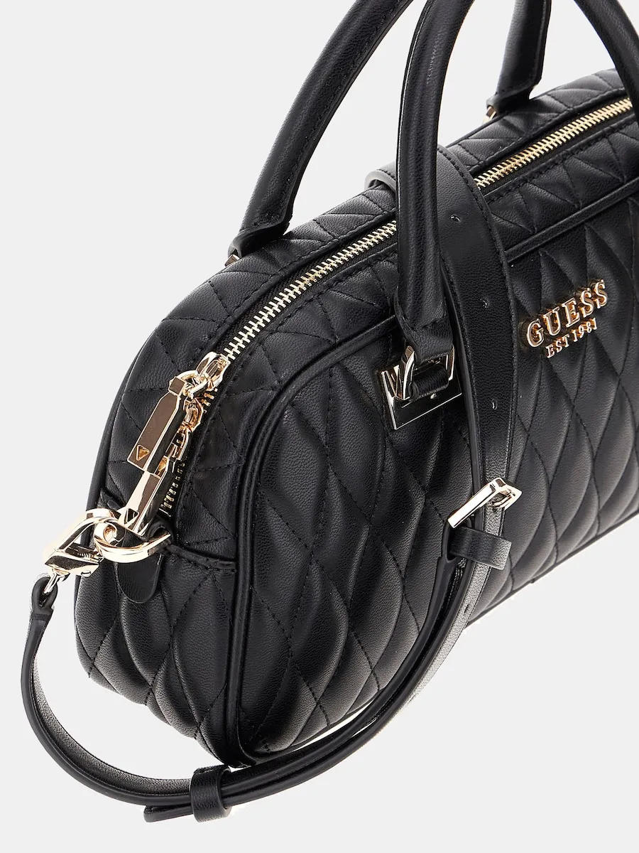 Сумка-клатч модели Valla с мягким отделением, центральным металлическим логотипом Guess 1981, внешним карманом с молнией и съемной ручкой
