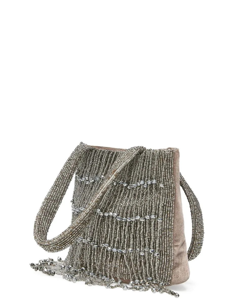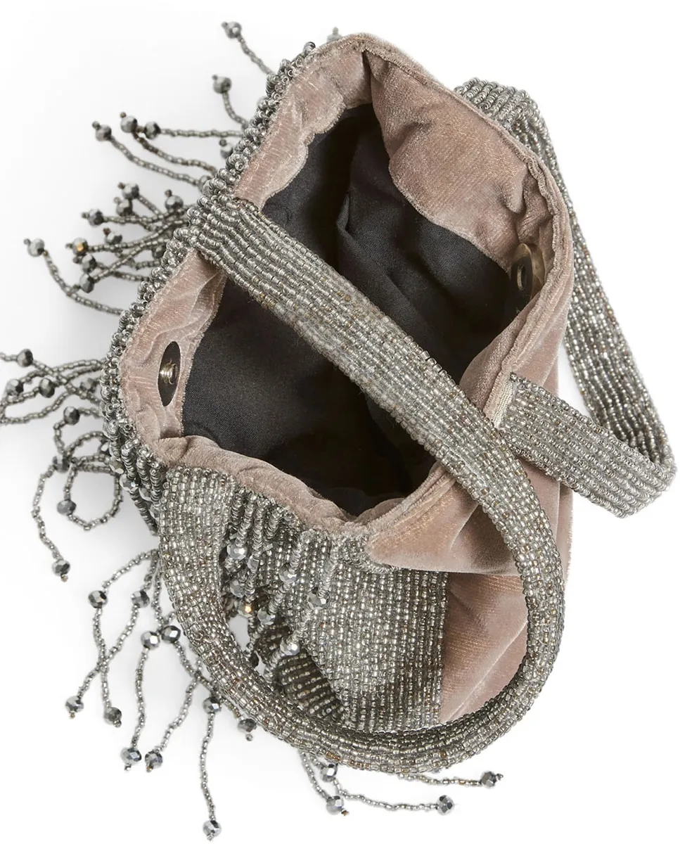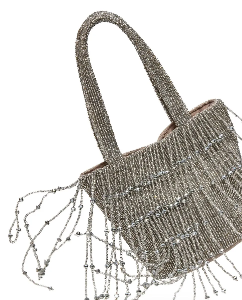 Мини сумка-корзинка с бусинами и бахромой Sfera, серебряный