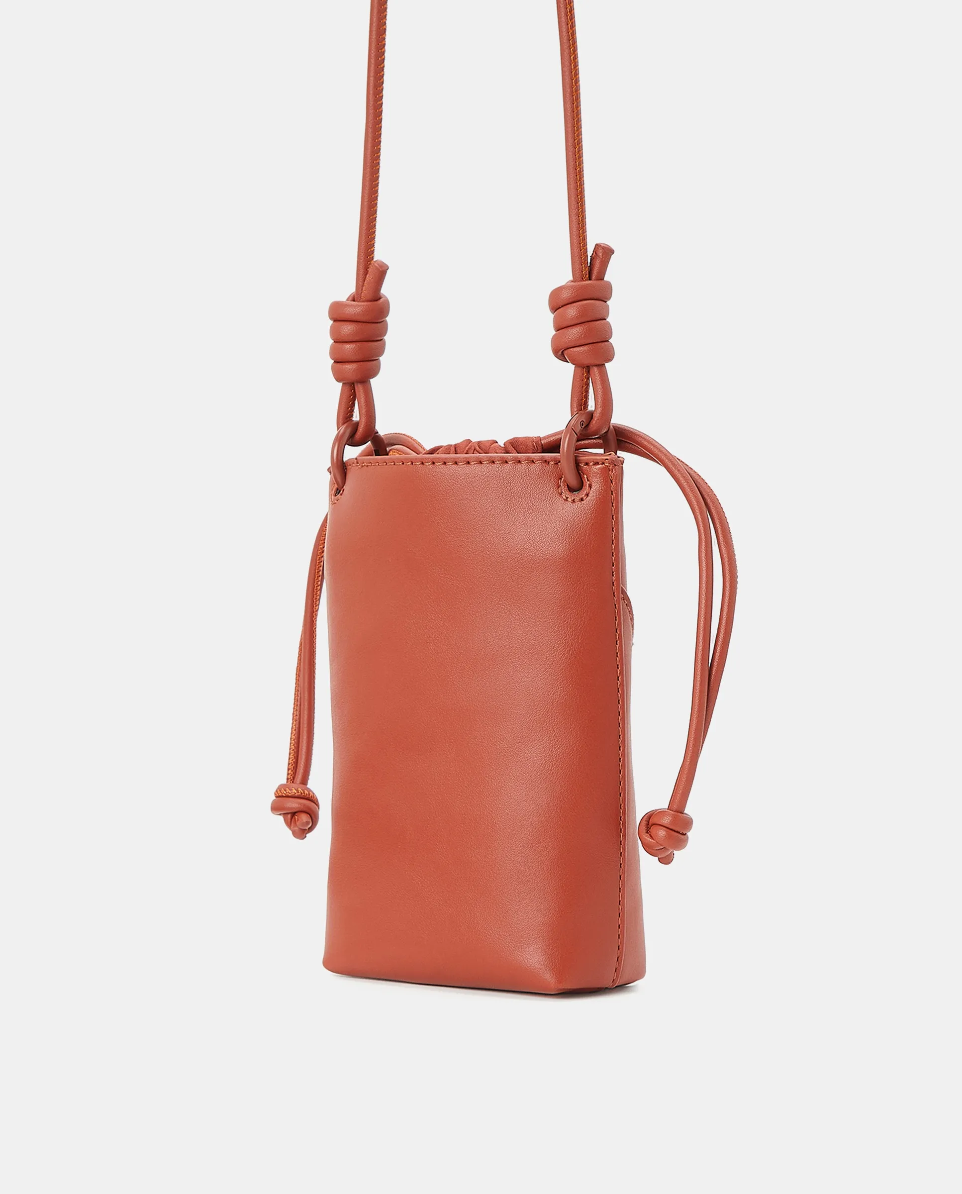 Мини-сумка с перекрестным дизайном, с фирменным логотипом и длинной ручкой. Имеет застежку на ремешках.
