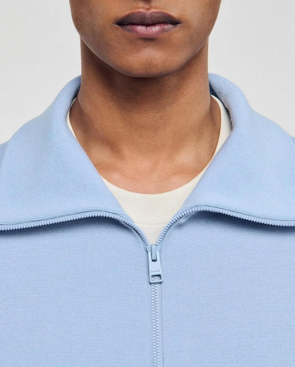 Тракра с высоким воротником, застежкой на молнии и длинными рукавами. Тракра из тонкой пряжи Sandro Мужские. Классический крой. 100% шерсть. Высокий воротник. Длинные рукава.