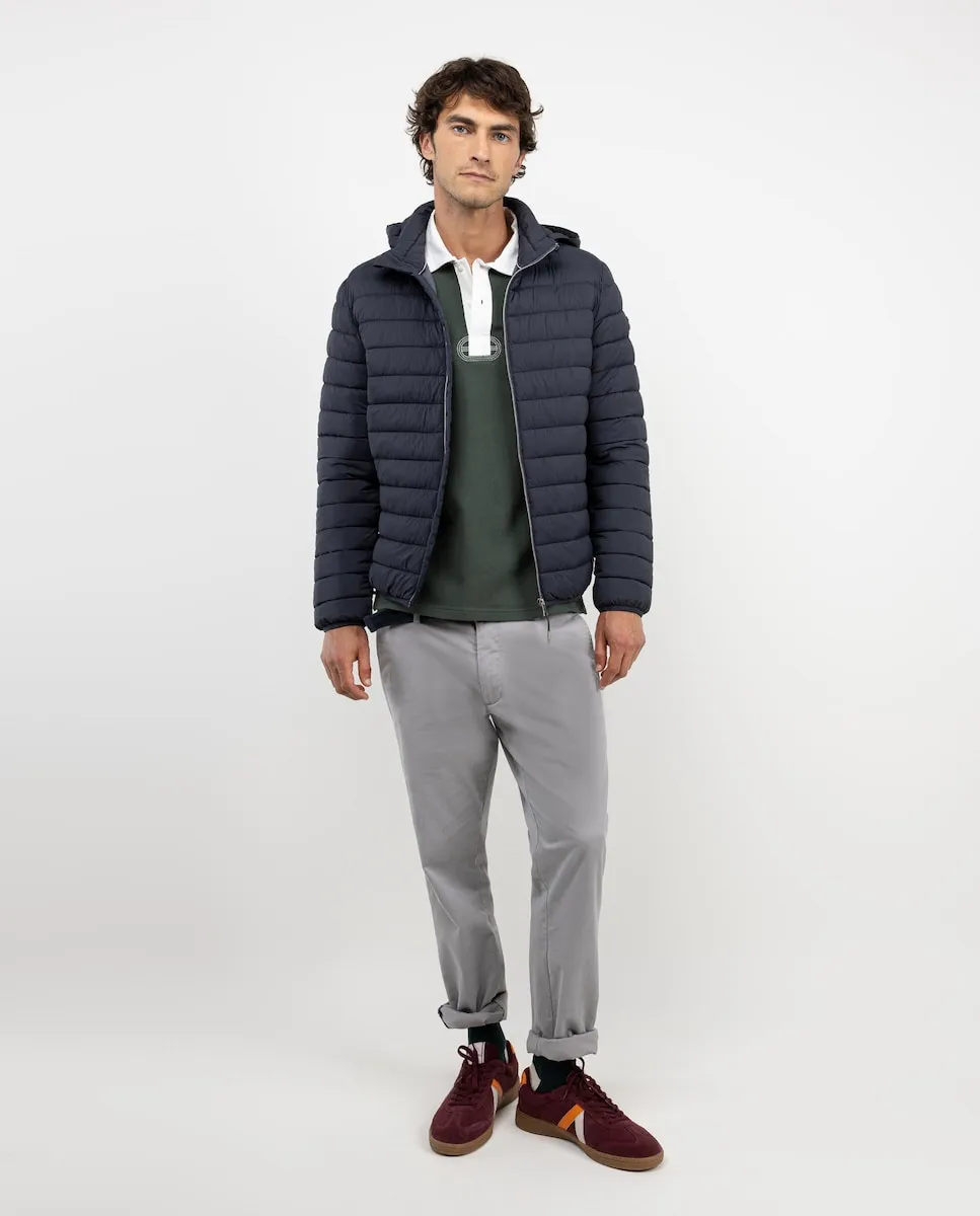 Мужская куртка с утеплителем, изготовленная из водоотталкивающей переработанной нейлоновой ткани. Имеет облегающий силуэт, воротник съемного капюшона и застежку на молнии с деталью флага 3 мм внутри. Длинные рукава, боковые карманы на молнии и внутренние карманы. | REPREVE. На нашем пути к становлению 100% устойчивым брендом мы решили использовать для внутренней ткани высокопроизводительное и современное волокно, изготовленное из различных переработанных материалов, включая пластиковые бутылки. До сих пор компания смогла переработать более 31 миллиарда пластиковых бутылок, и счет продолжает расти каждую секунду.