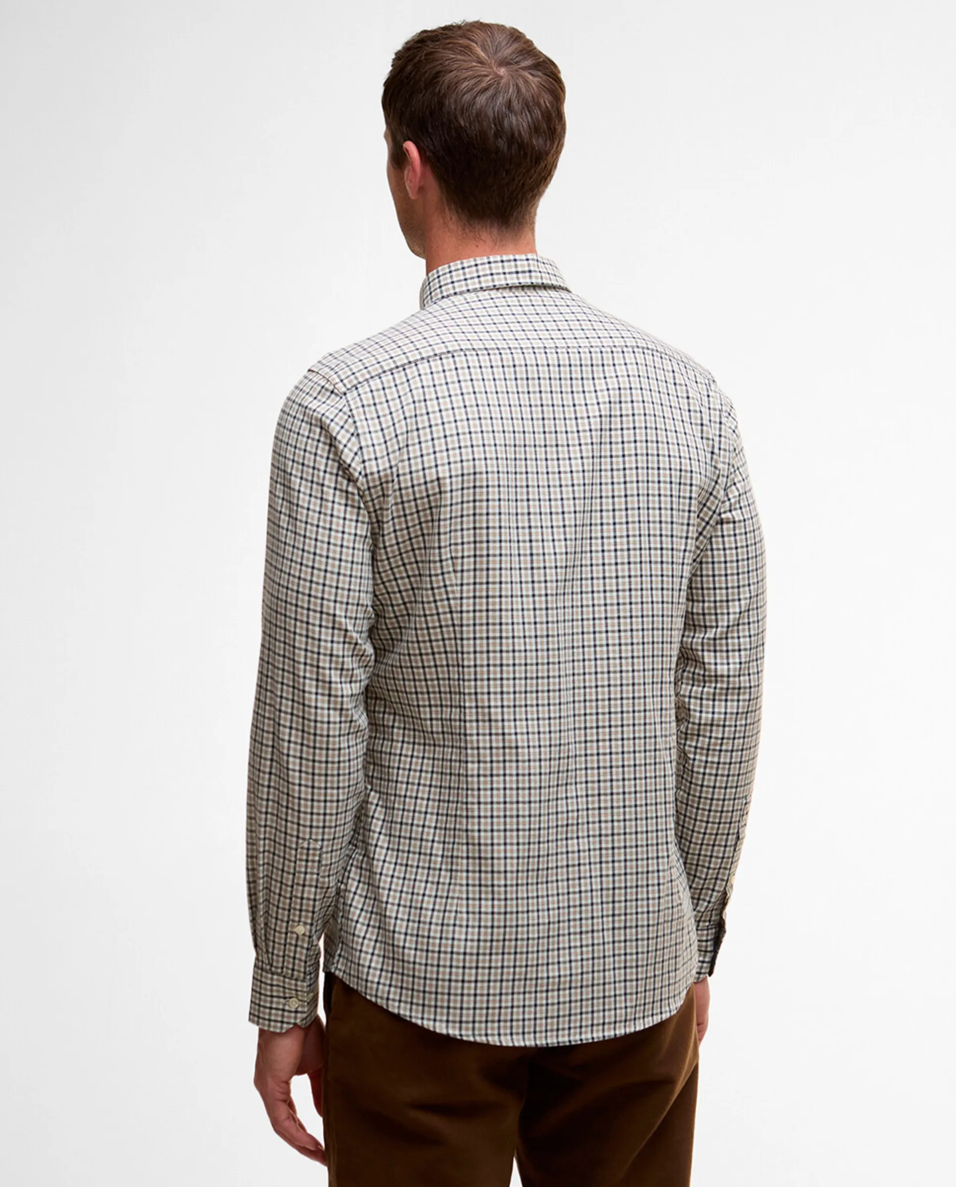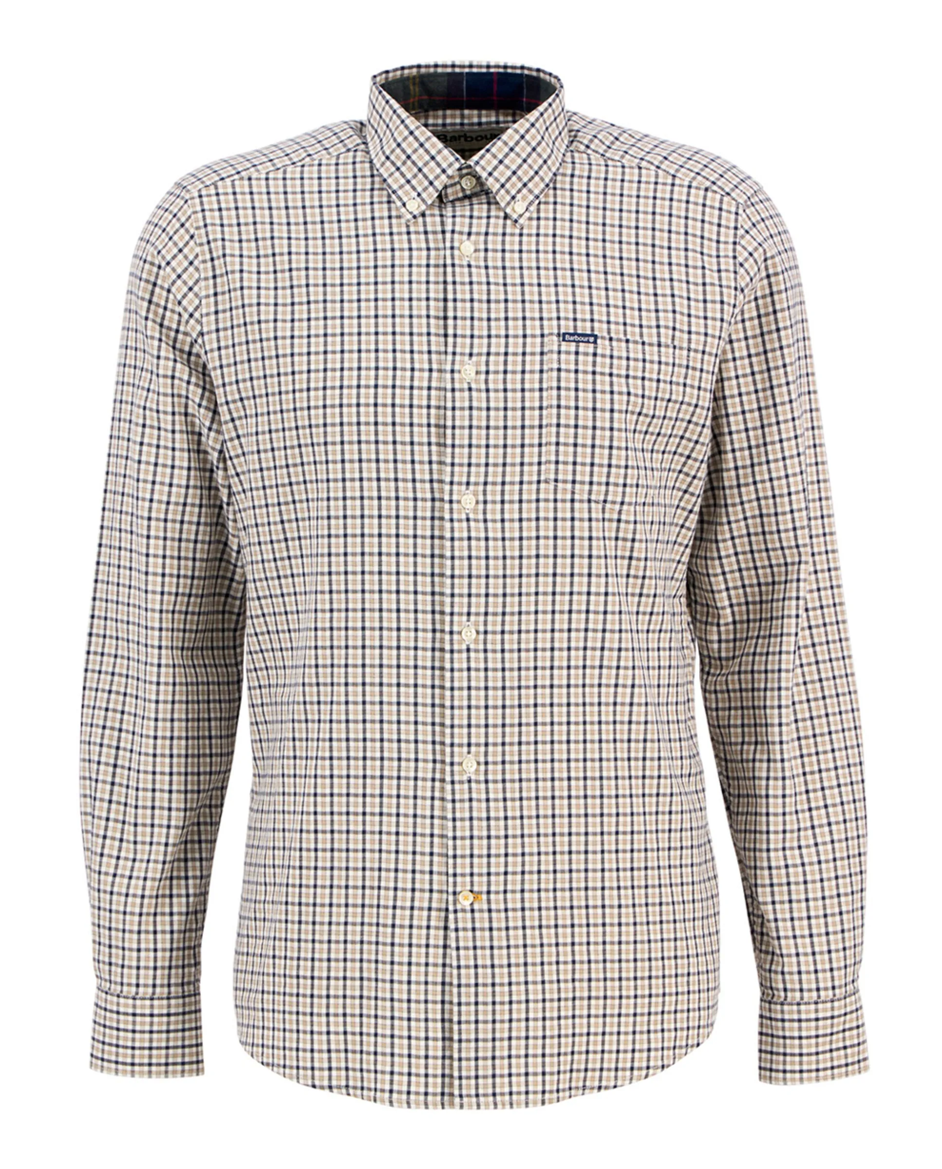 Элегантная повседневная мужская рубашка с длинными рукавами, отделка в тартан барбура