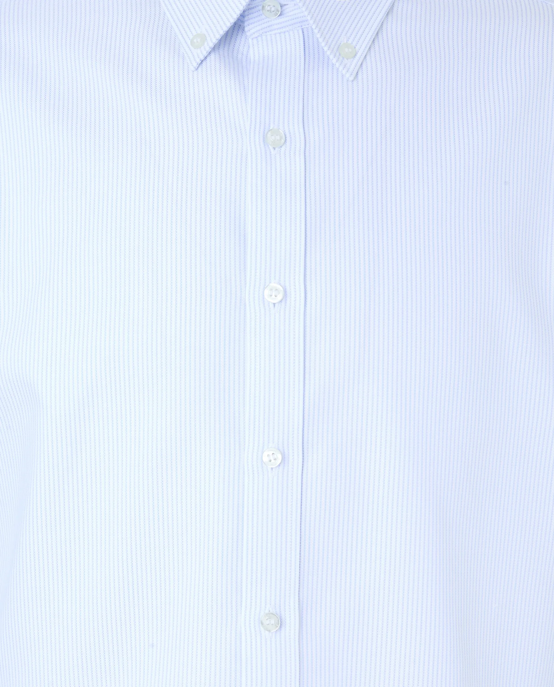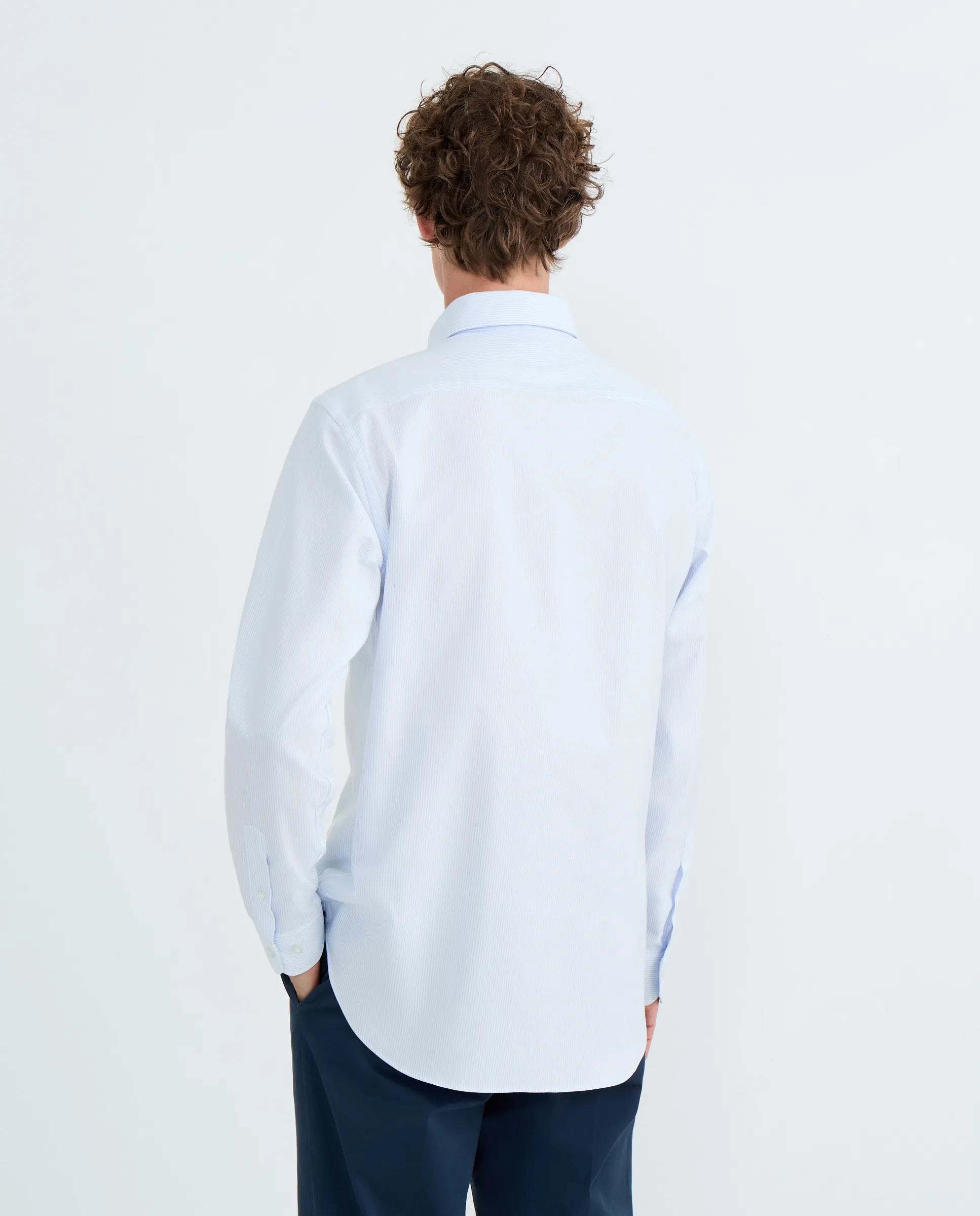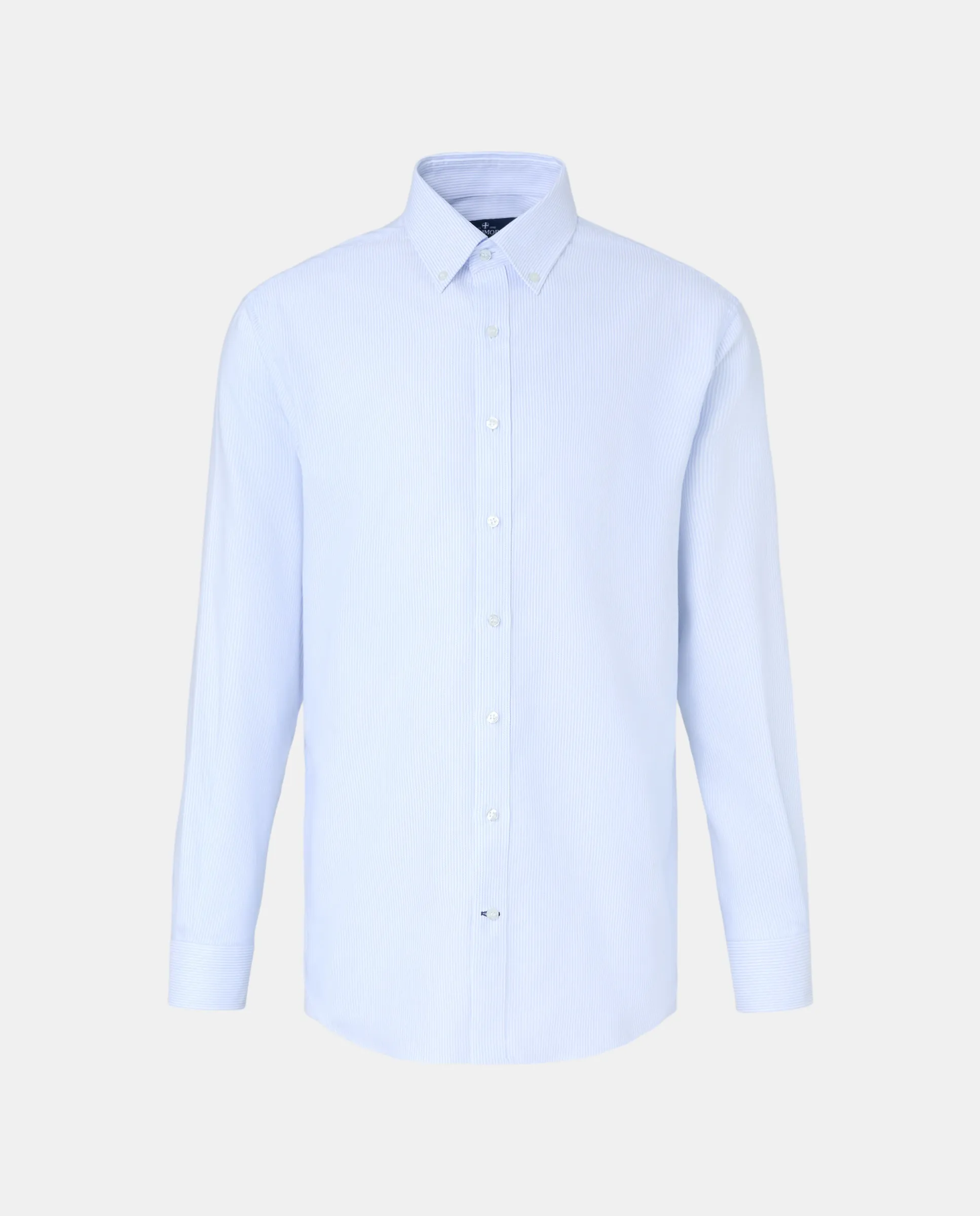 Рубашка спортивная с длинным рукавом, регулярный фит, 100% хлопок, без глажки, оксфорд в полоску с фоновой полоской, воротник с пуговицей на конце, манжета с уголком.