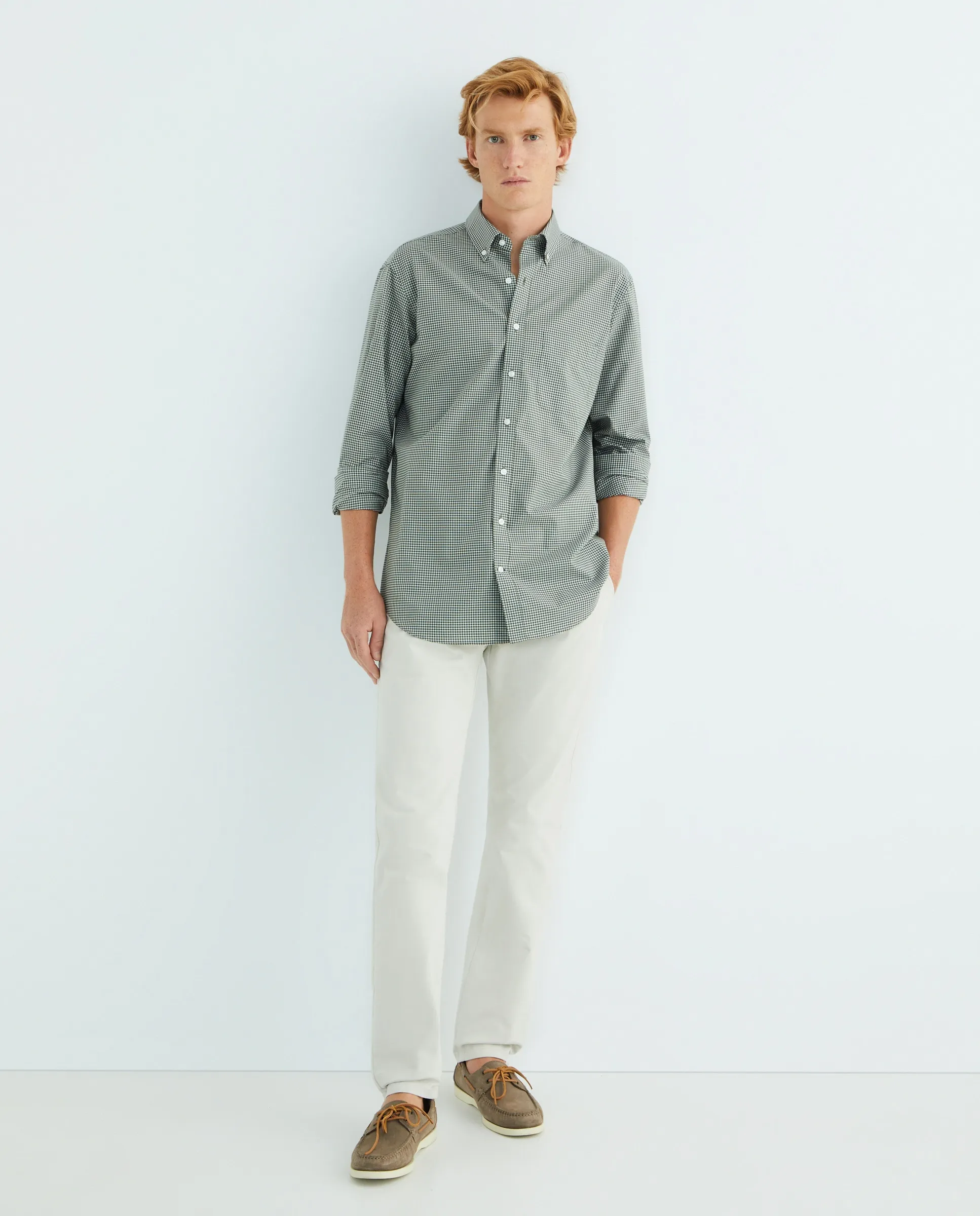 Футболка спортивная с длинным рукавом регулярного кроя 100% хлопок NON IRON поплин в мелкую клетку, воротник с кнопкой, манжета с острием, с карманом