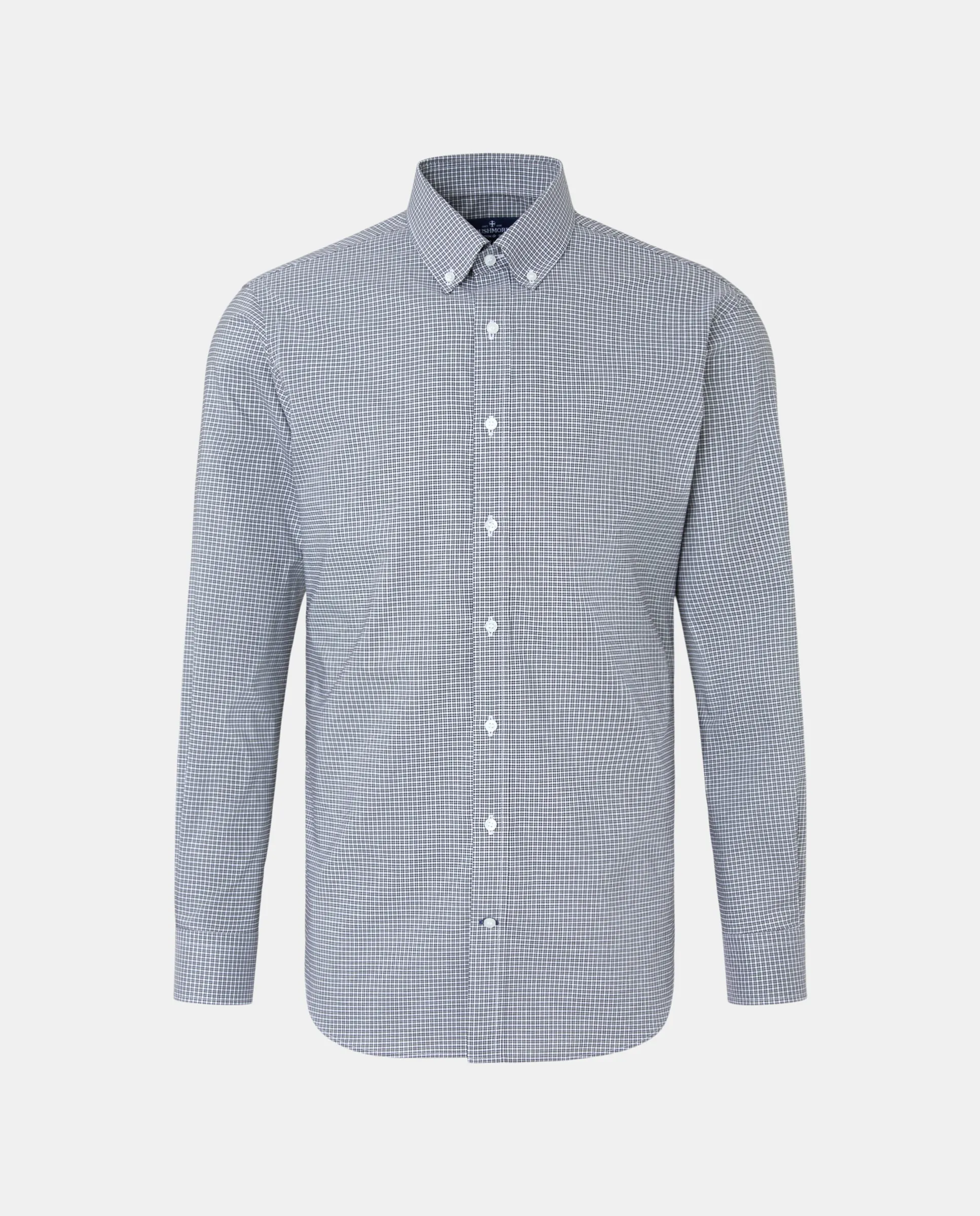 Спортивная рубашка с длинным рукавом slim fit из 100% хлопка, НЕ СОЗДАЁТ БУДОК, мелкая клетка, с кнопочным воротником и заострённым манжетом.