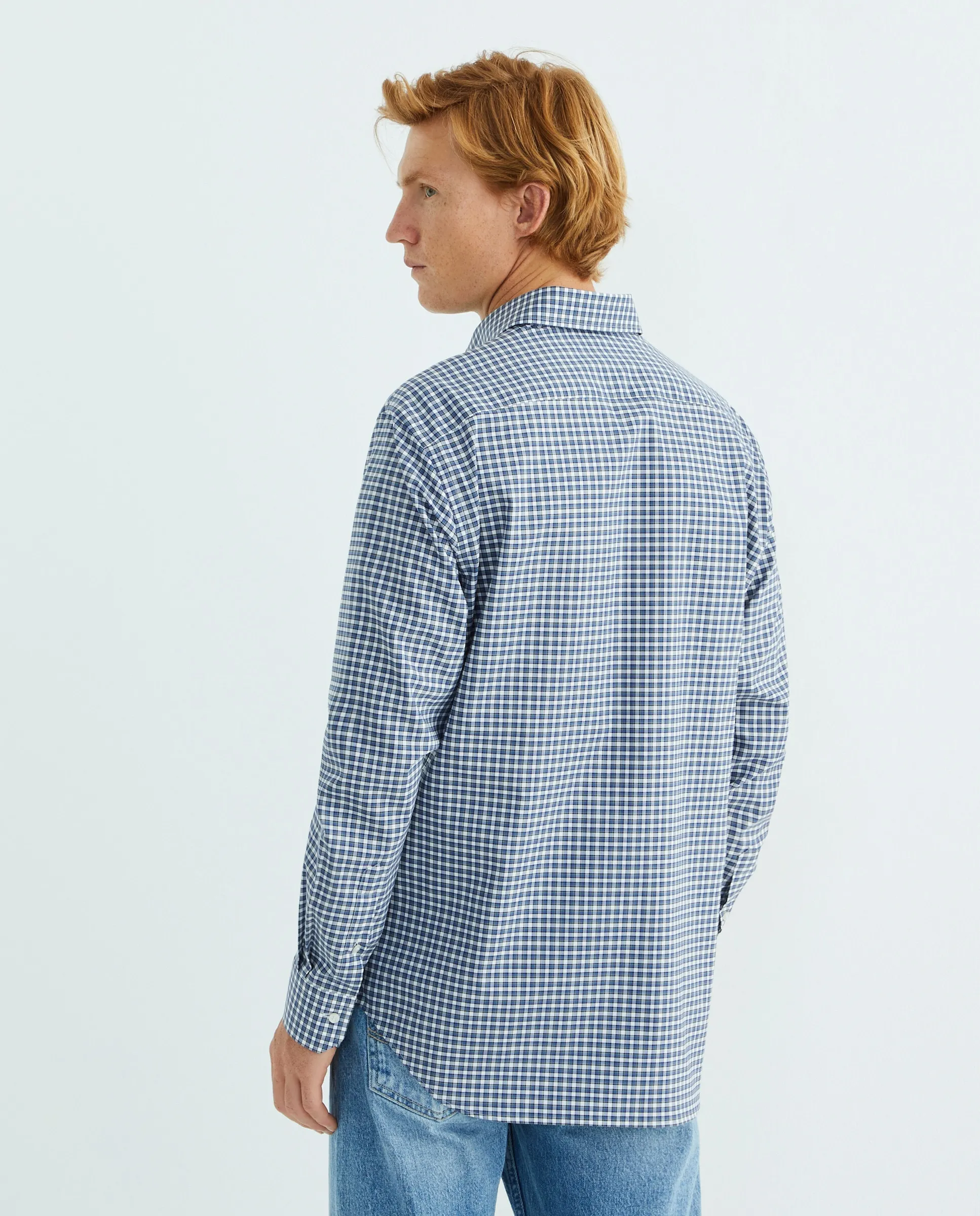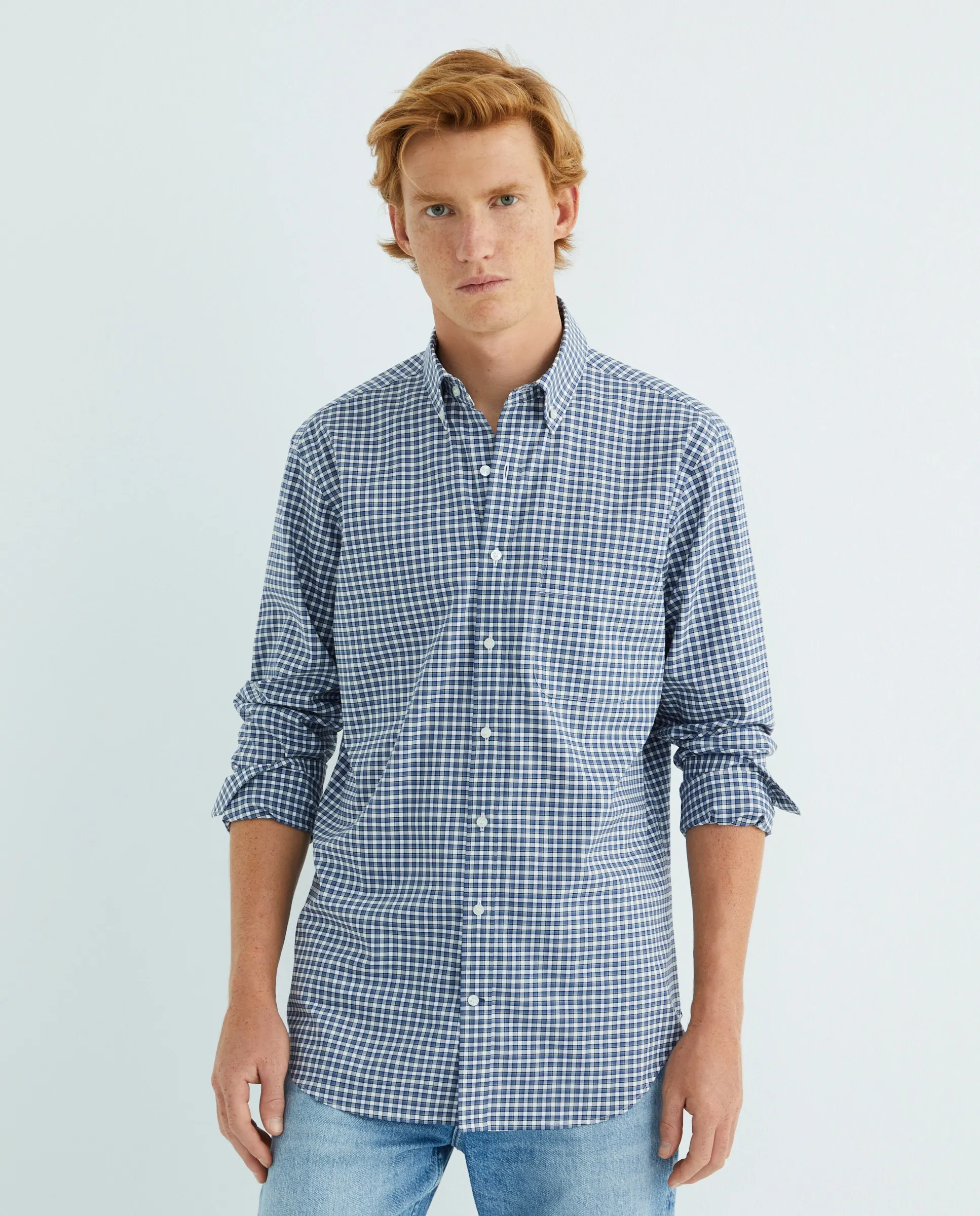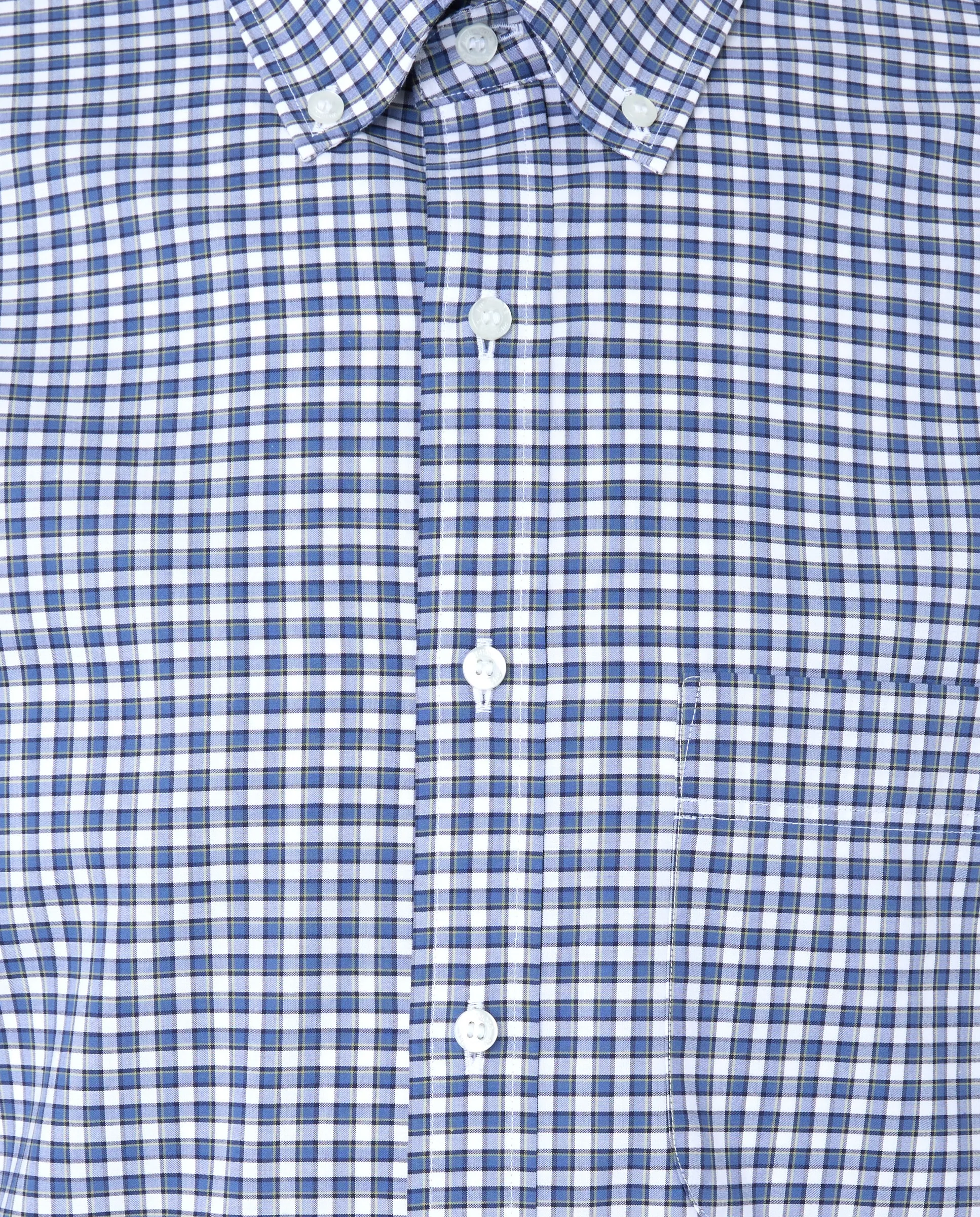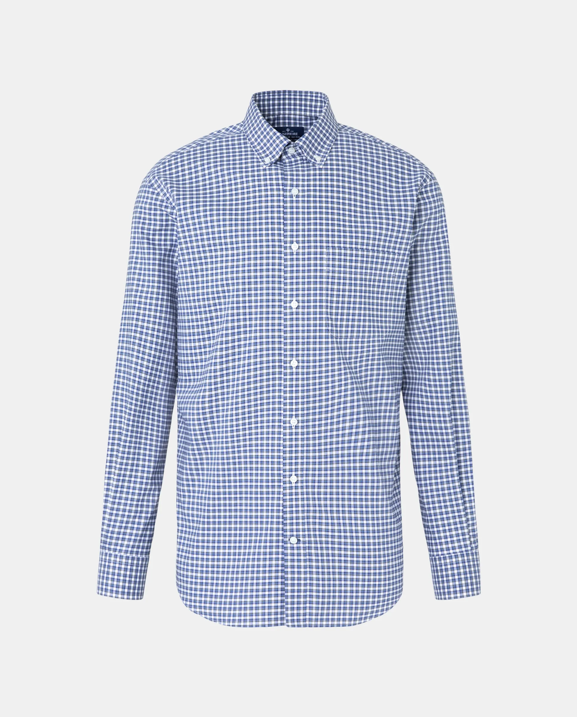 Футболка спортивная с длинными рукавами обычного кроя 100% хлопок NON IRON поплин в среднюю клетку, воротник с кнопкой, манжета с острием, с карманом