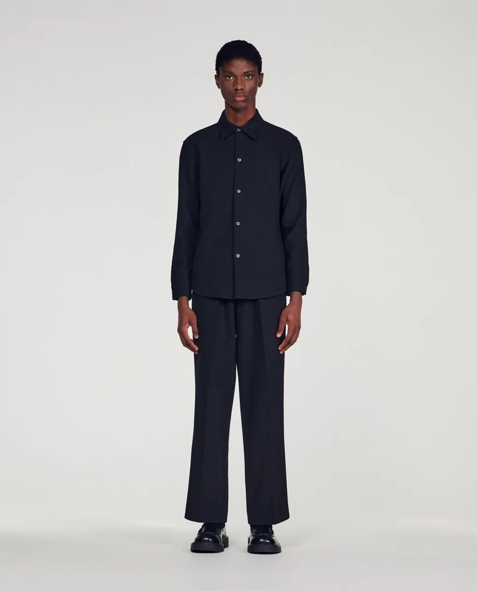 Рубашка с классическим воротником, длинными рукавами с манжетами на кнопках и застежкой на пуговицах. Рубашка Sandro Homme. Воротник рубашки. Длинный рукав. Манжеты на кнопках. Застежка на пуговицах.