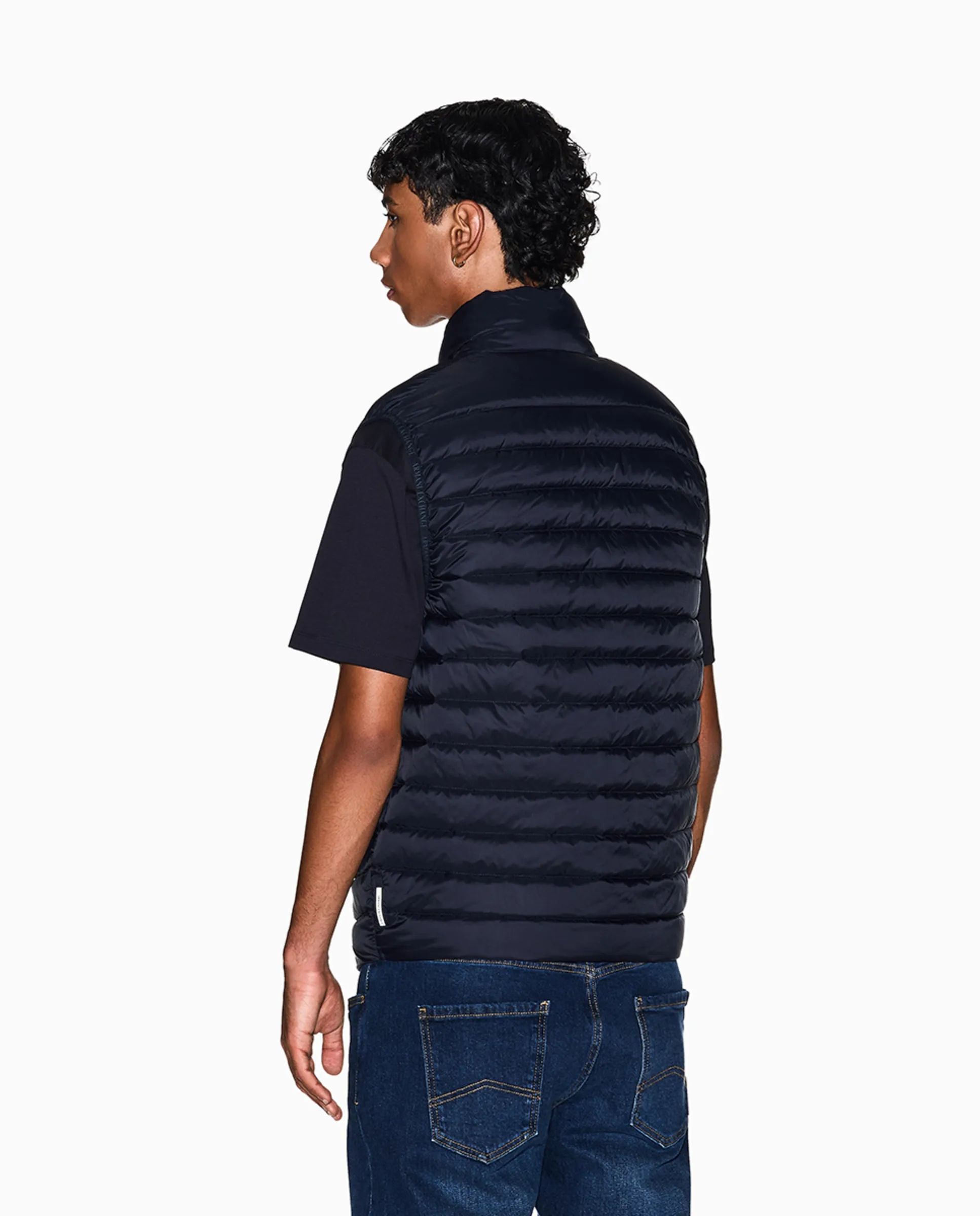 Пуховик из непрозрачного нейлонового материала. Контрастный логотип на груди. Боковые карманы с застежкой-молнией. Резинка с персонализированным логотипом на крае плеча.