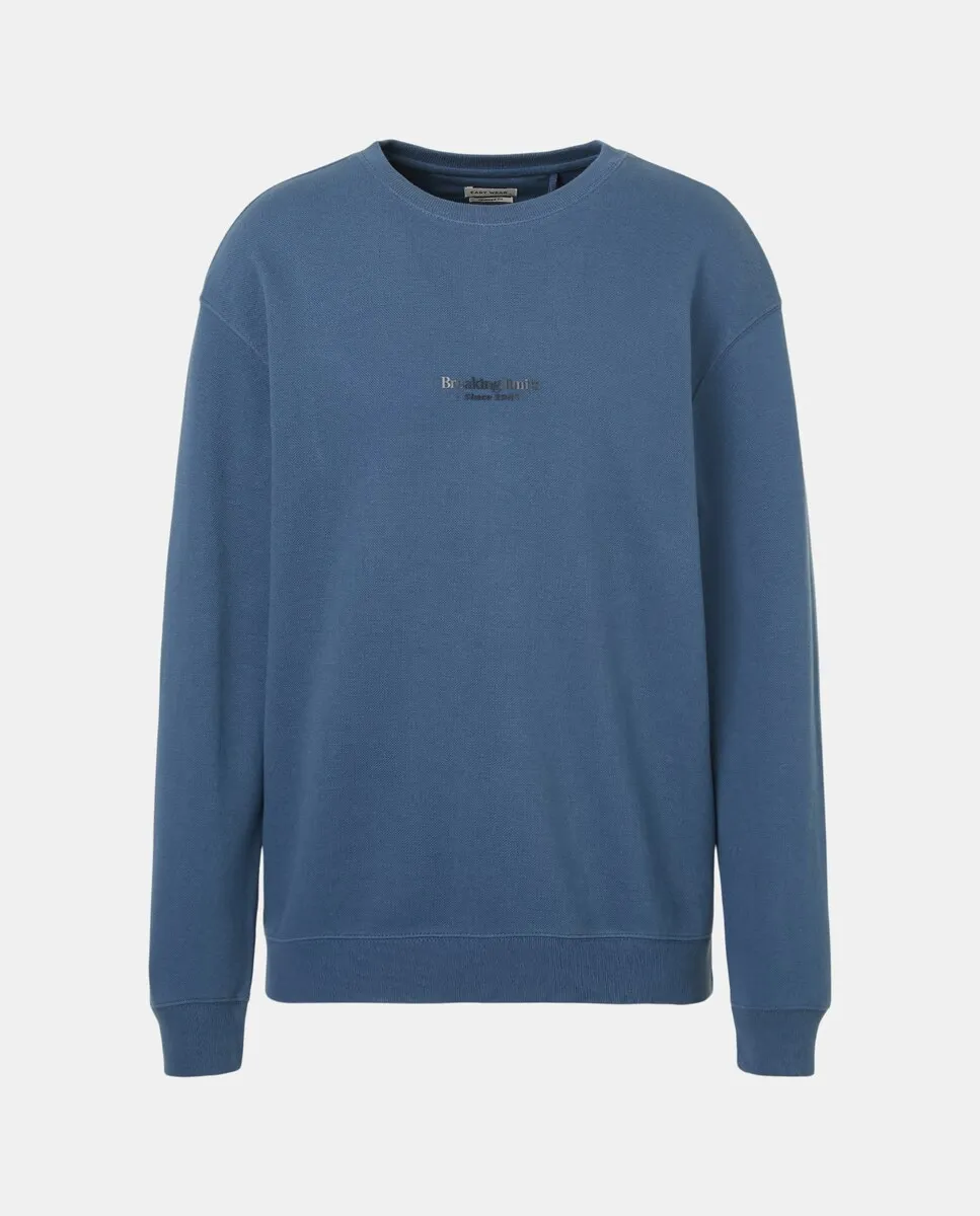 Мужская толстовка с круглым вырезом из пике. Однотонная, с принтом в тон спереди.