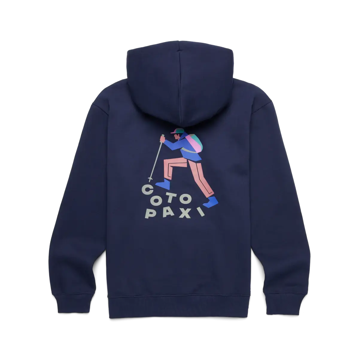Комфортный для кожи и экологически чистый благодаря смеси тканей из органического хлопка и переработанного полиэстера. Функции: капюшон с двойной подкладкой для большей тепотности, мягкий графический рисунок вручную, манжеты и подол с кантом, лента на шее, этикетка с флагом Котопакси на боковом шве, передний кенгуровый карман и плетеный шнур с изображением ламы.