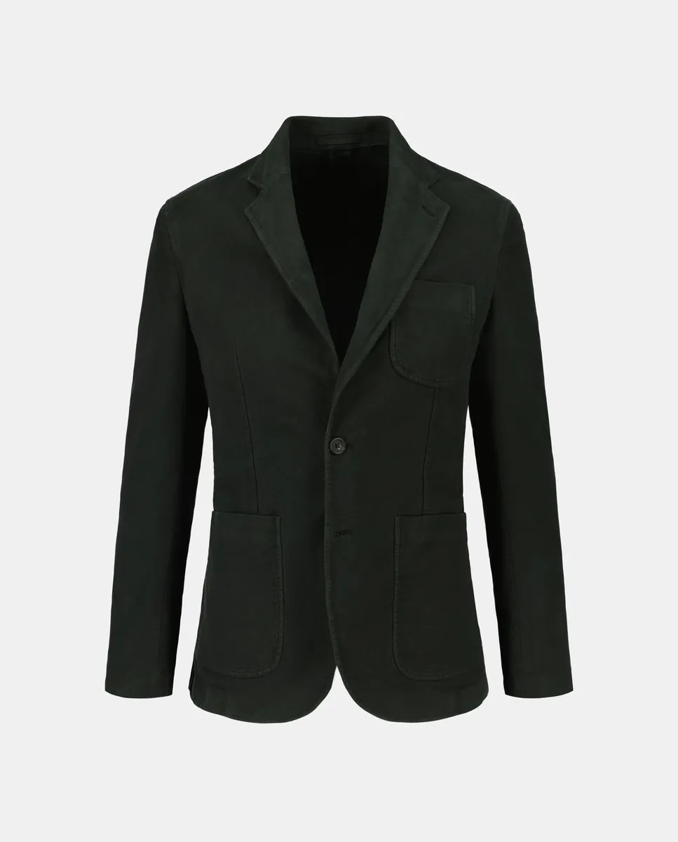 Пуховик из персикового хлопка, одна строчка, две пуговицы, два разреза, накладные карманы, без подкладки.