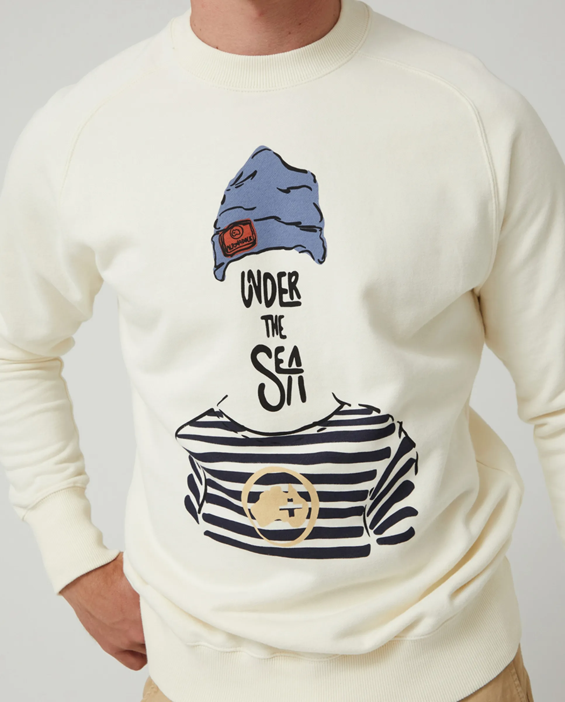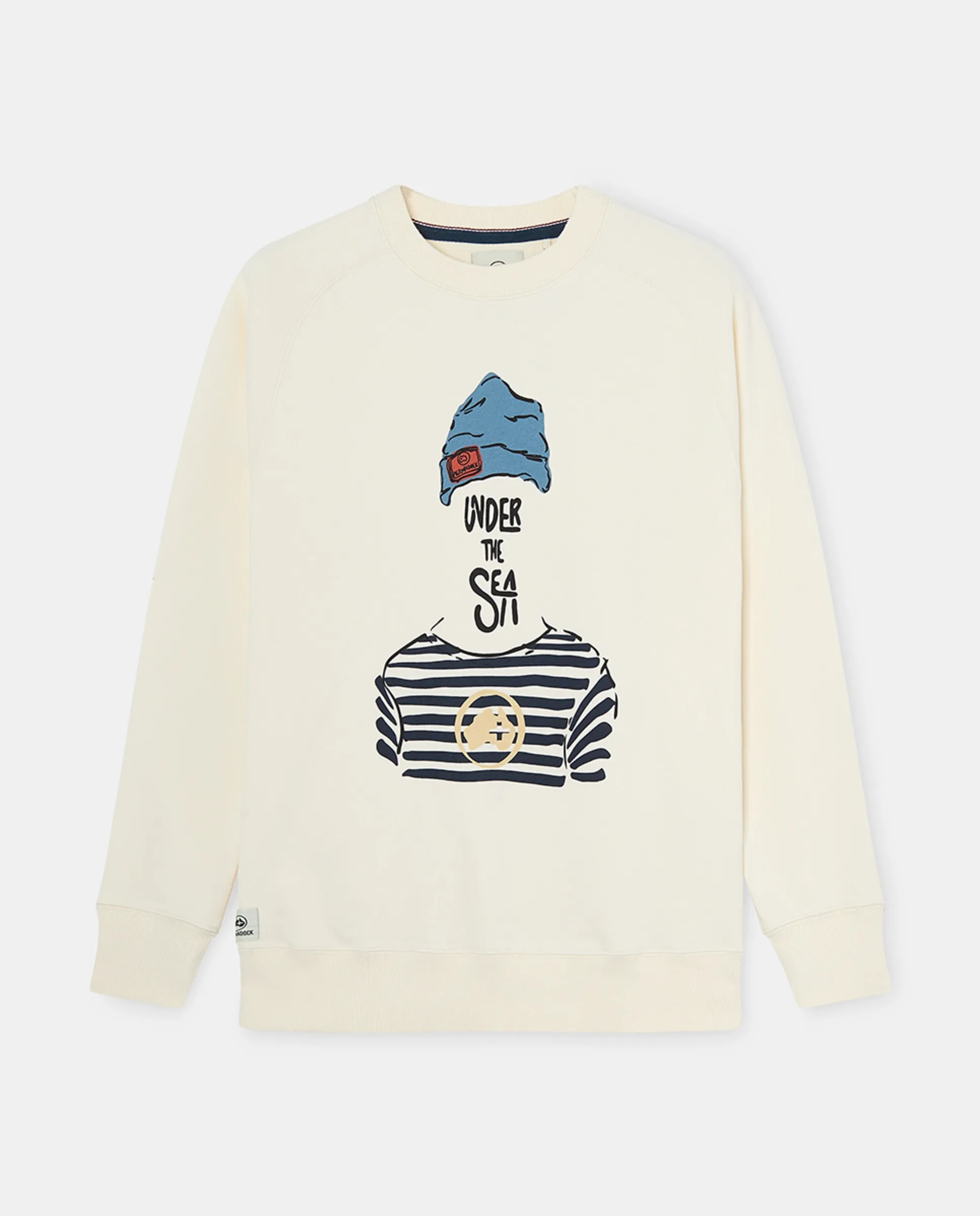 Мужская толстовка без капюшона, приталенного кроя цвета слоновой кости.