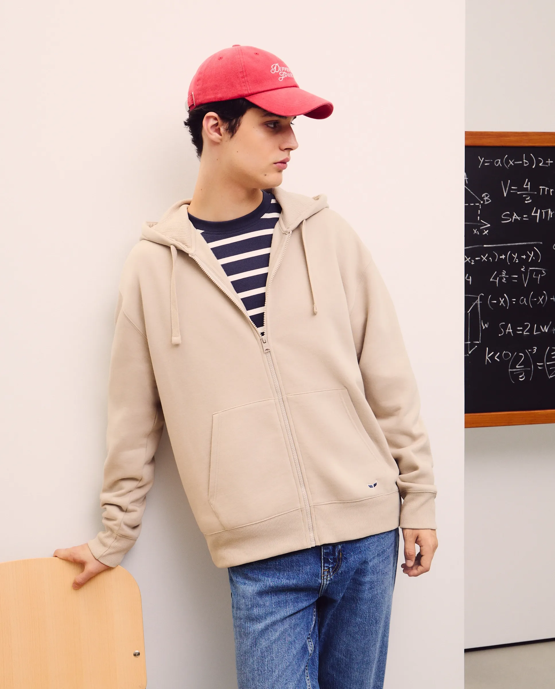 Мужская открытая толстовка с капюшоном и застежкой на молнии. Хлопок с начесом внутри. Свободный крой, более расслабленный стиль с широкими плечами.