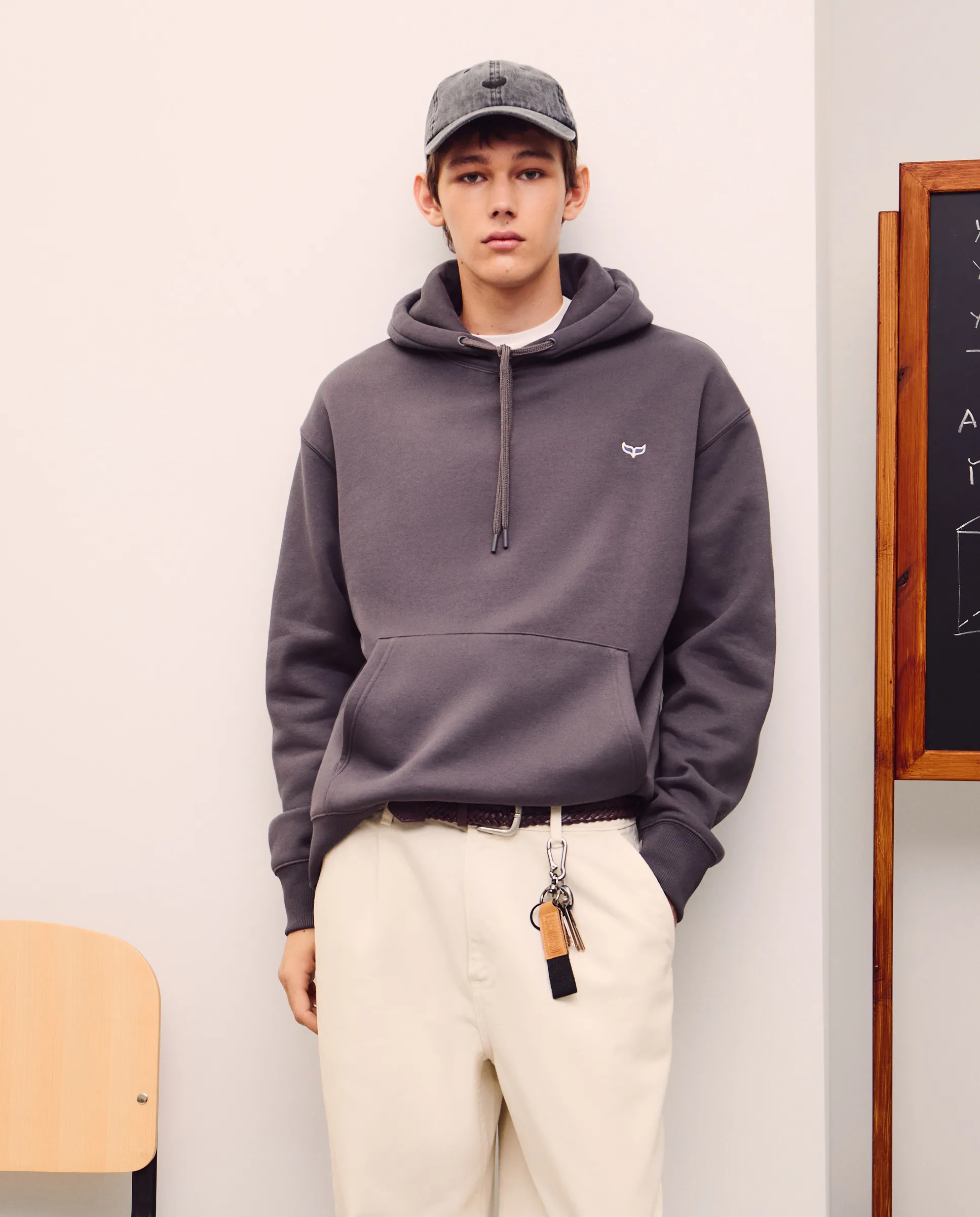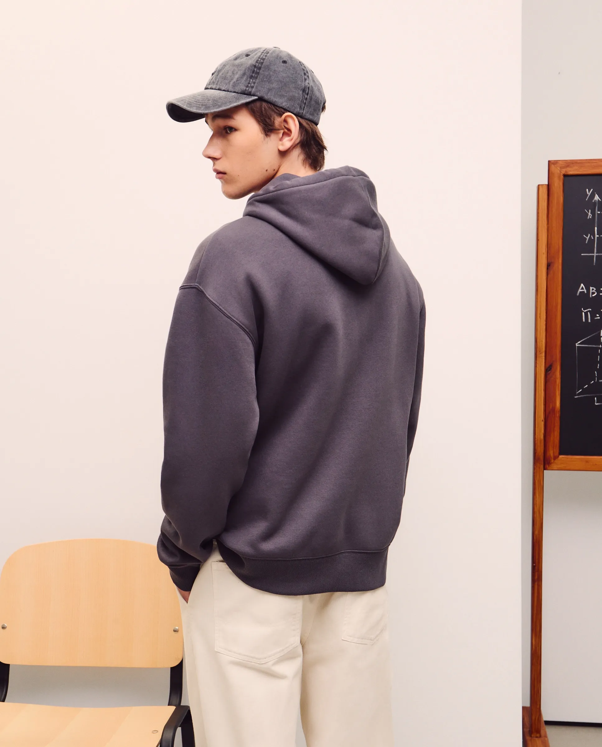 Мужская худи с однотонным капюшоном и шнурком в капюшоне. Внутренний хлопок с начесом. Паттерн relaxed, более расслабленный крой с более свободными плечами.