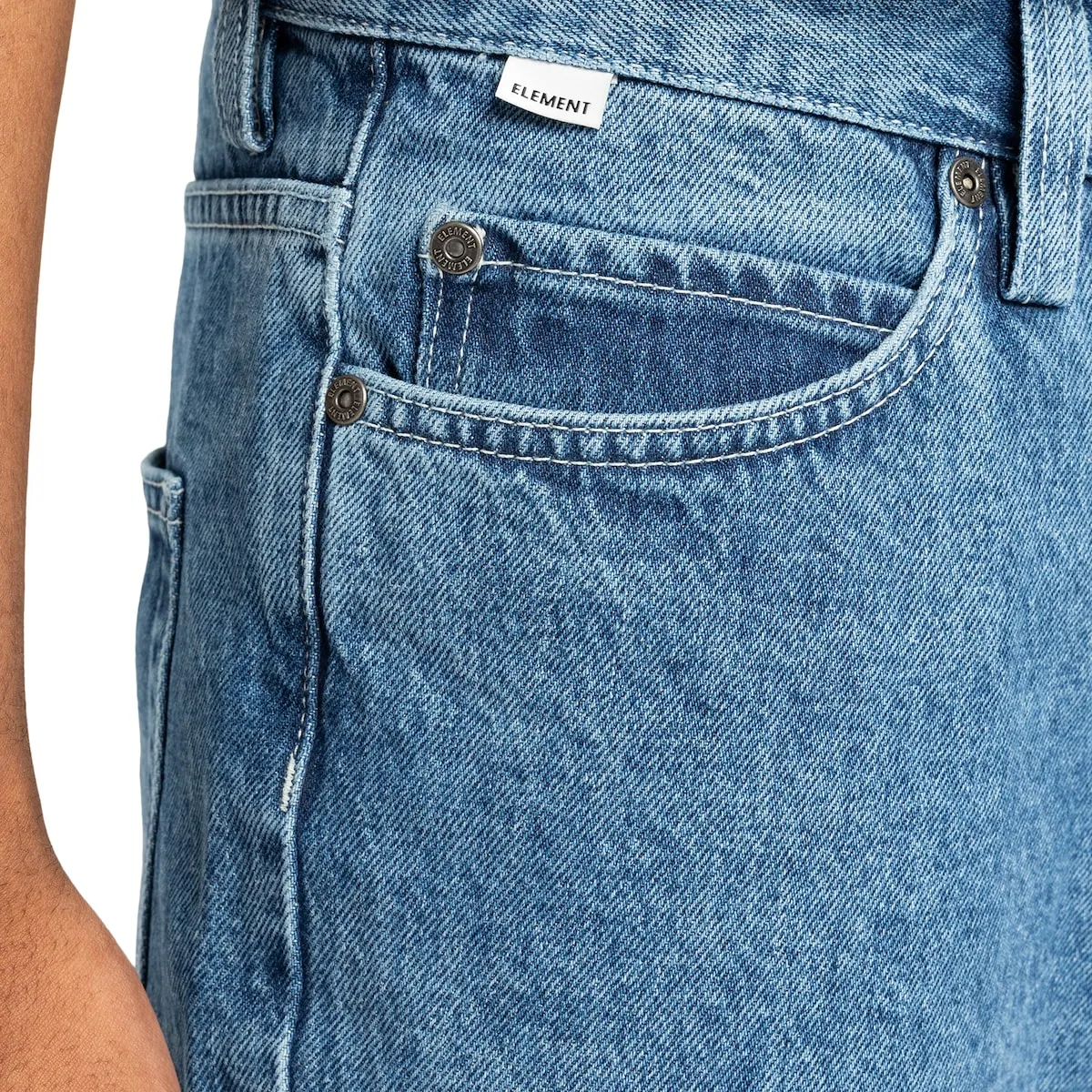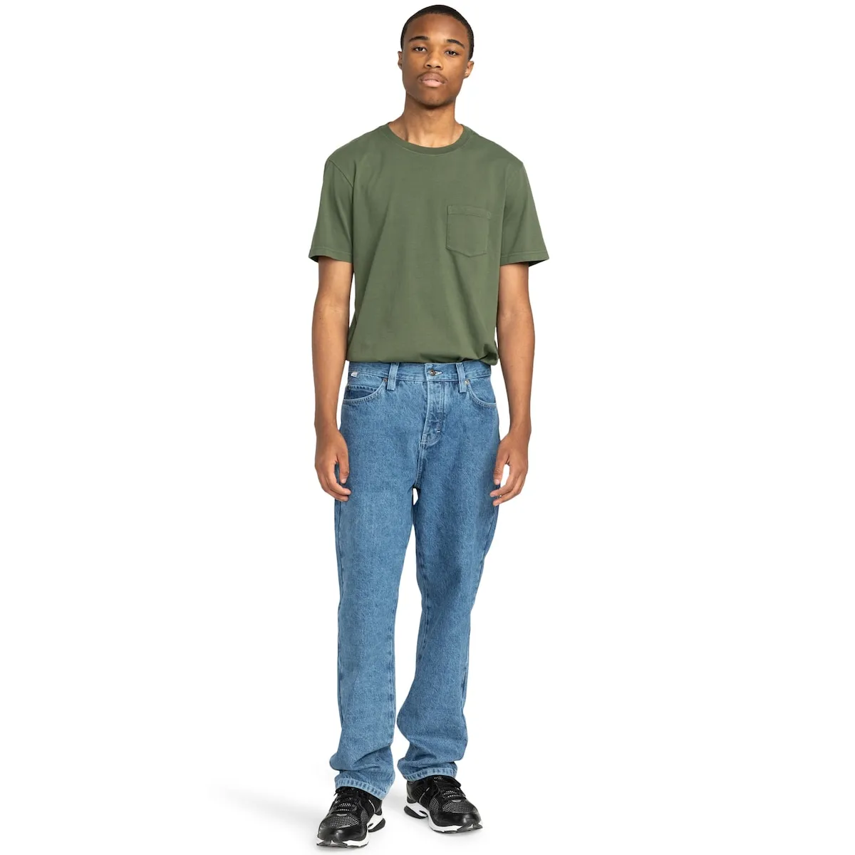 Джинсы для мужчин. Характеристики включают: Коллекция: основная коллекция, Устойчивый по своей природе: переработанный хлопок GRS, Ткань: джинсовая ткань из 75% обычного хлопка и 25% переработанного хлопка [13 унций], Фасон: слегка расклешенный, Талия: фиксированная талия, Застежка: молния с кнопкой, Высота посадки: нормальная, Фасон штанин: расклешенные штанины, Карманы: пять карманов, Бренд: замшевая нашивка и подвеска с тканевым ярлыком.