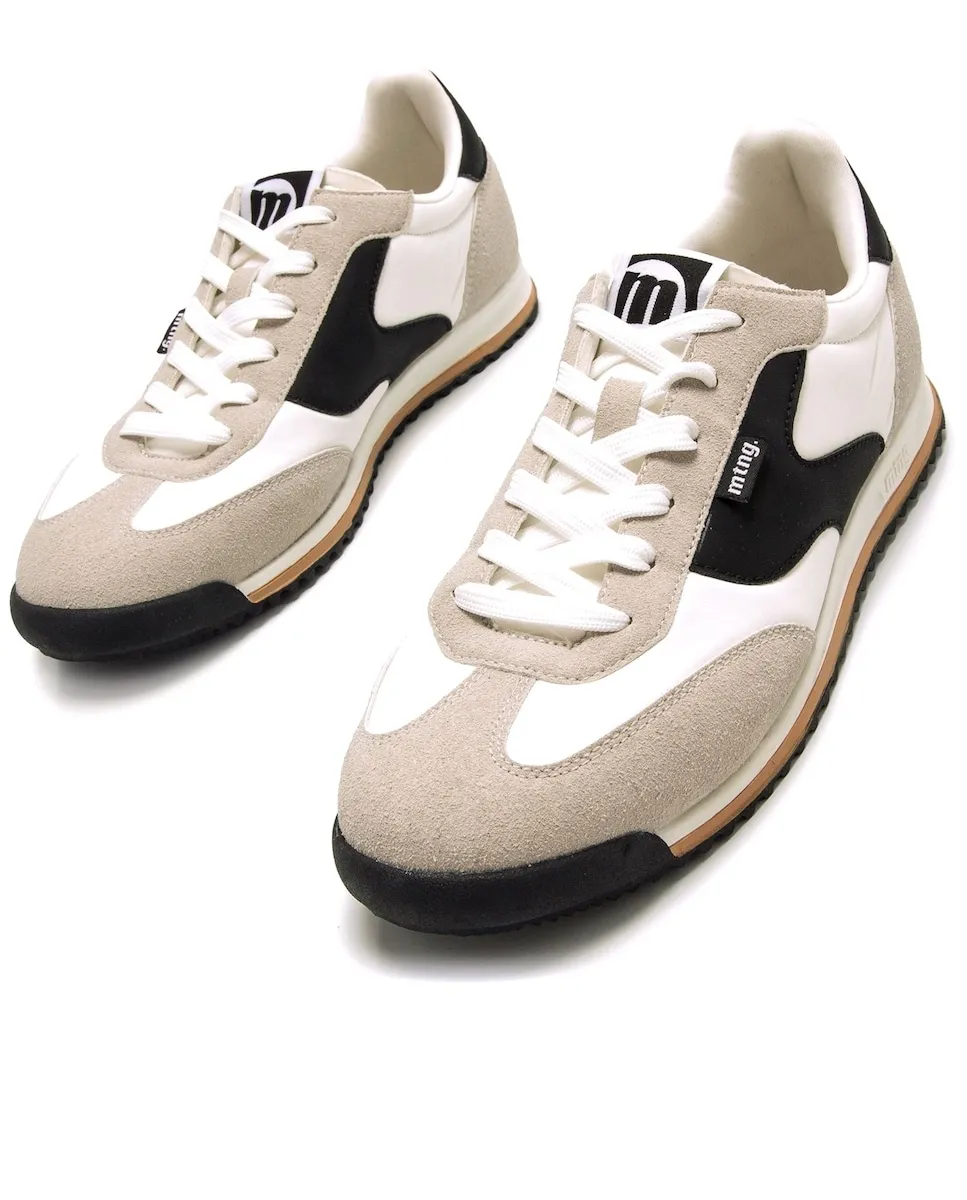 Классические кроссовки mtng, напоминающие о обуви для бега 70-х годов, сочетают в себе контрастные панели, придающие динамичный и вне времени вид. Резиновая подошва с зубчатым профилем обеспечивает хорошее сцепление, в то время как усиленный носок и шнуровка гарантируют комфортную и надежную посадку. Включая стельку толщиной 4 мм с технологией Starfit, эти кроссовки предлагают мягкую и удобную амортизацию. Их пена Comfort Foam обеспечивает дополнительную подушечку, идеально подходящую для длительного комфорта при каждом использовании.