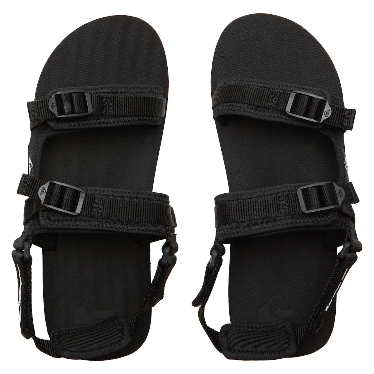 Сандалии для мужчин. Характеристики включают: Верх: полностью регулируемый верх из водонепроницаемого неопренового материала с съемным ремешком на пятке, Промежуточная подошва: двойная по плотности EVA-подошва для большего комфорта и поддержки, Поддержка анатомического свода стопы, Внешняя подошва: прочная резина с шипованным узором логотипов Quiksilver для лучшего сцепления. Регулируемый верх в различных ширинах. И другие характеристики: EVA-подошва, обработанная лазером для повышения устойчивости к скольжению.
