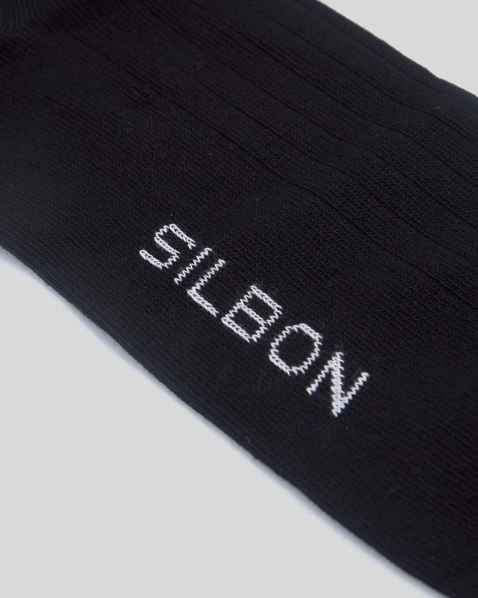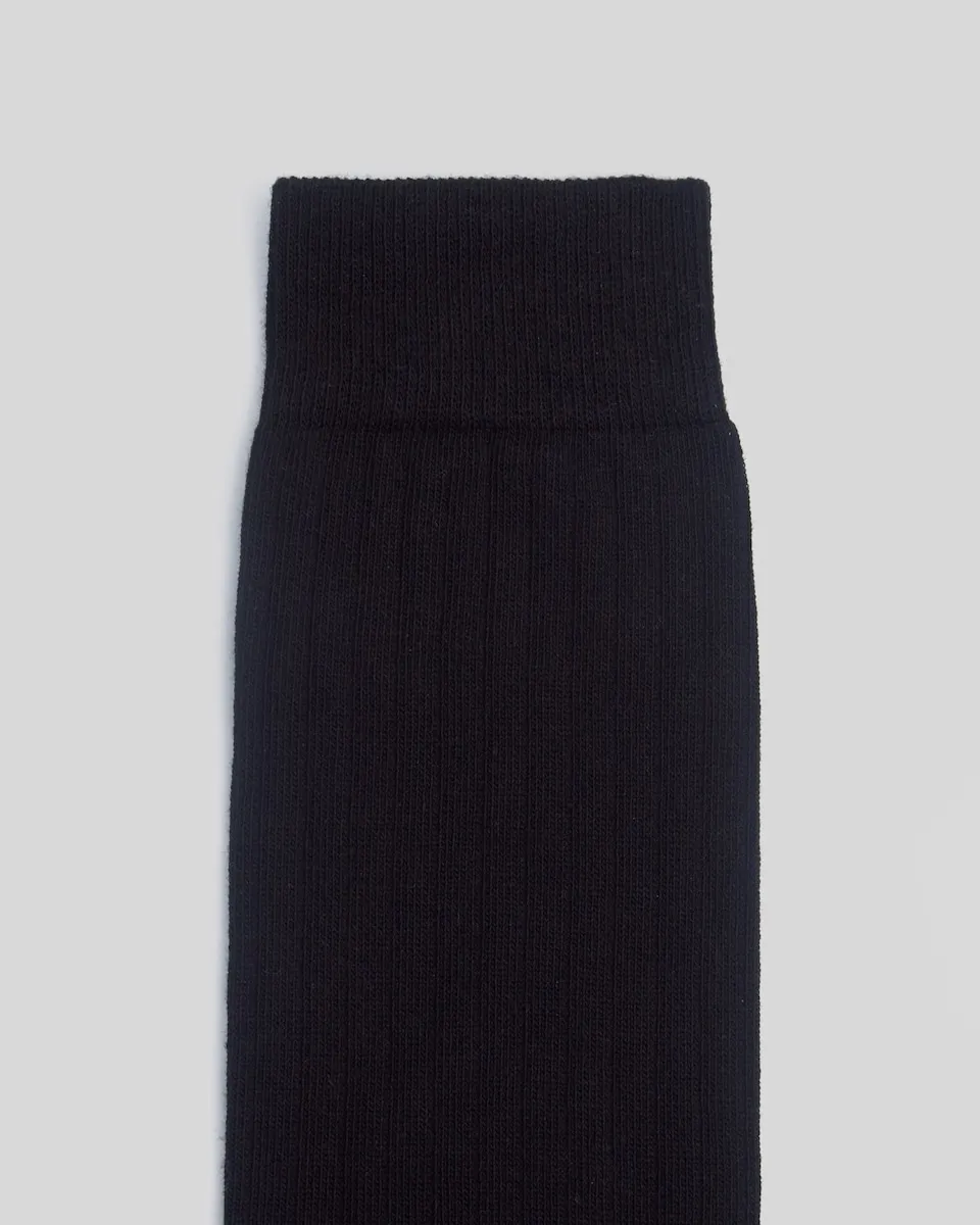 Чёрные носки, сделанные из смеси хлопка. Высота носка составляет 50 см. Изготовлено в Португалии.