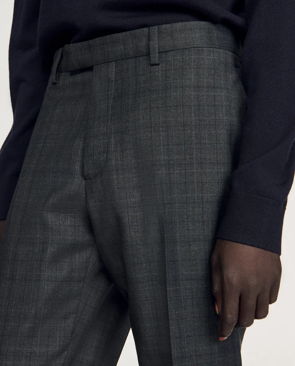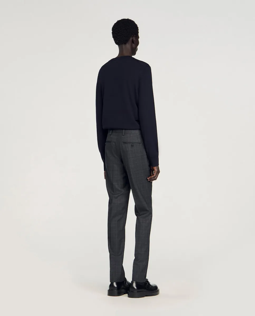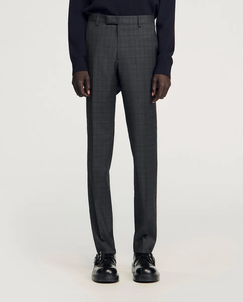 Классические клетчатые шерстяные брюки с боковыми карманами и карманами на задней части. Шершавая костюмная брюки Sandro для мужчин. Клетчатый узор. Классический крой. Молния. 2 передних кармана. 2 кармана на задней части.