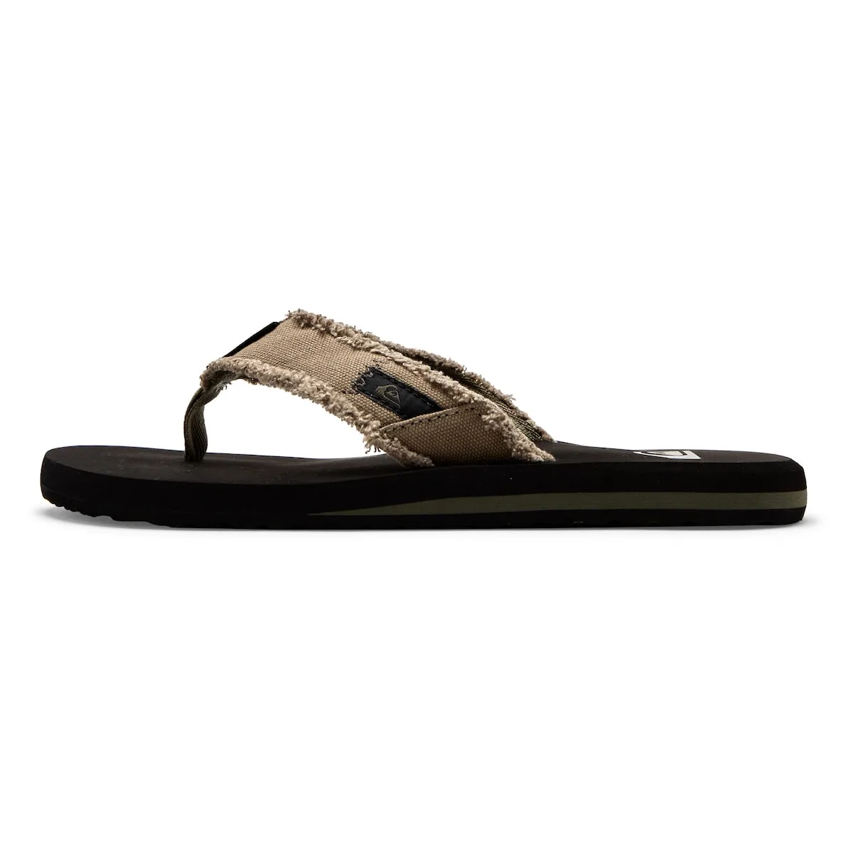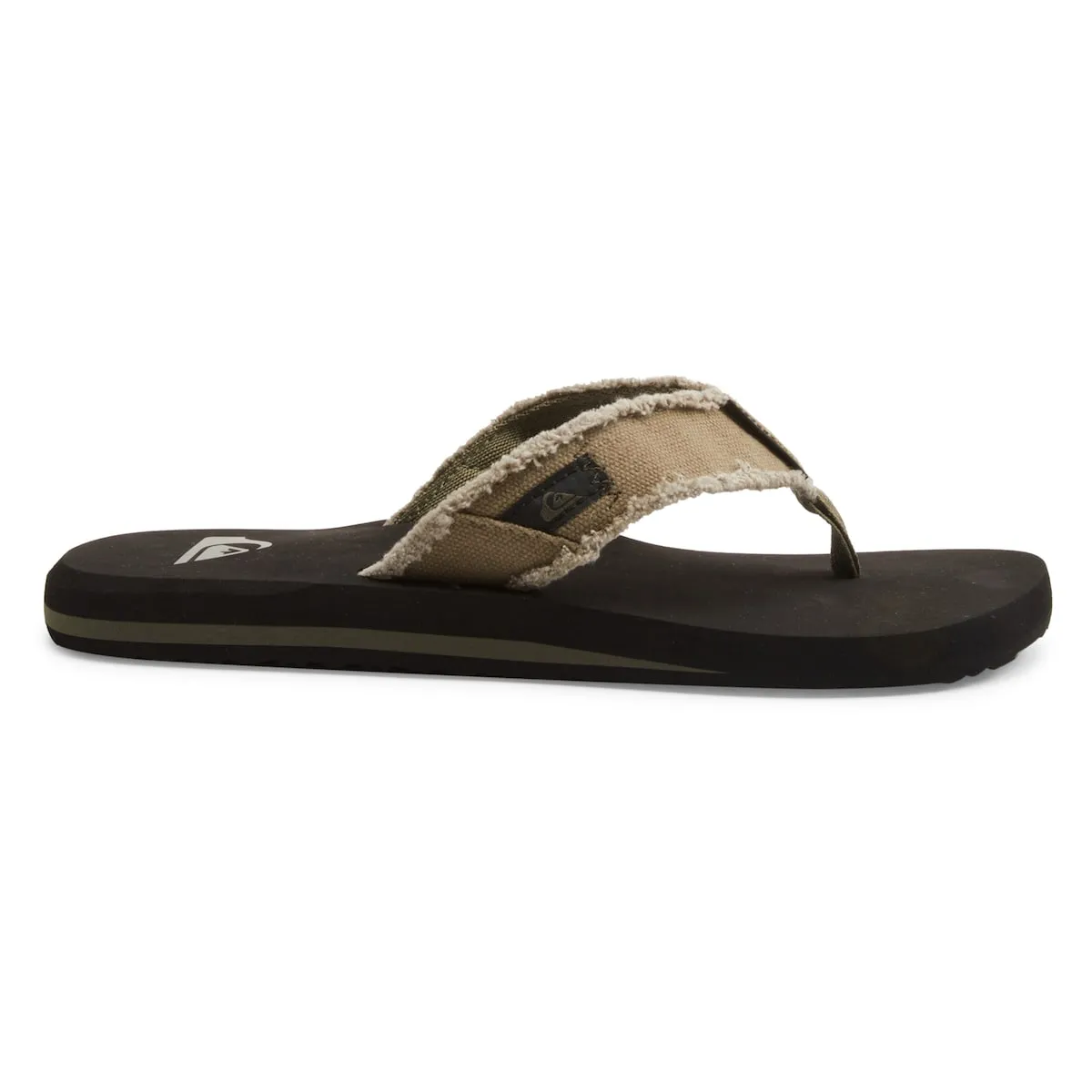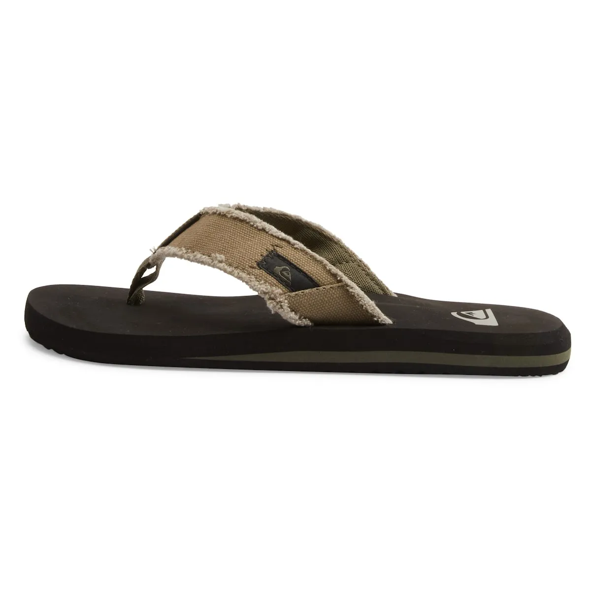Шлепанцы для мужчин. Особенности включают: верх из стёртого холста с обрезанными краями, ремешок с подкладкой из мягкого полиэстера, двойной межпальцевый разделитель, промежуточная подошва двойной плотности для лучшей поддержки и лёгкого комфорта, поддержка анатомического свода стопы и наружная подошва с логотипами в виде шипов для лучшего сцепления.