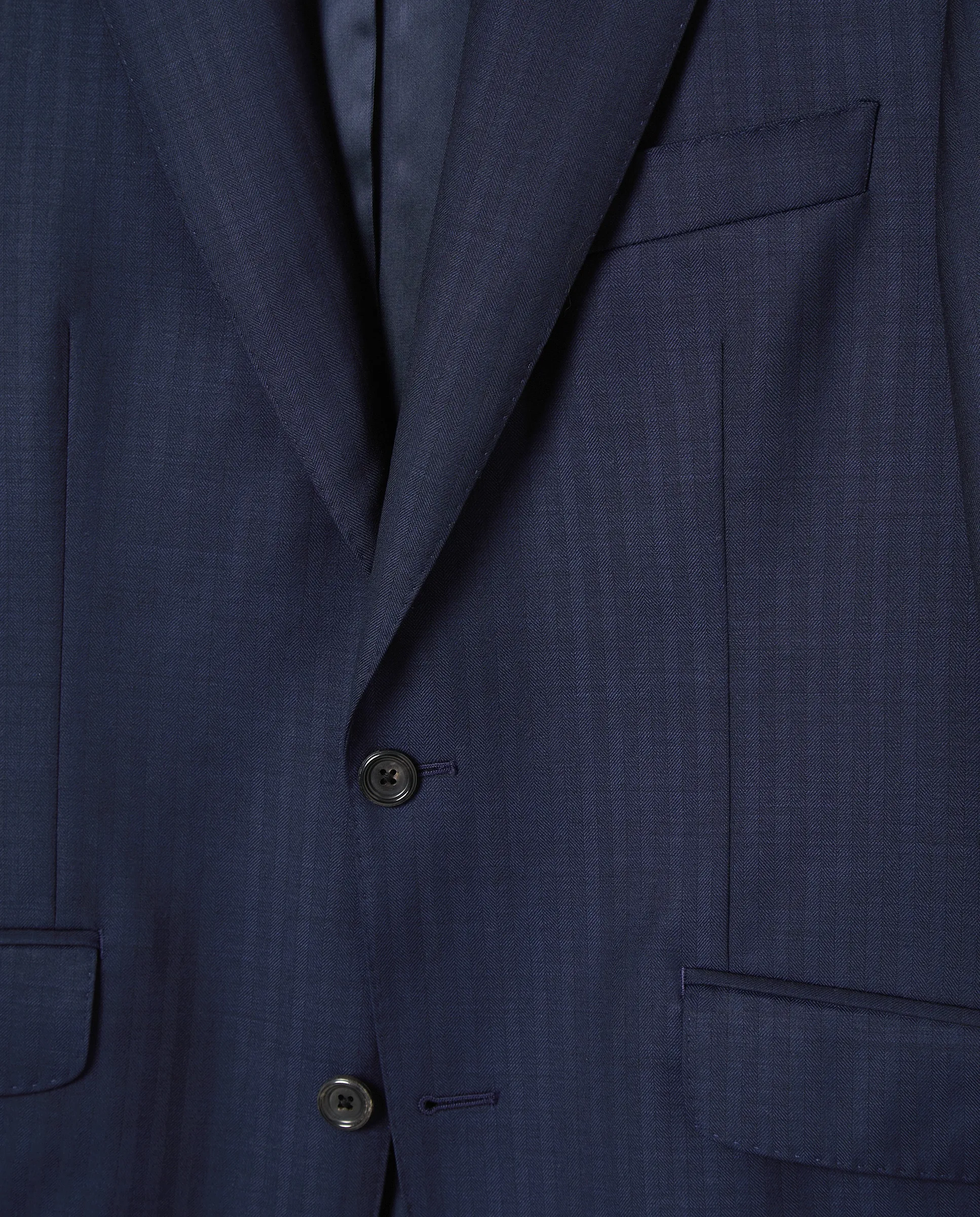 Носил морской дипломатический костюм с полоской, одну линию, две пуговицы, два разреза, наклонные карманы, брюки без складок и французский карман.