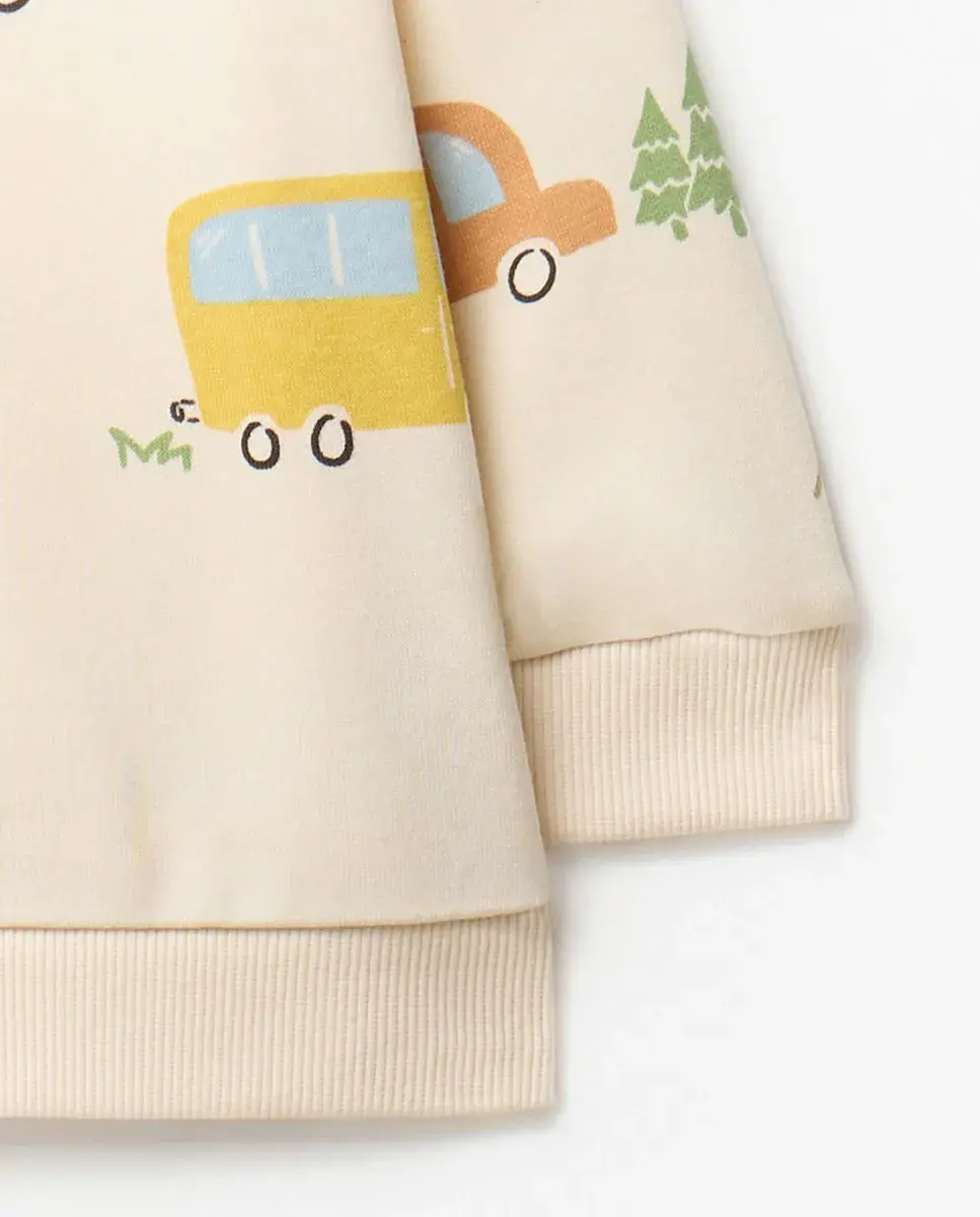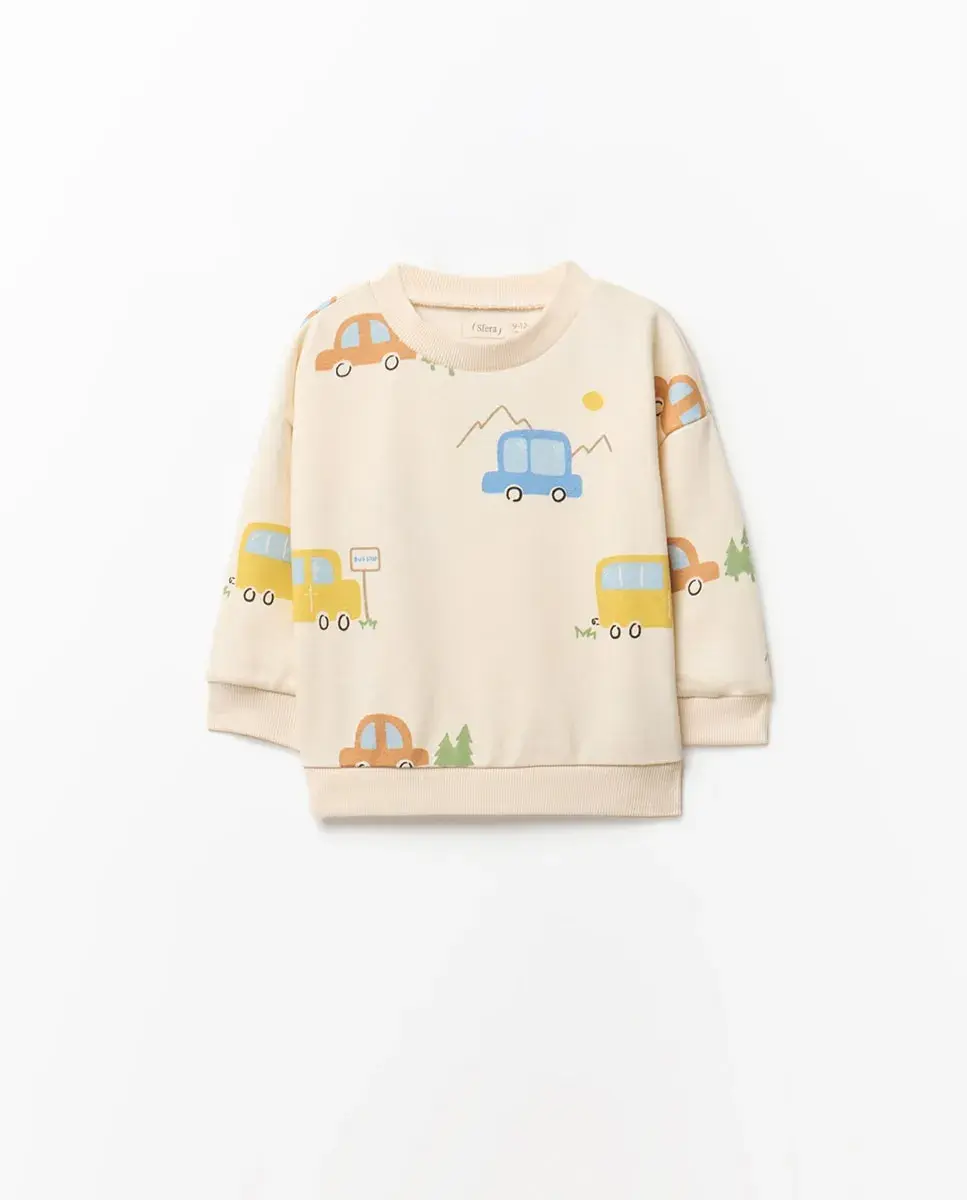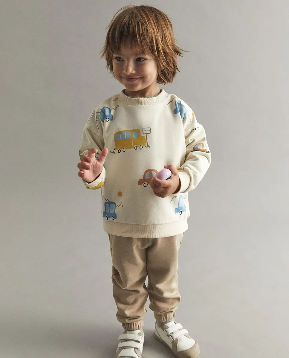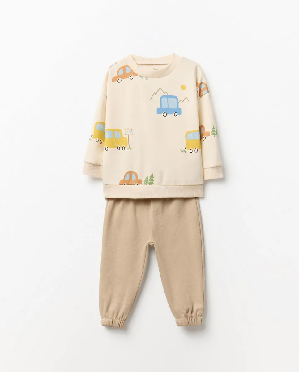 Комплект спортивного костюма с принтованной толстовкой и однотонными длинными брюками