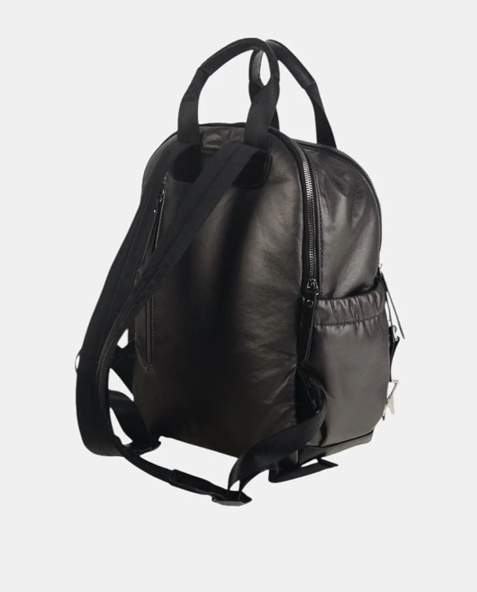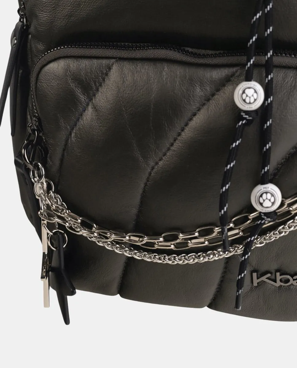 Сумка в металлическом свинцовом цвете, модного оттенка, из нейлона с мягким эффектом и стеганой отделкой с диагональным рисунком на переднем кармане с молнией, из которого выходят яркие металлические цепочки, которые проходят по передней части, придавая рок-н-ролльный стиль и дополняясь забавным звездным брелоком для создания фантазии. Также имеется верхняя молния и задний карман на молнии. Элементы с двумя верхними ручками для универсальности и удобства, а также регулируемые задние ручки. Декор в виде подвески на шнурке с бусинами. Непринужденный дизайн, который становится идеальным аксессуаром как для непринужденных выходов, так и для более элегантных нарядов.