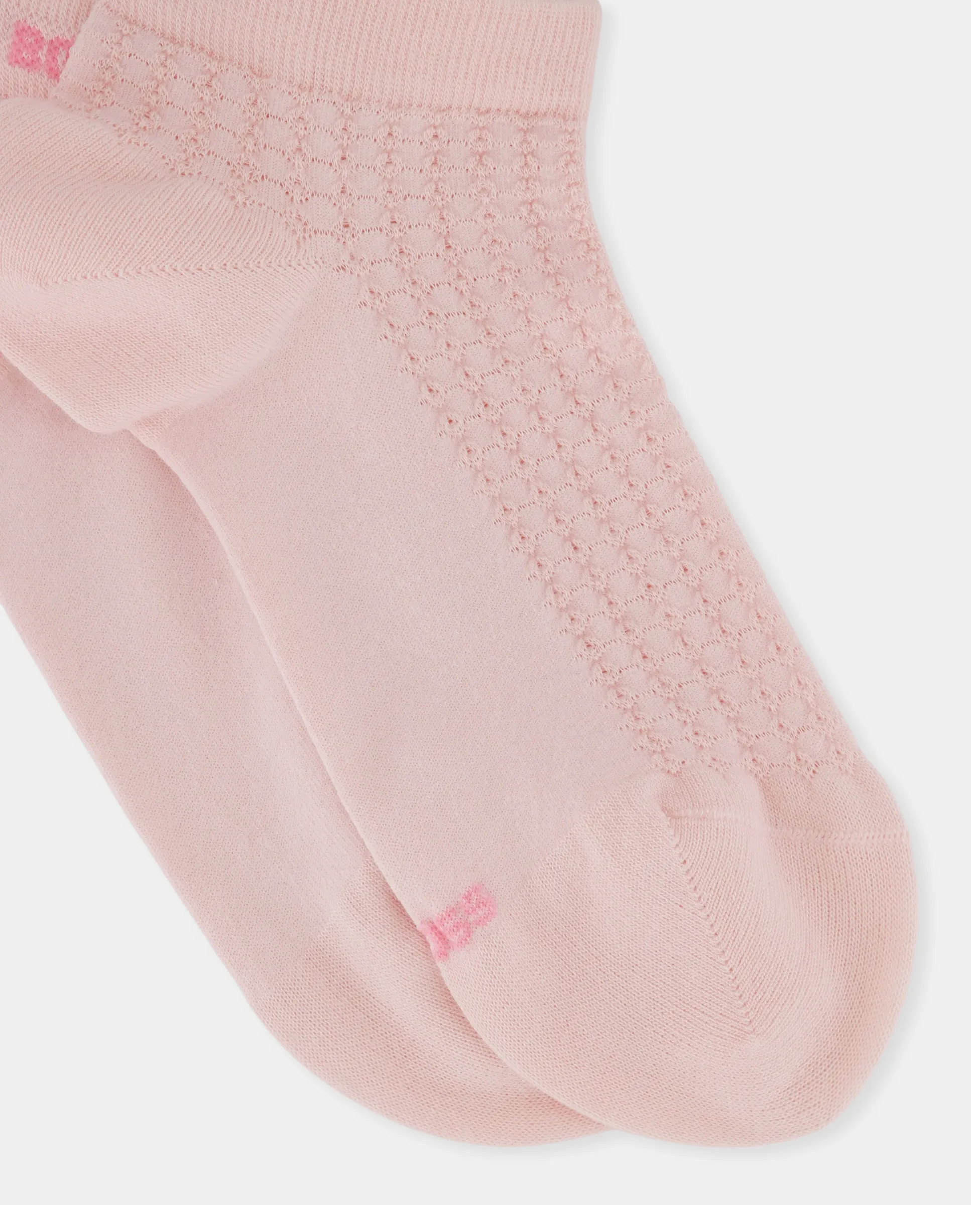 Комплект из двух коротких носков однотонного цвета длиной 8 см, изготовленных из мягкой вискозы и бамбука, структура вдохновлена микрошнурком с падением иглы розового цвета.