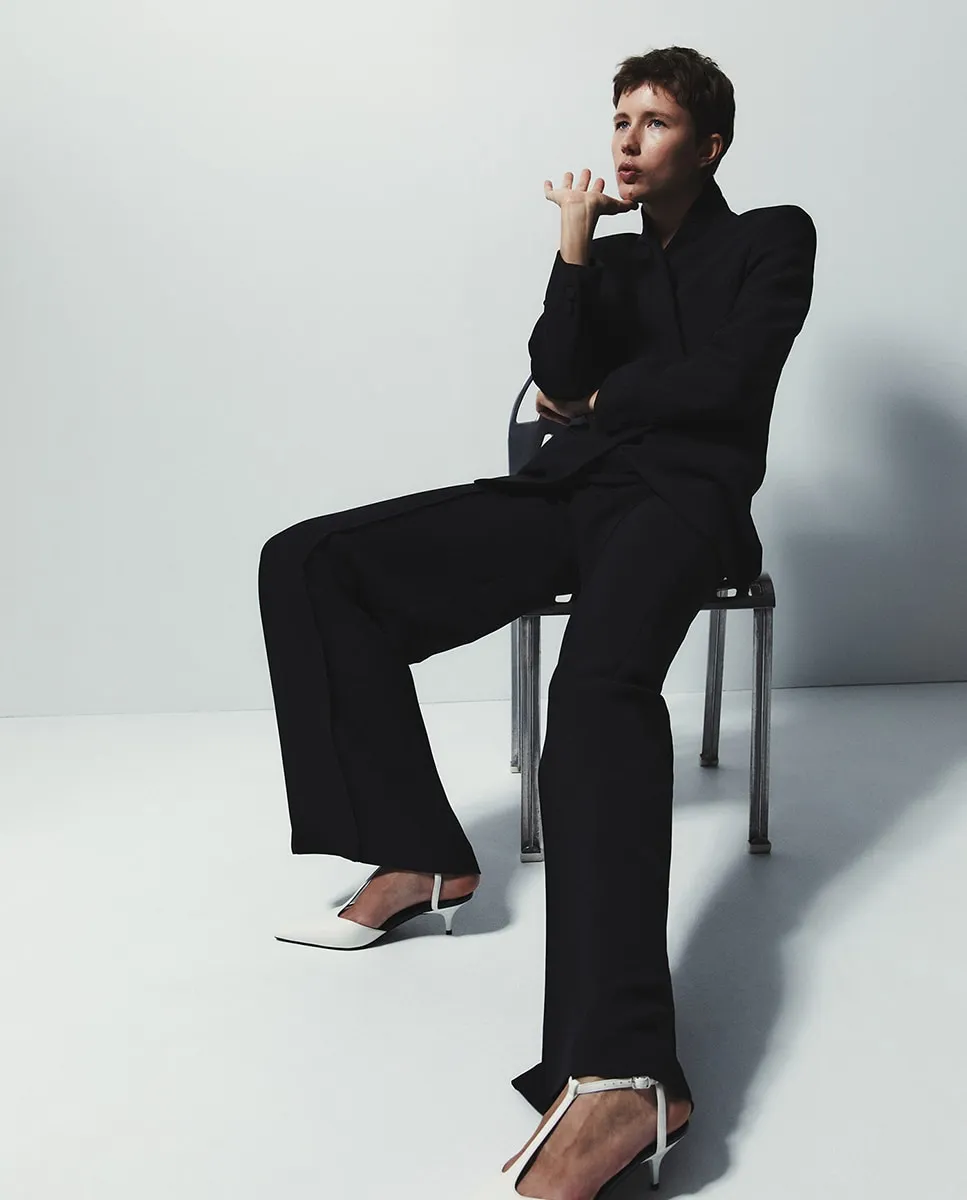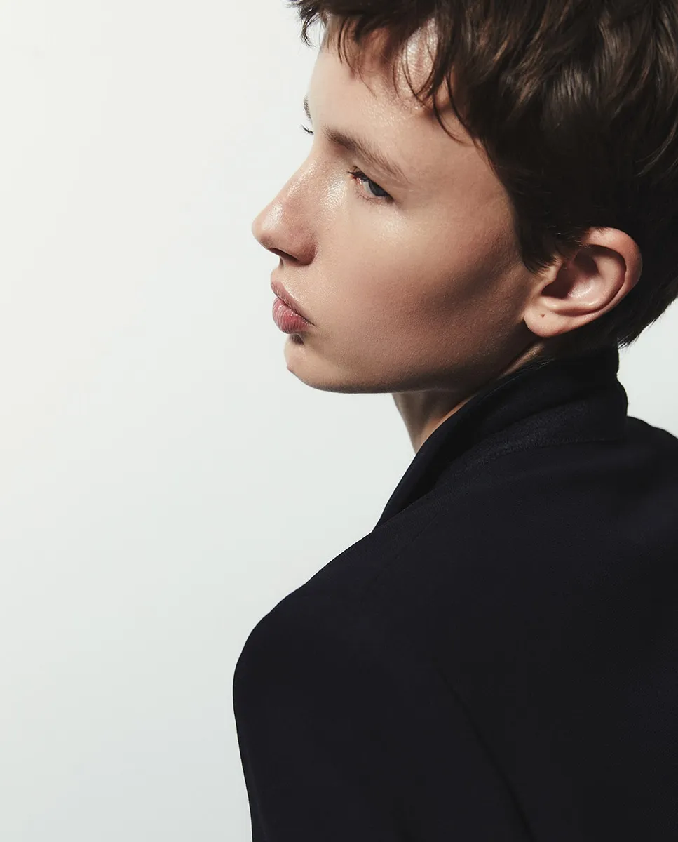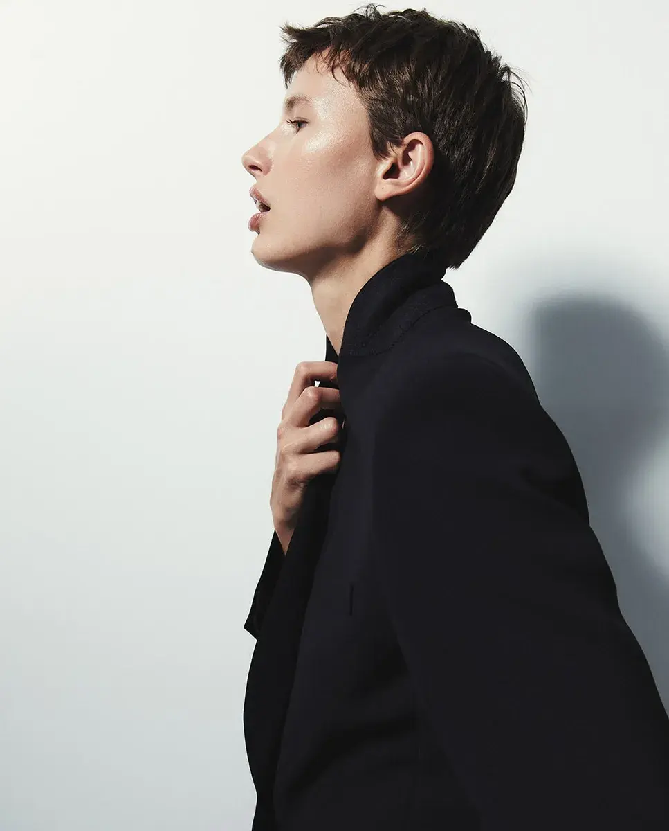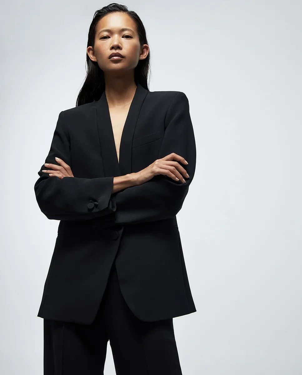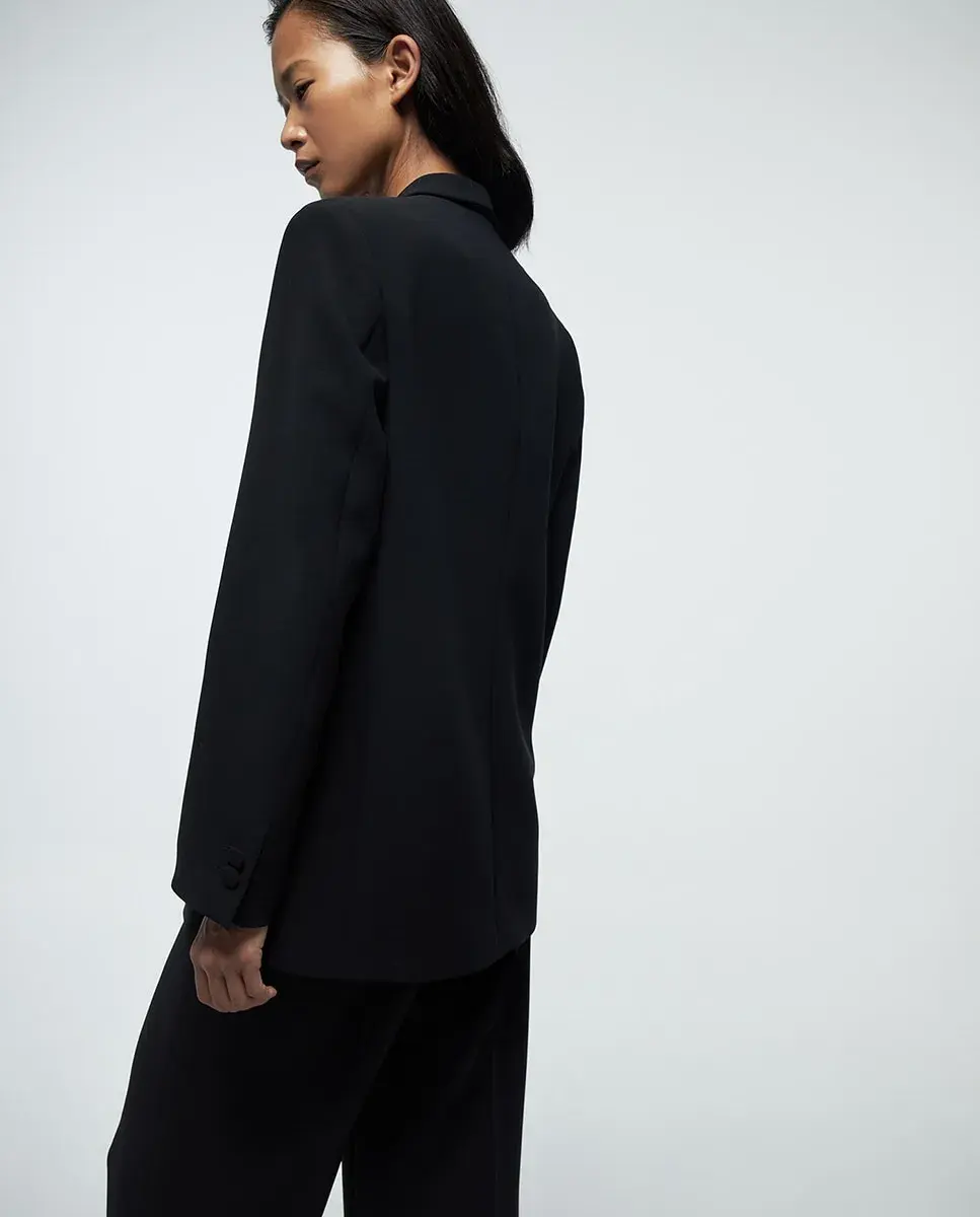 Пиджак с длинными рукавами и лацканами. Передний застежка на кнопку. Передние карманы.