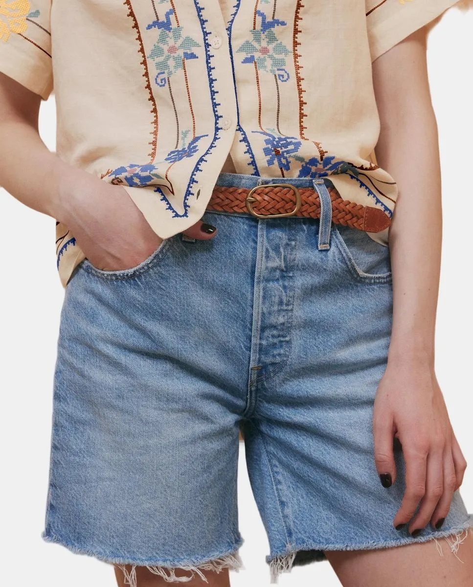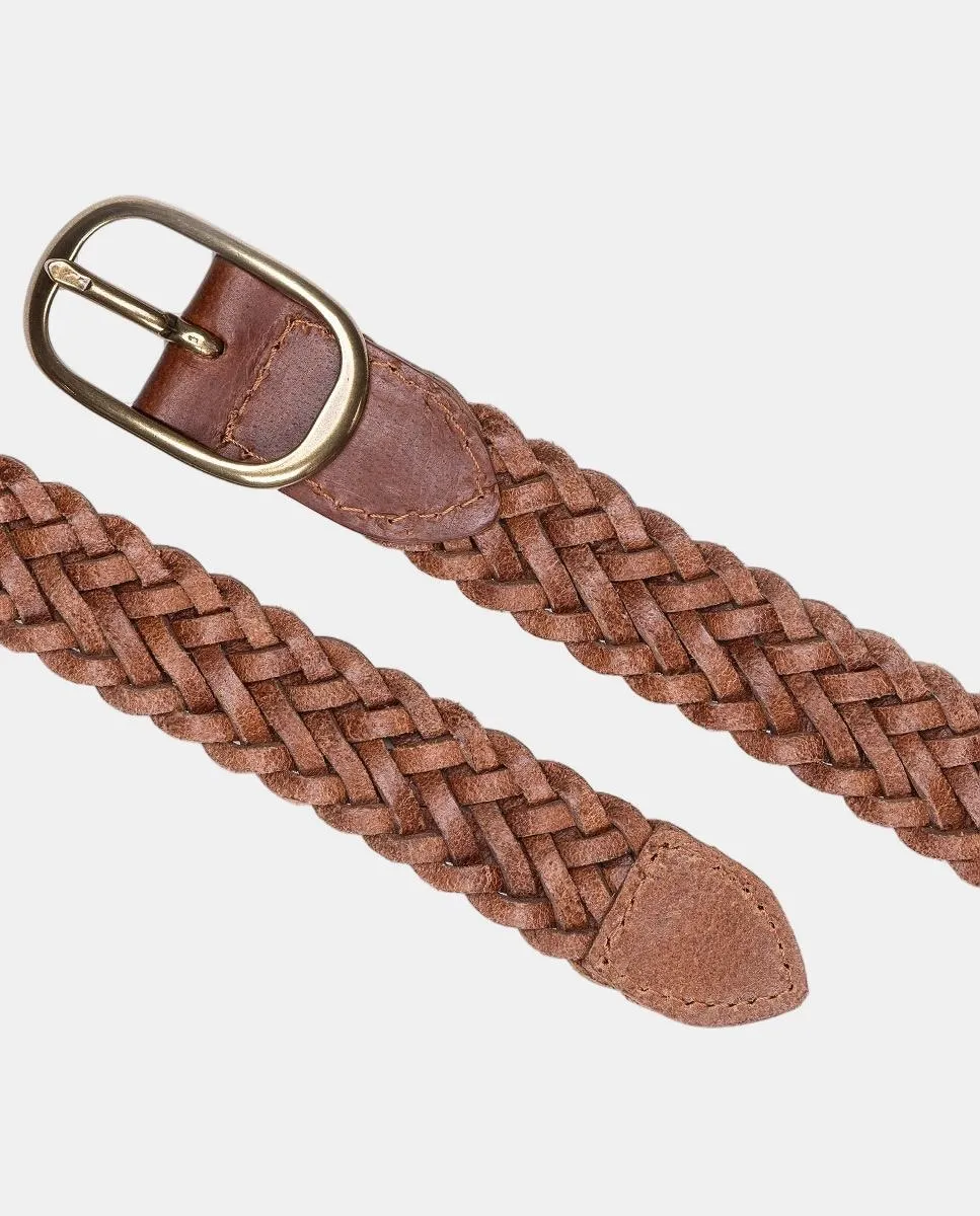Женский плетеный ремень из 100% телячьей кожи. Пряжка с золотистым отделкой.