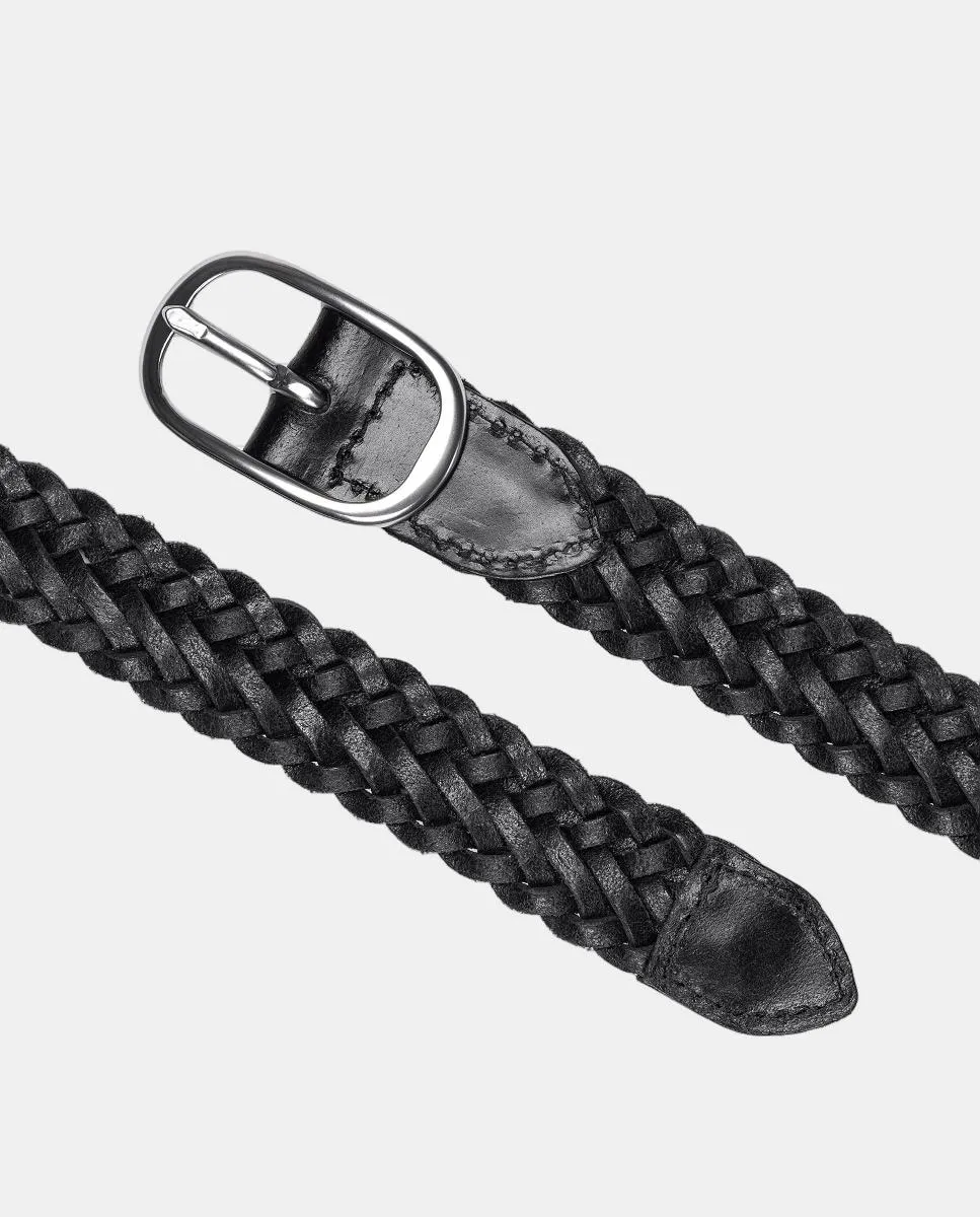 Женский ремень из плетеной 100% коровьей кожи. Пряжка с серебристой отделкой.