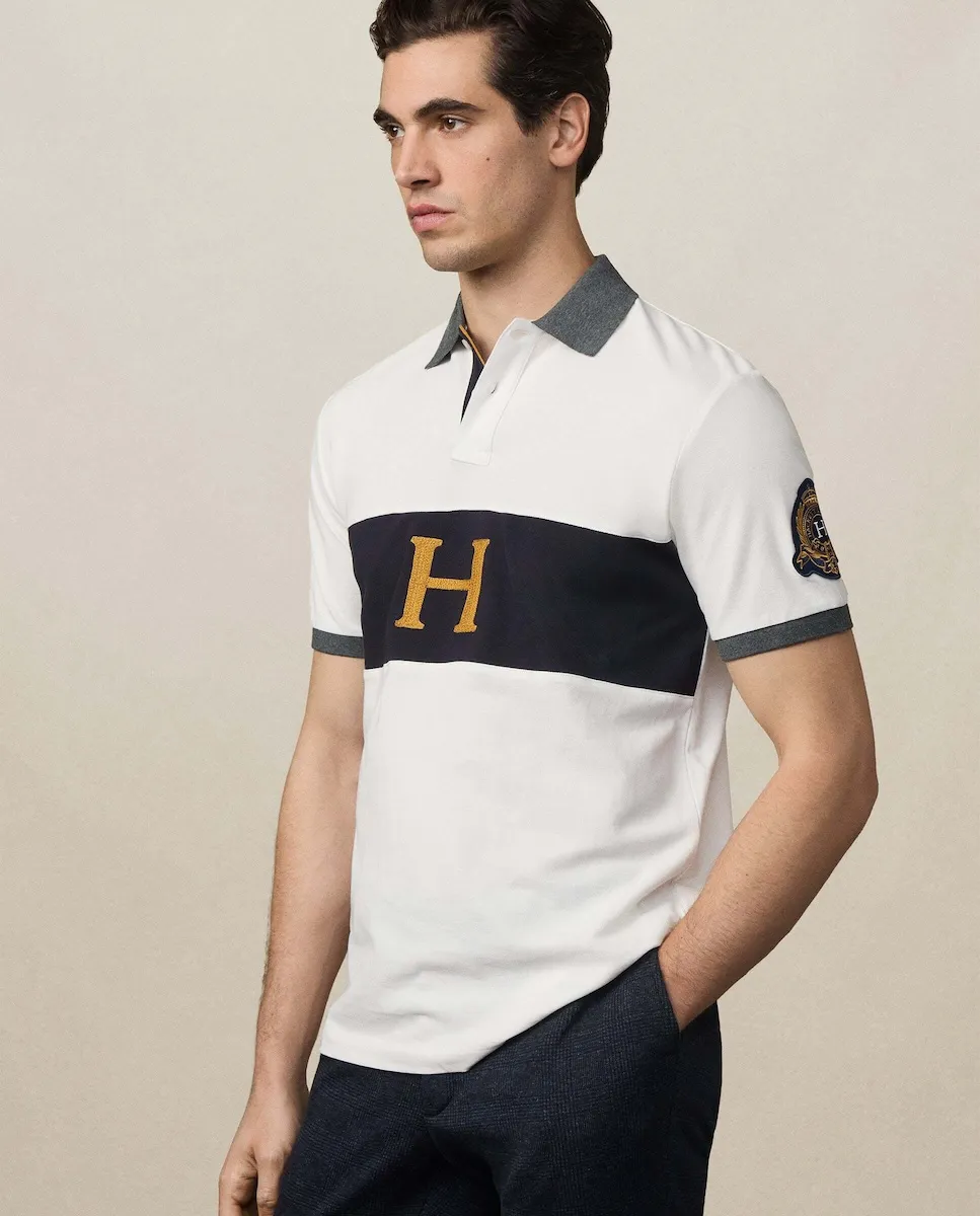 Поло с гербовой нашивкой Heritage Hackett, кремовый
