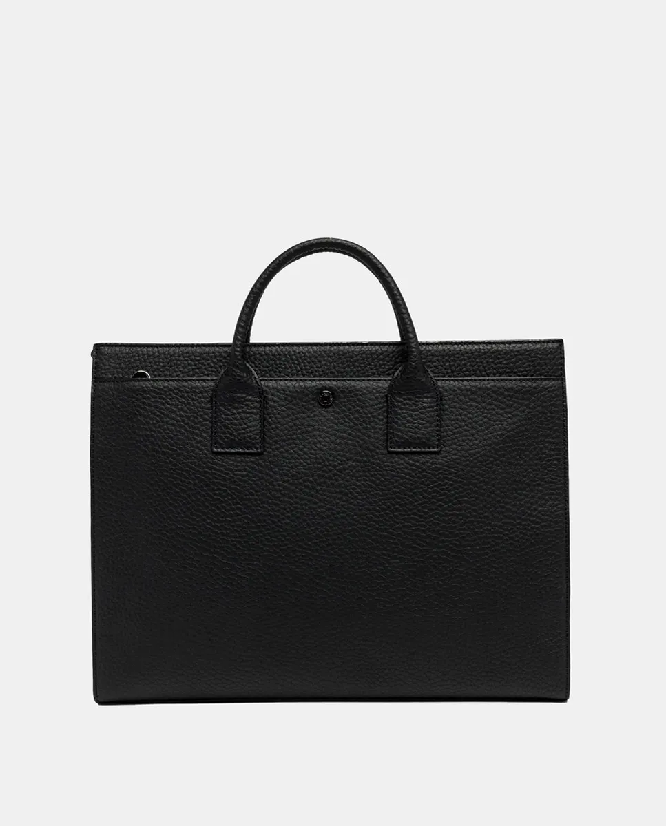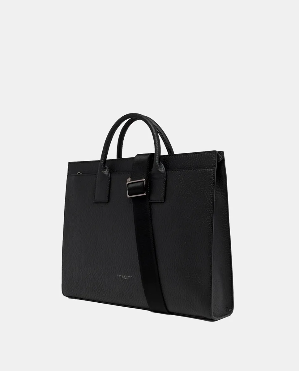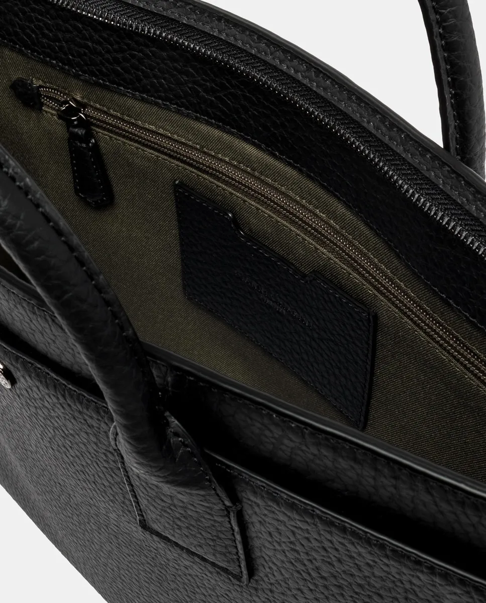 Удобный и практичный портфель, идеально подходящий для мужчины, который любит интерпретировать каноны вне времени в современном ключе. Изготовлен из черной кожаной кожи с максимальной текстурой, имеет основное отделение на молнии и большой плоский карман спереди с логотипом на заклепке. Две верхние ручки и регулируемый кожаный ремень предлагают различные способы носки этого портфеля, идеального для любого случая.