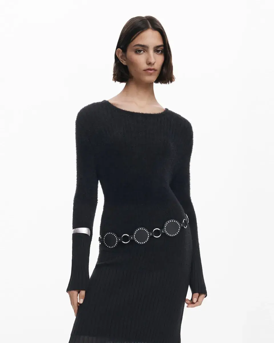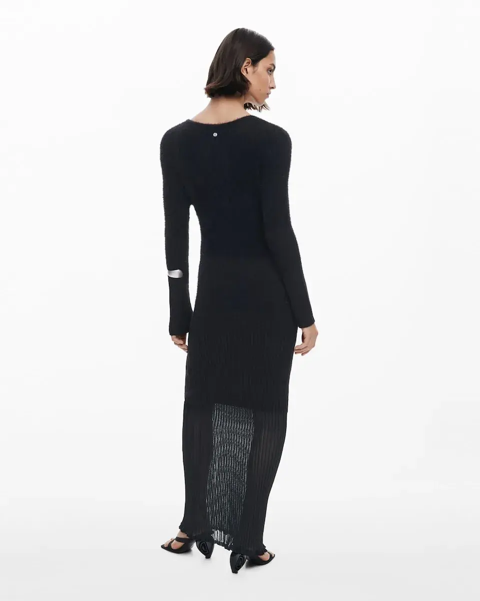 Плотное платье с длинными рукавами и круглым вырезом, с отделкой из мягкого фетра и юбкой с прозрачностью однотонного цвета. Цвет: Однотонный. Крой: Узкий. Рукав: Длинный. Длина: Миди. Полупрозрачная юбка.