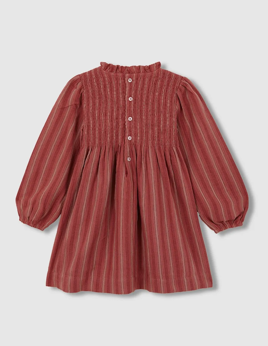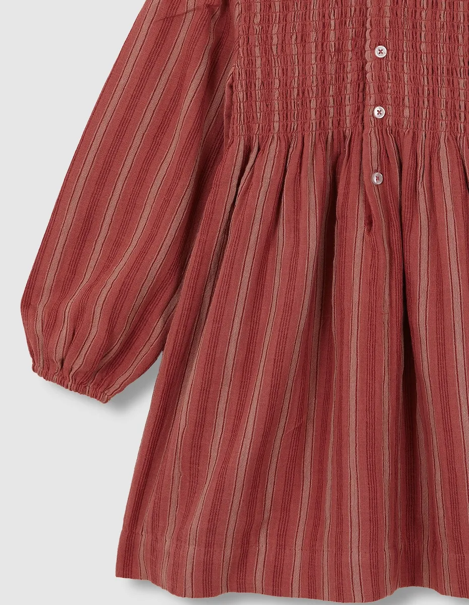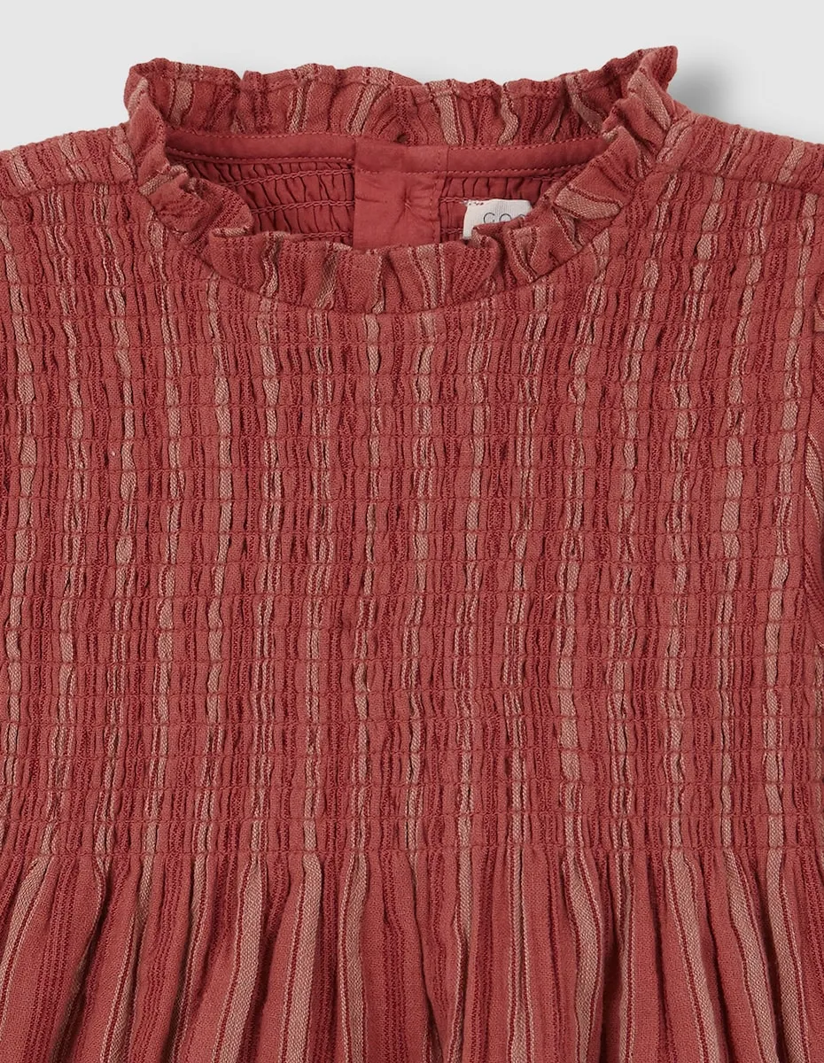 Рубашка в полоску с резинкой на груди, с воротником в складку и длинными рукавами