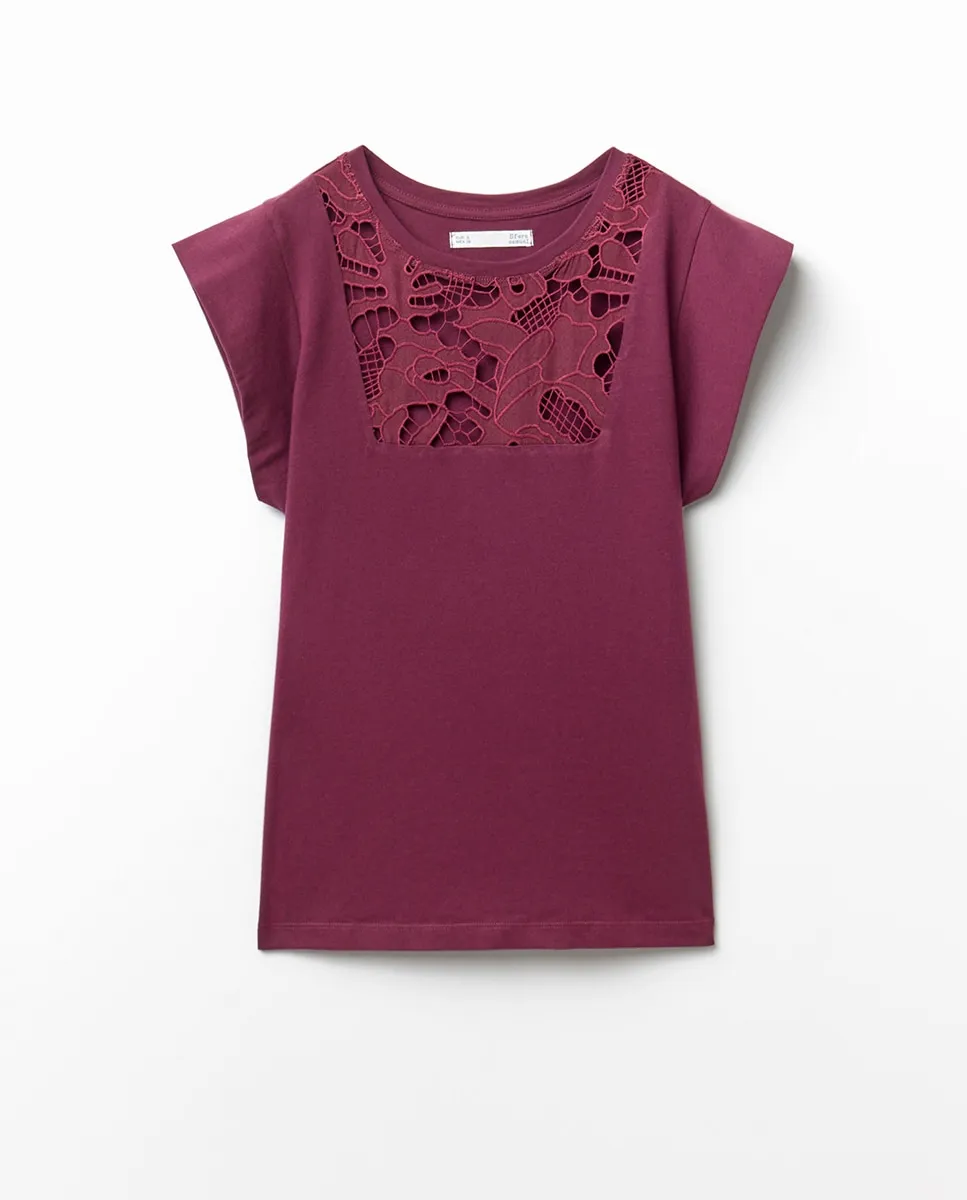 Футболка с коротким рукавом и кружевным элементом на груди. 100% хлопок
