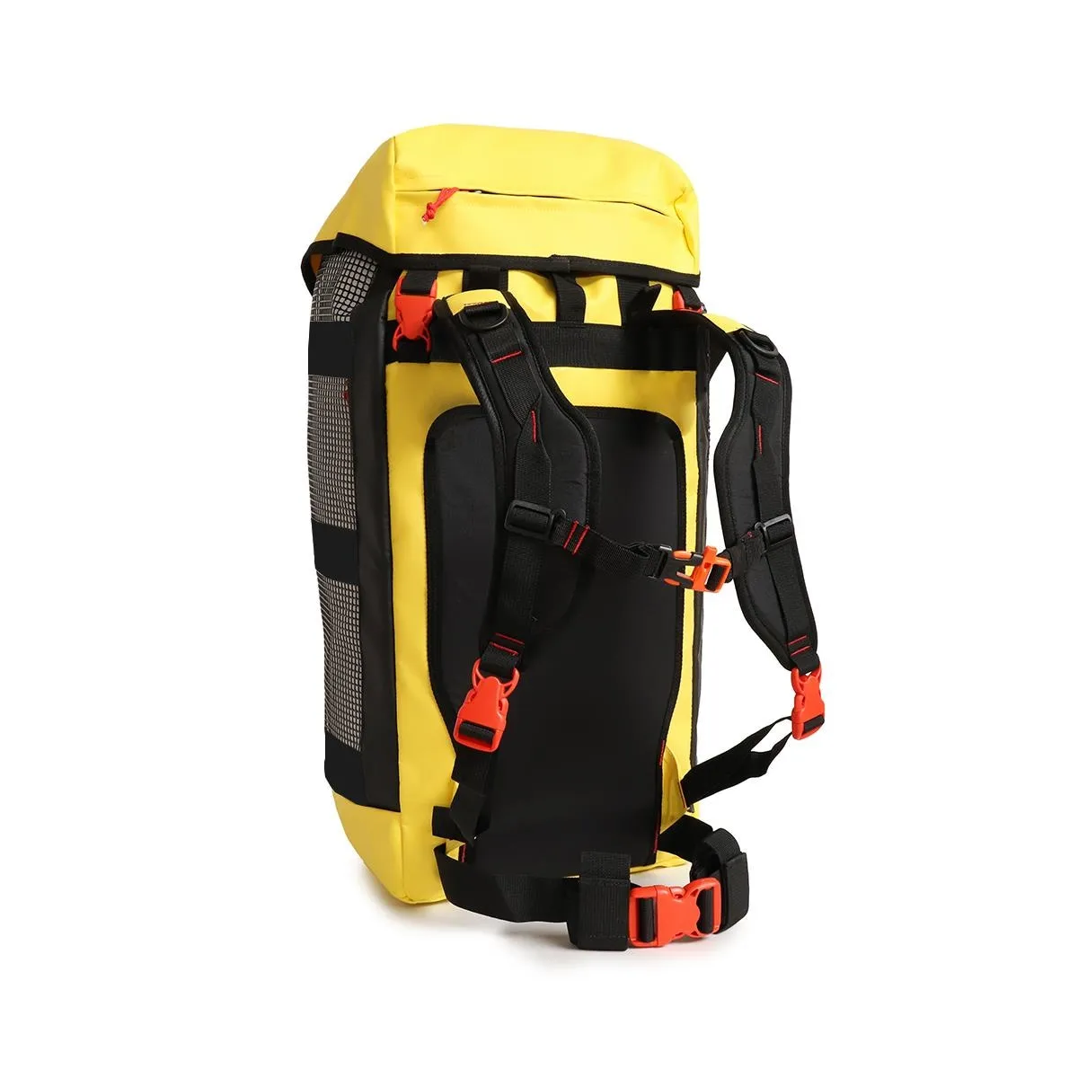 Наш рюкзак для каньонинга объемом 50 литров разработан с учетом комфорта и функциональности. Он оснащен спинкой и плечевыми ремнями с наполнителем, которые обеспечивают отличное удобство даже при тяжелой нагрузке. Он изготовлен из полиэстера 1000D с ПВХ-покрытием, что придает ему исключительную прочность и делает его устойчивым к износу и повреждениям от камней.