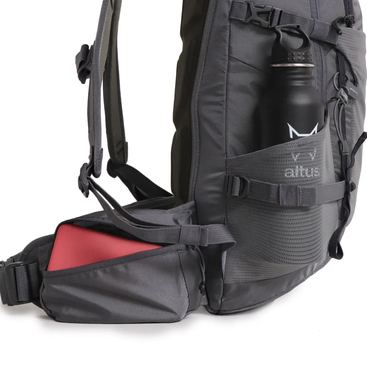 Технический рюкзак с термоформованной спинкой, который позволяет нам выполнять основные активности благодаря легкой ткани, различным отделениям и идеальной посадке на теле. · Внутренний отсек для гидратационной сумки. · Три внешних кармана из биеластичной ткани. · Поясные сумки с карманами. · Термоформованная спинка. · Передний карман и ремни для крепления материала. · Ремни для крепления материала. · Держатель для треккинговых палок. · Передний карман на молнии. · Ремни для регулировки нагрузки. · Регулировка по груди.