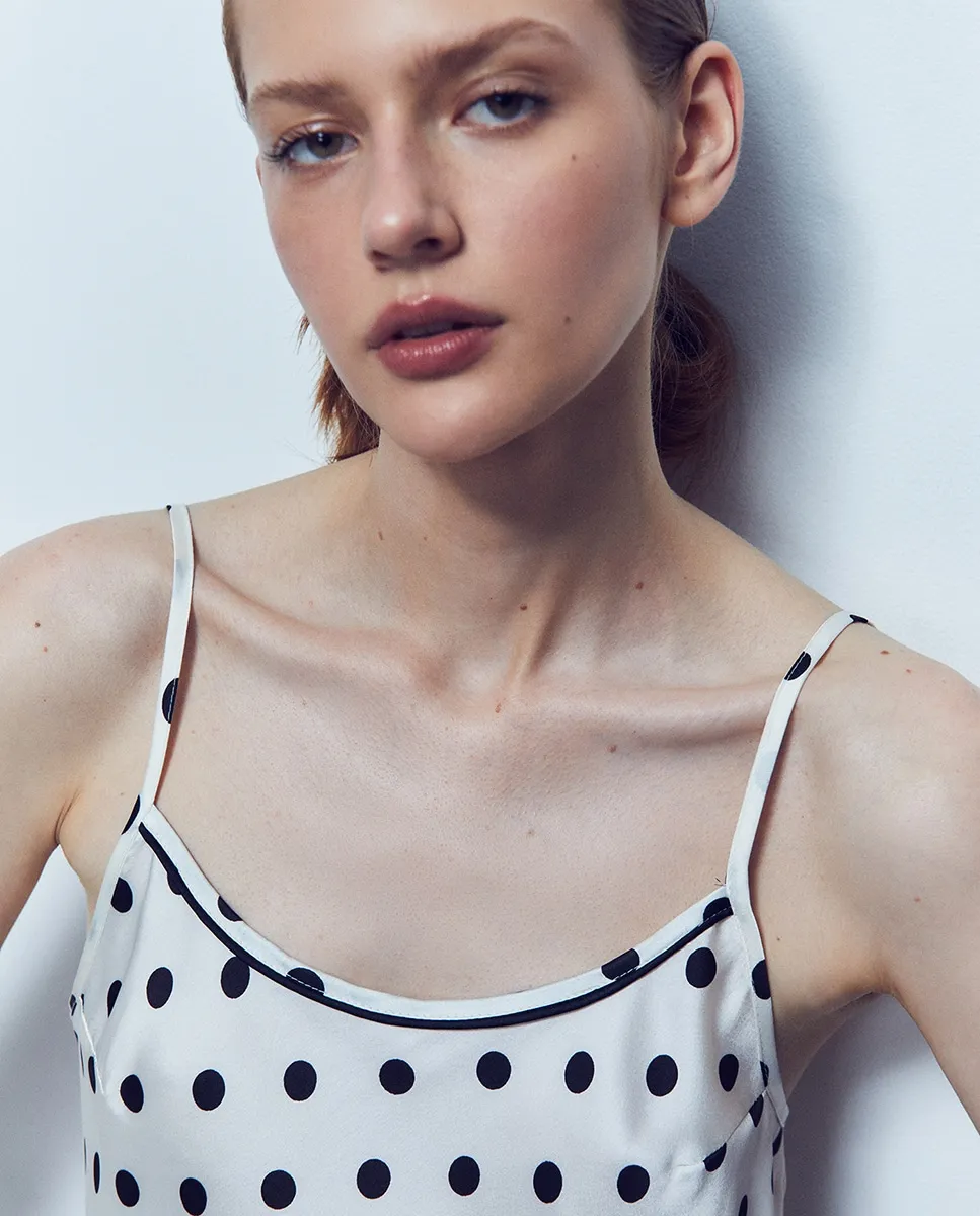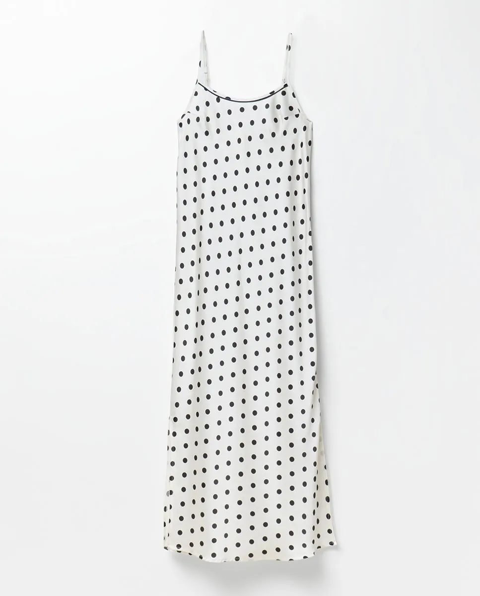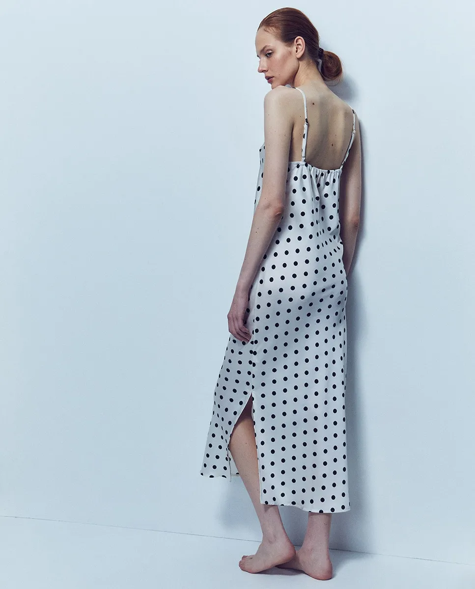 Сатиновая ночная рубашка в горох с регулируемыми бретелями
