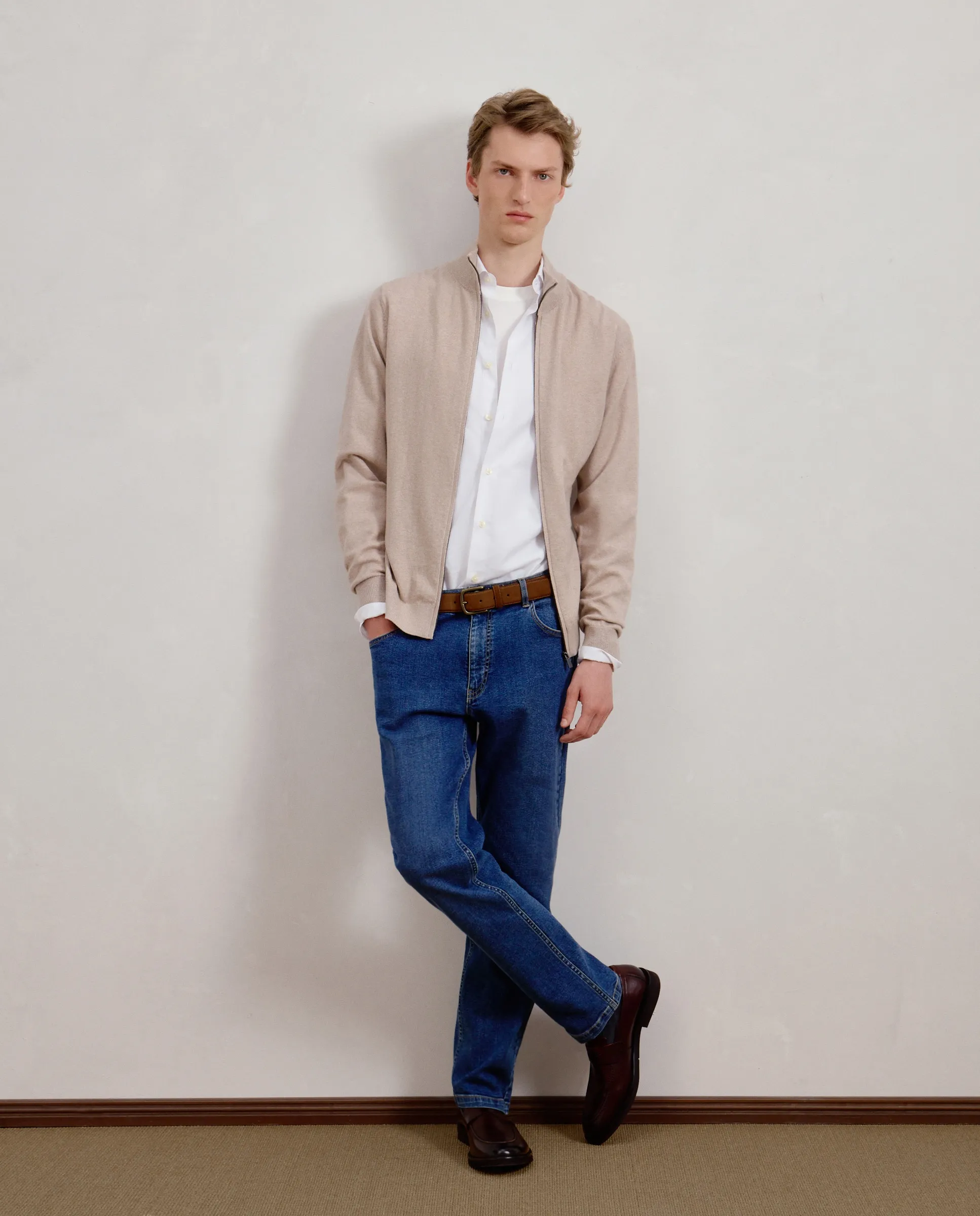 Свитер с воротником поло мужской Dustin, бежевый