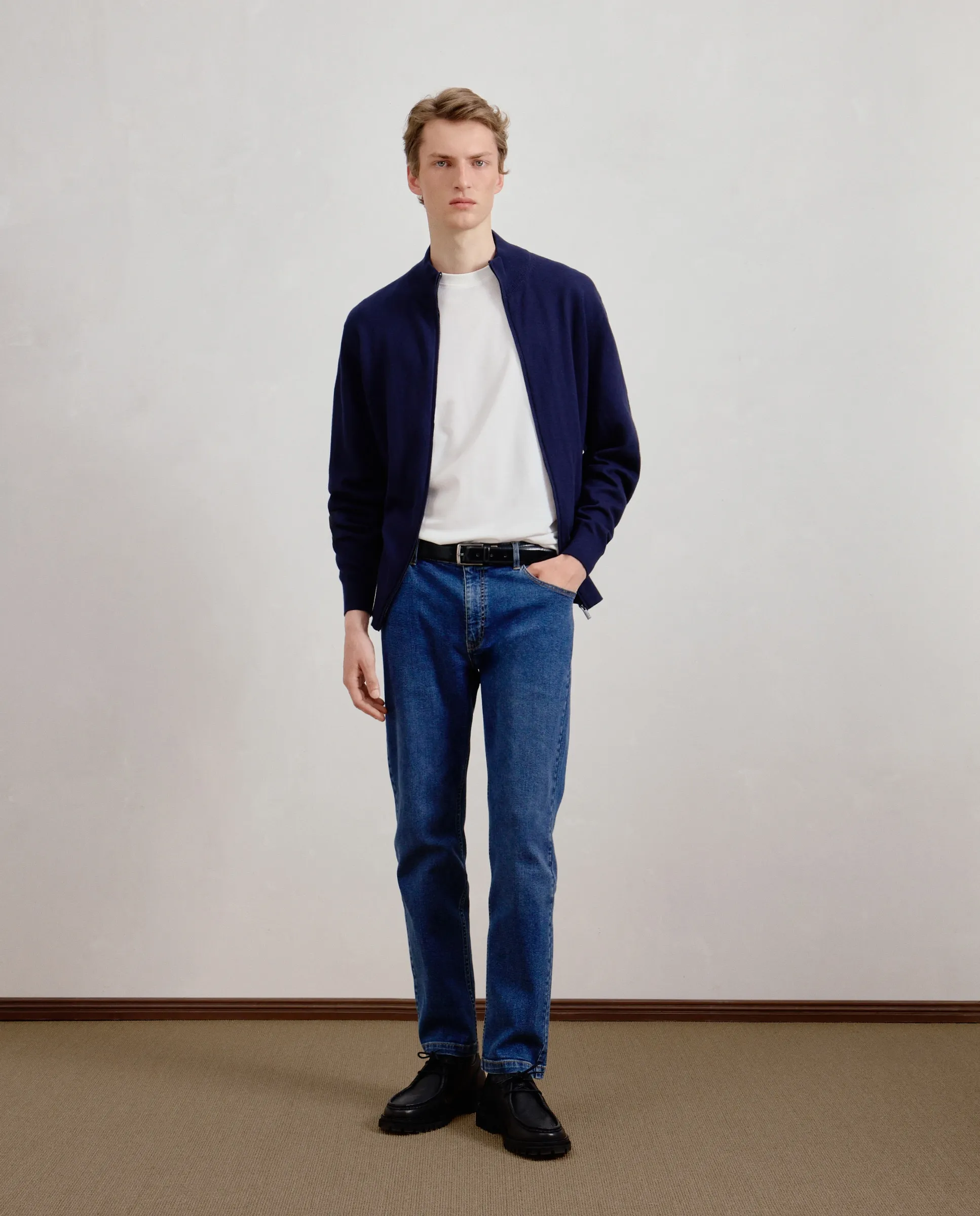 Свитер с воротником поло мужской Dustin, темно-синий