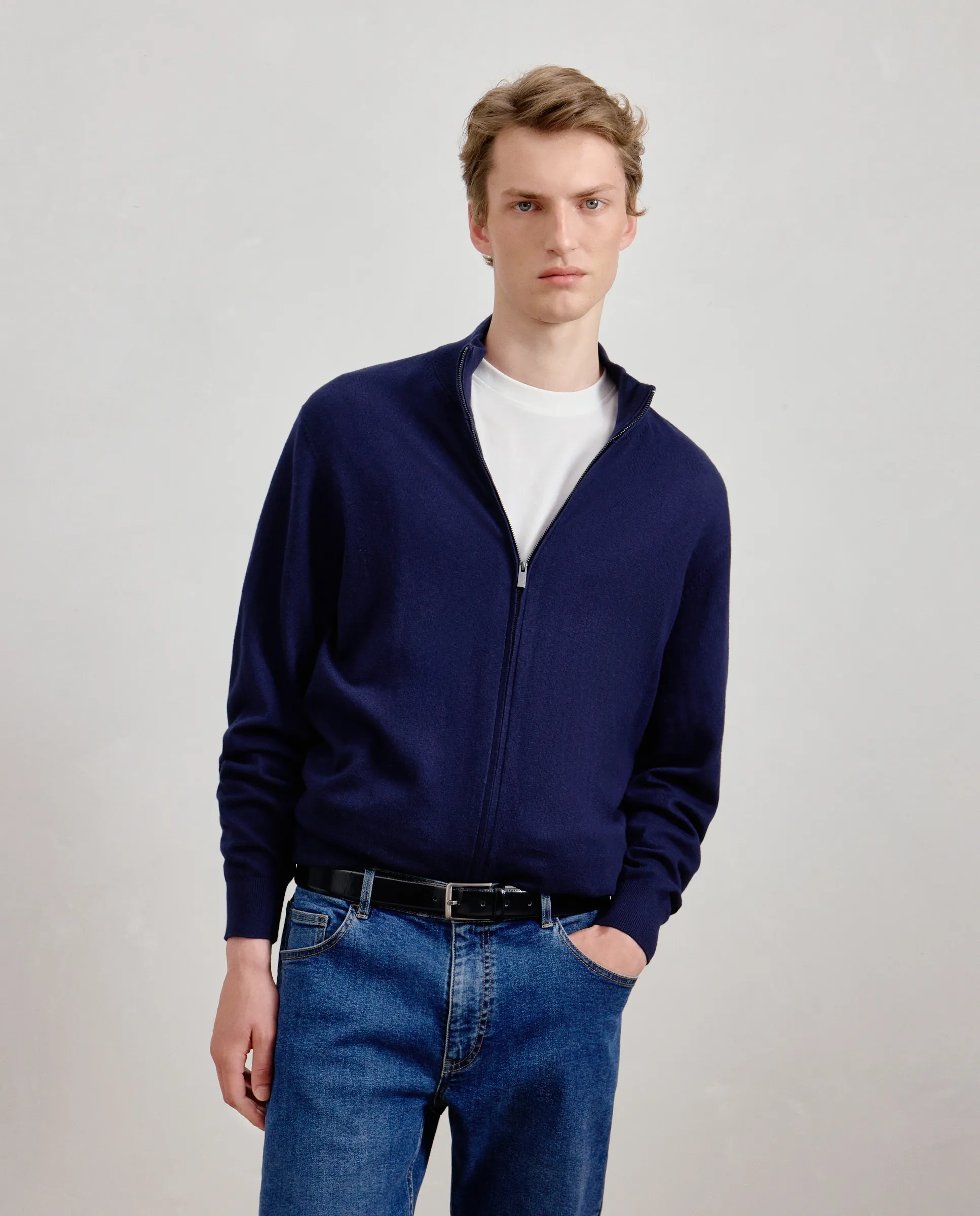 Пуловер с воротником-поло из хлопка и кашемира для мужчин.