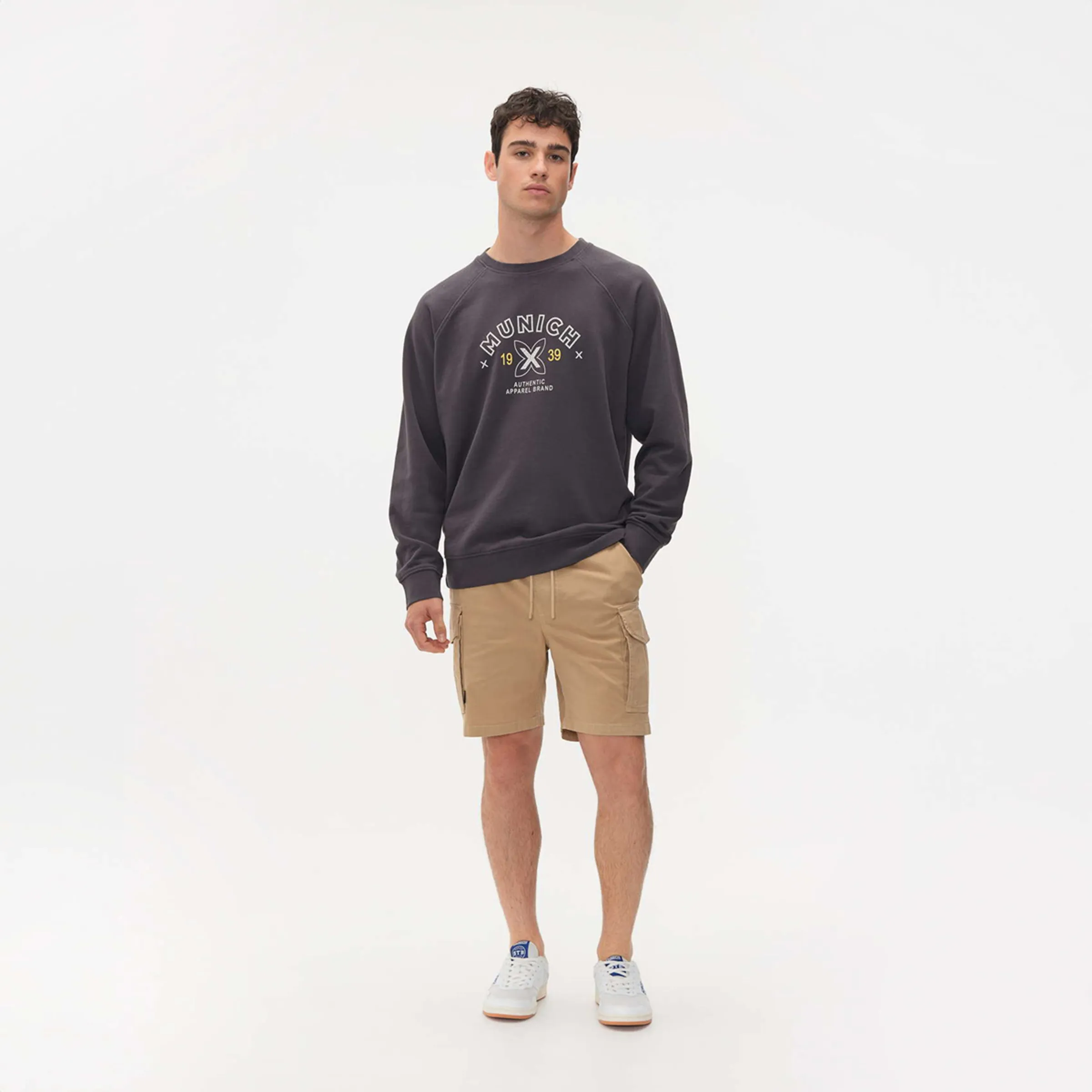 Свободный и очень городской свитер, прямого кроя с круглым вырезом, 100% хлопок с эффектом мягкой стирки для классического стиля.